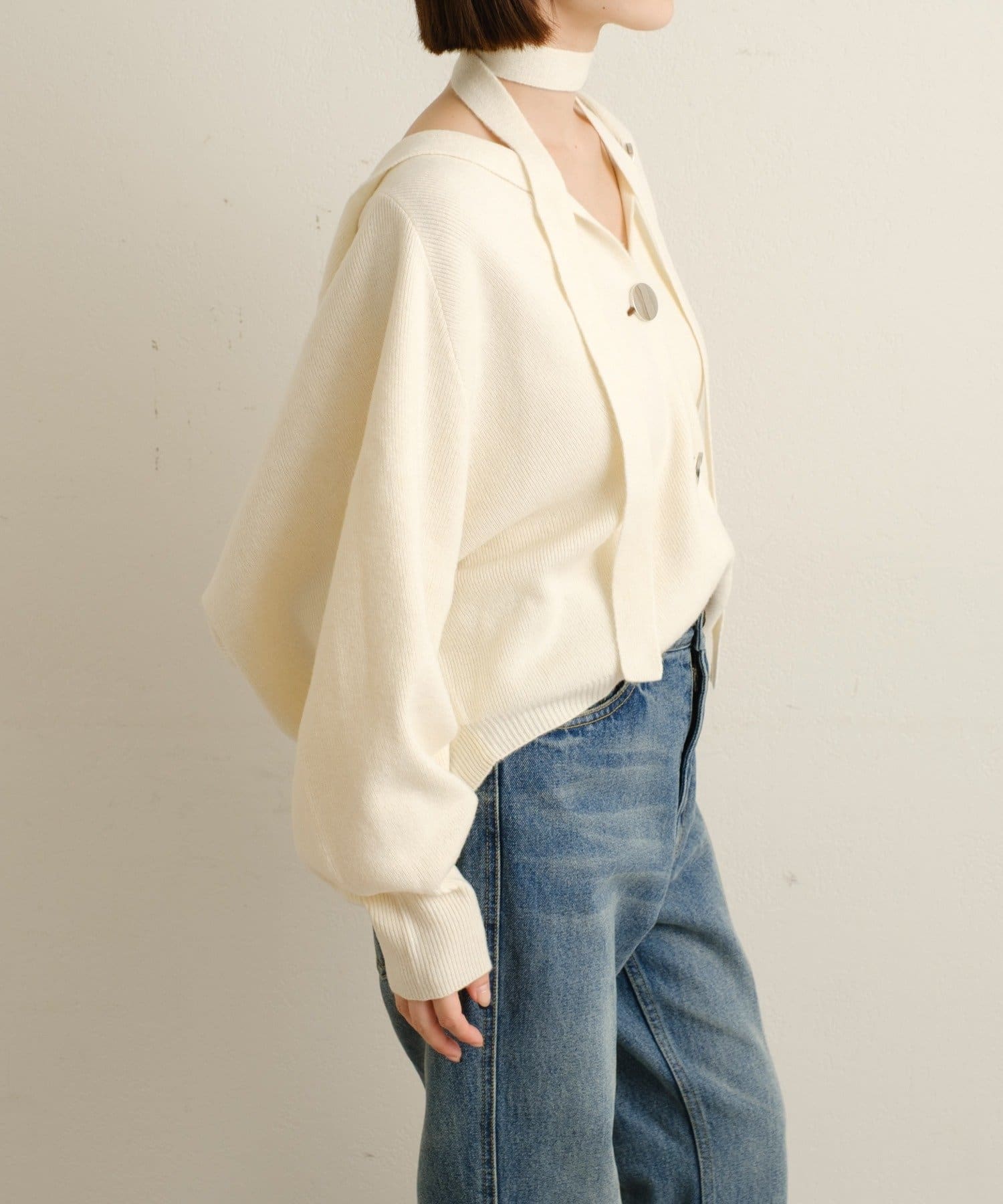 ・付属のベルトは、ベルト、チョーカーなど様々な着こなしができるのでスタイリングの幅が広がる一枚