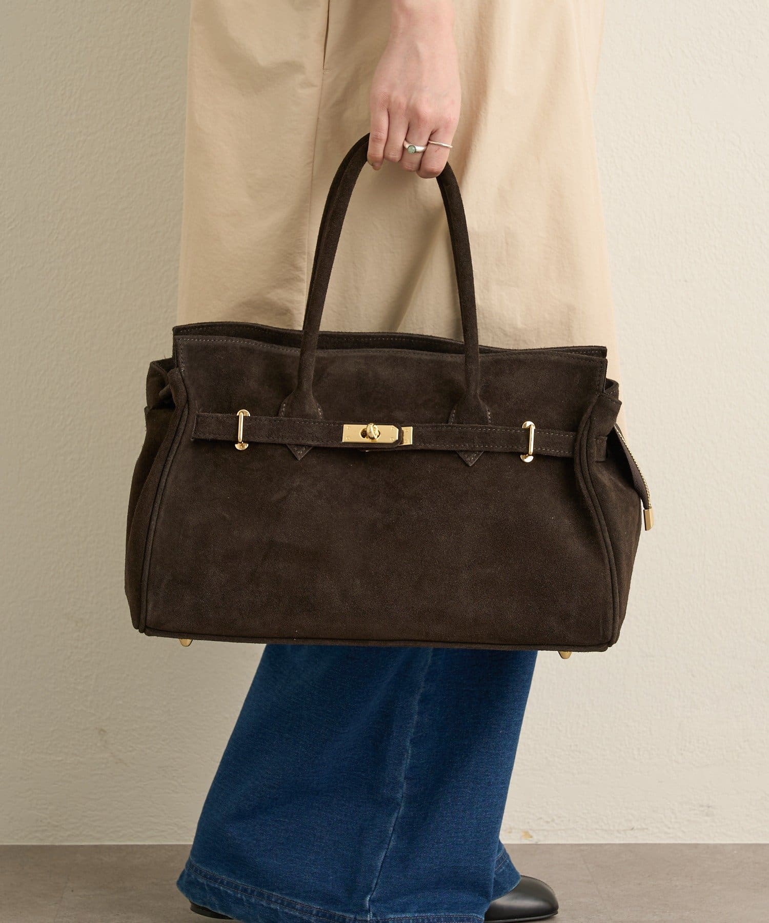 デイリーに活躍する高級感漂うスエードバッグ