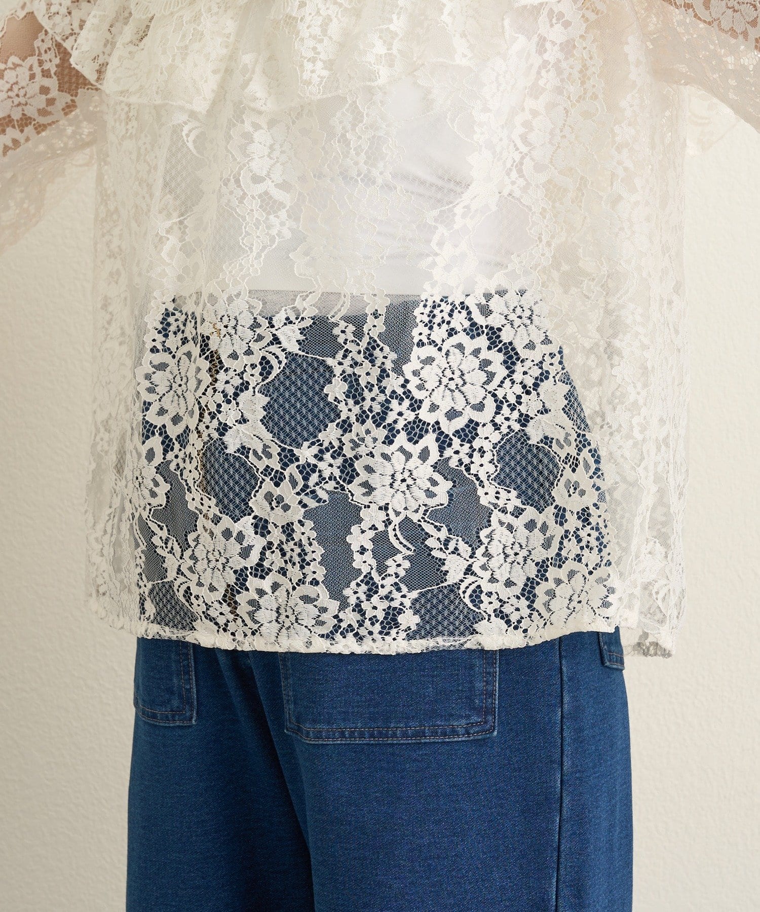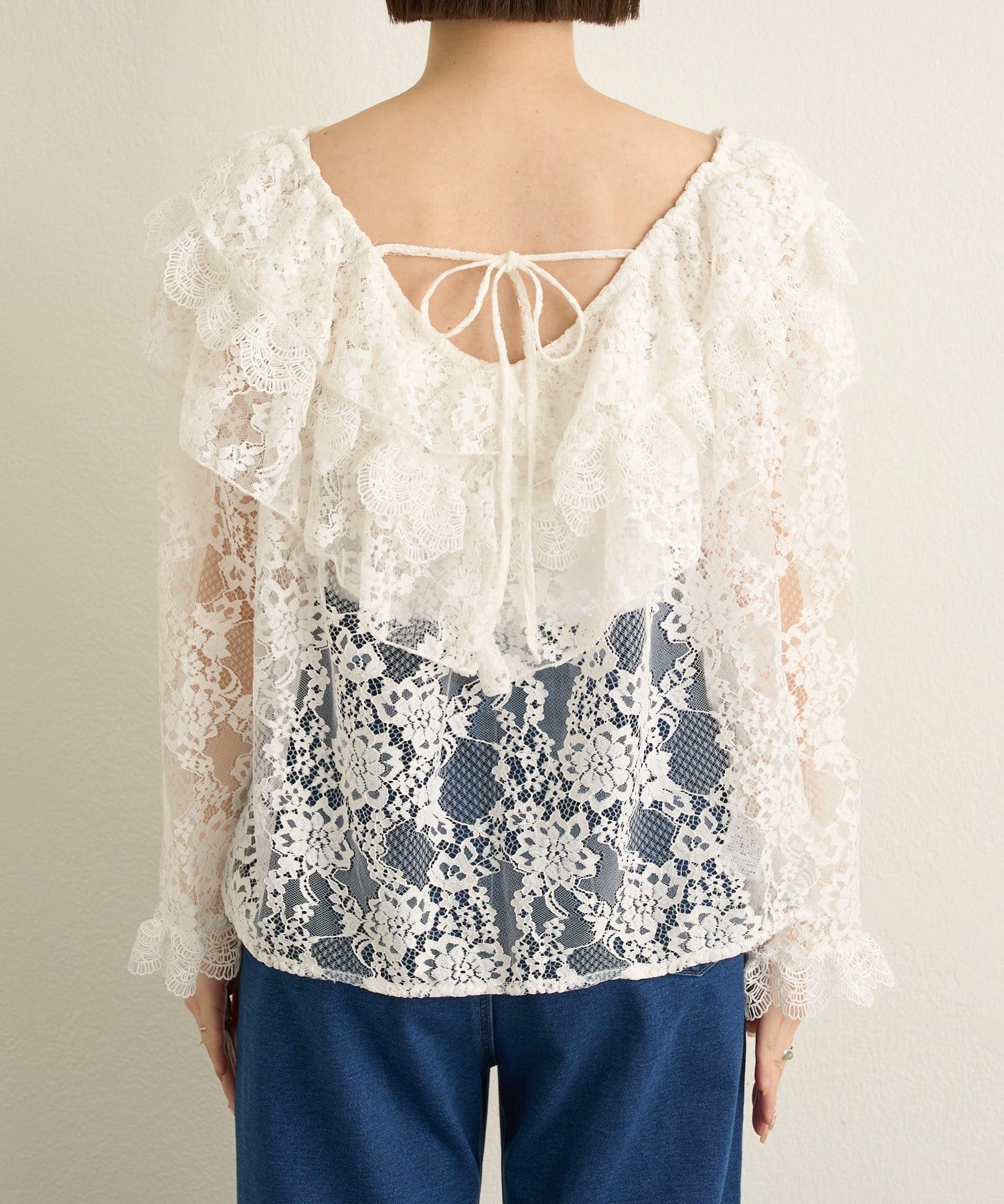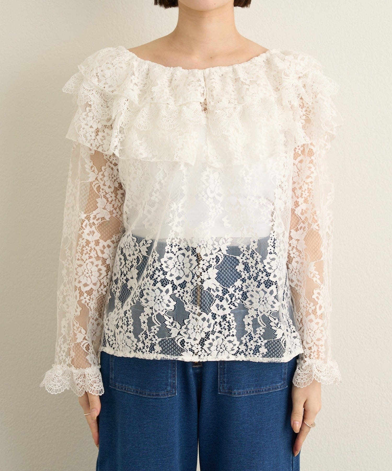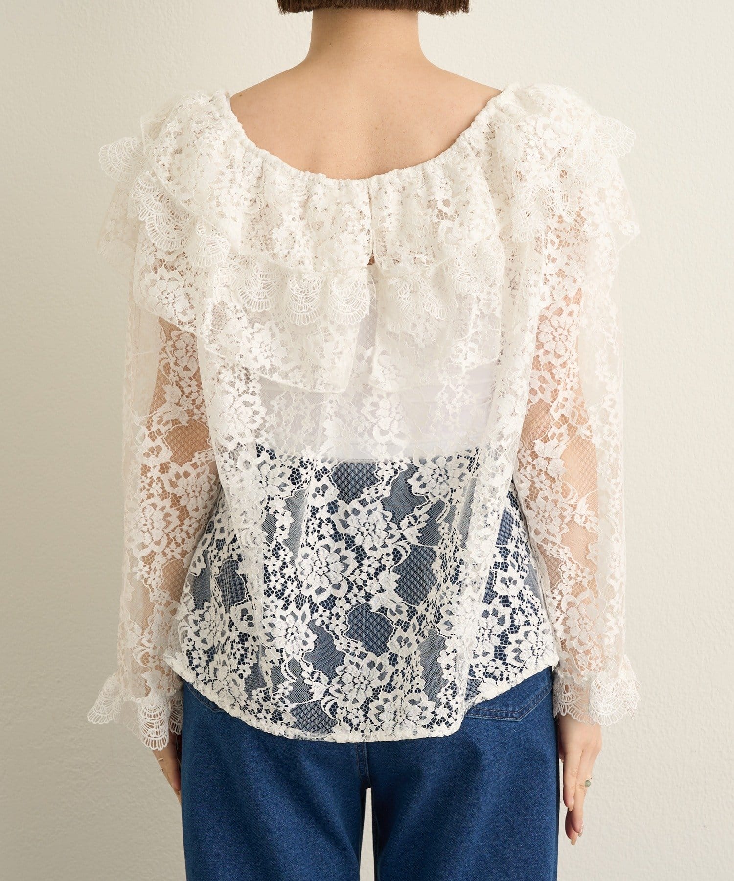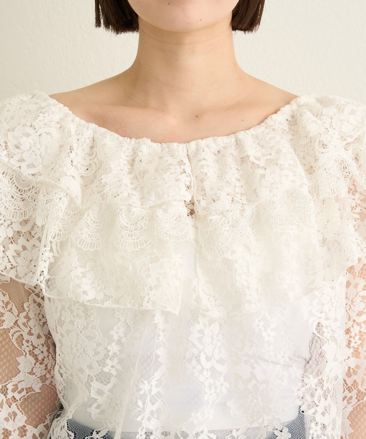 【2WAY仕様】レースラッフルブラウス