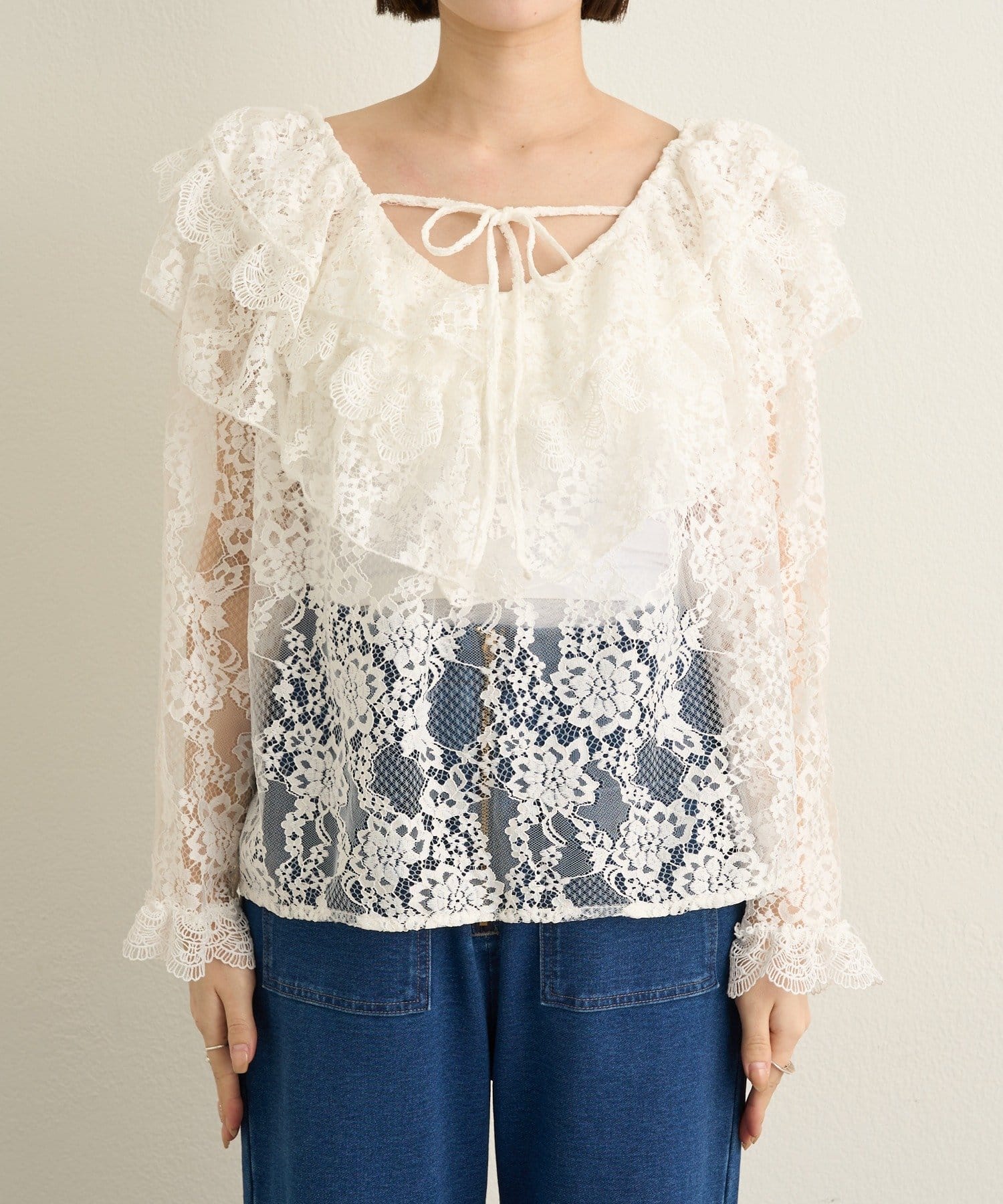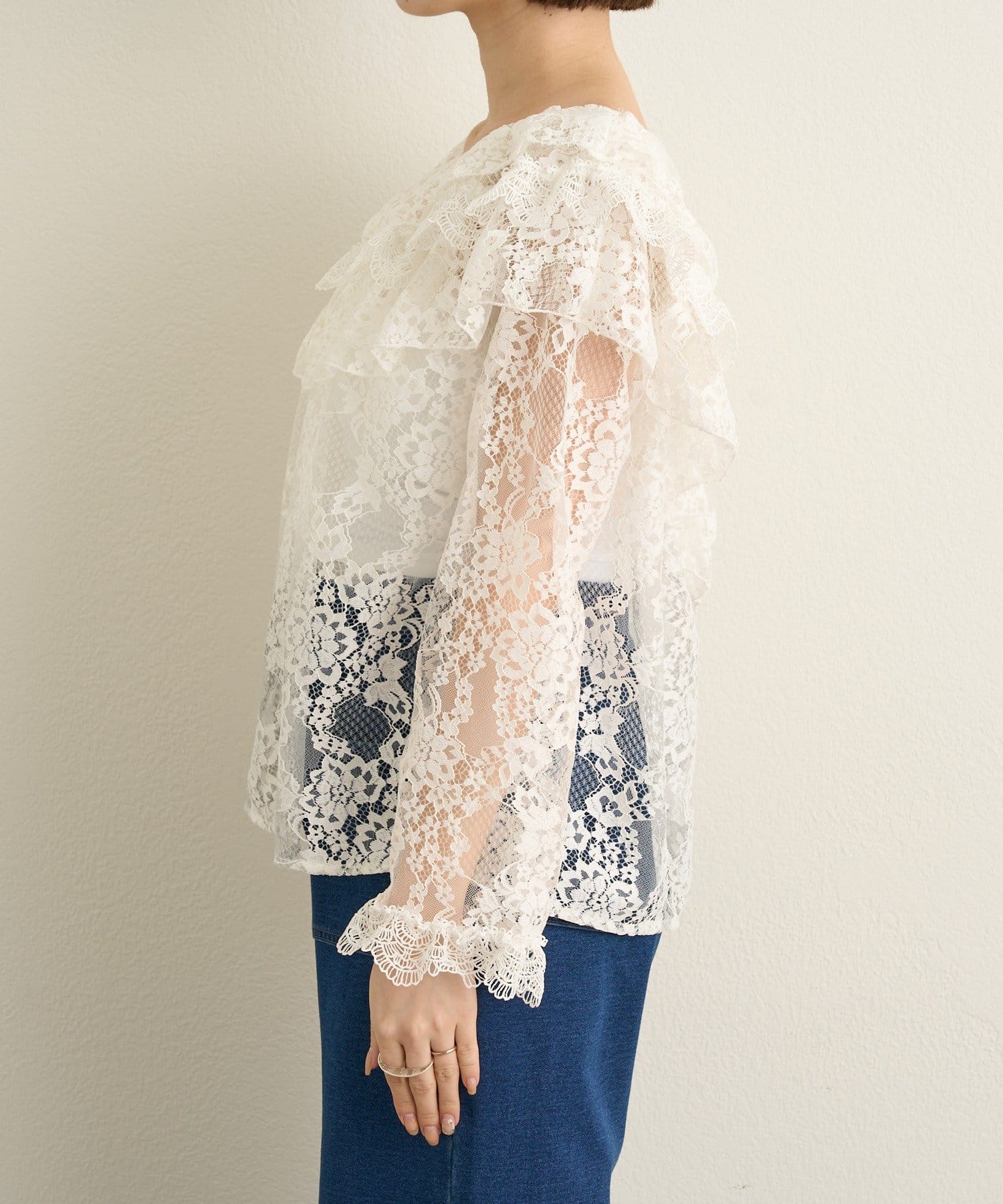 フリル×レースが大人可愛いラッフルブラウス
