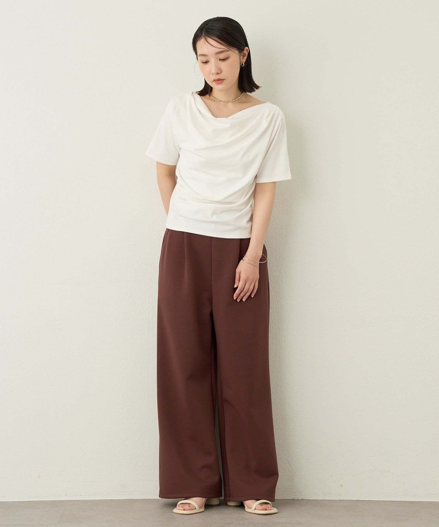 ・イージーパンツながら、シワや型崩れがしにくくきれいめのスタイリングにも合わせやすい万能パンツです。