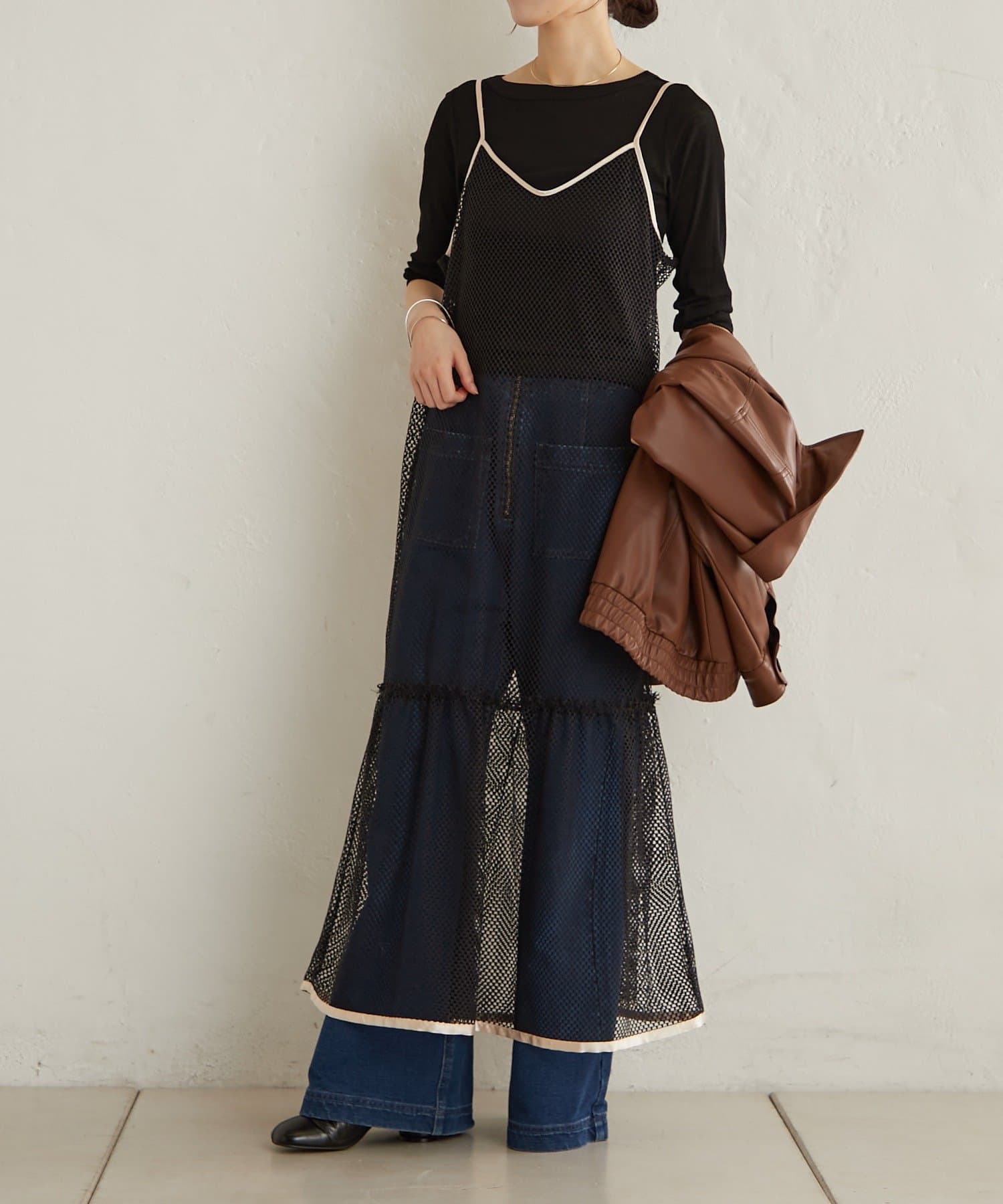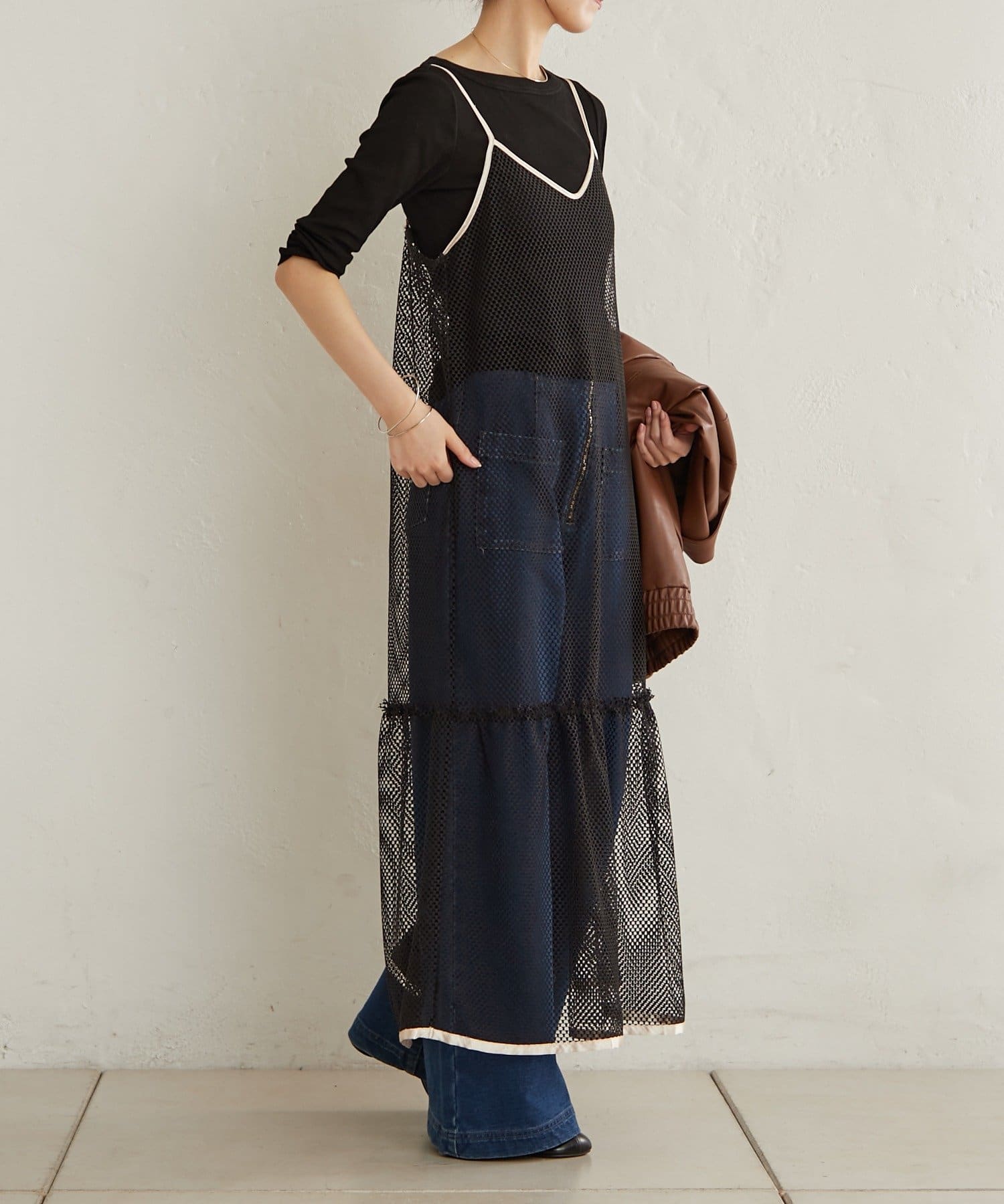 ・軽やかなメッシュ素材が春夏らしいキャミワンピ