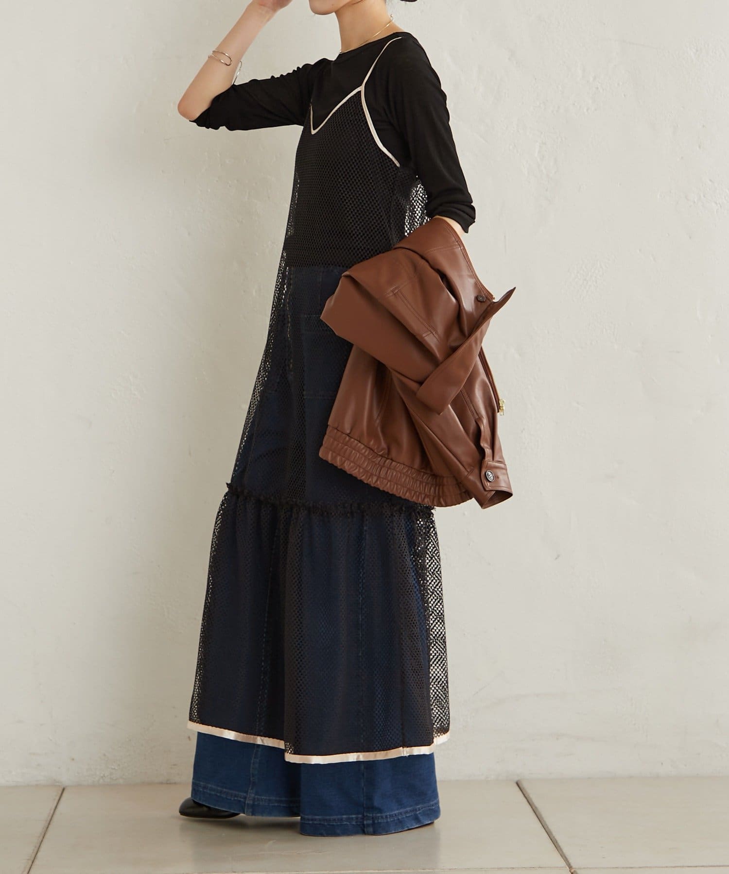 ・いつものスタイリングにプラスするだけで、トレンド感あるレイヤードスタイルが完成します!