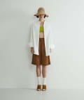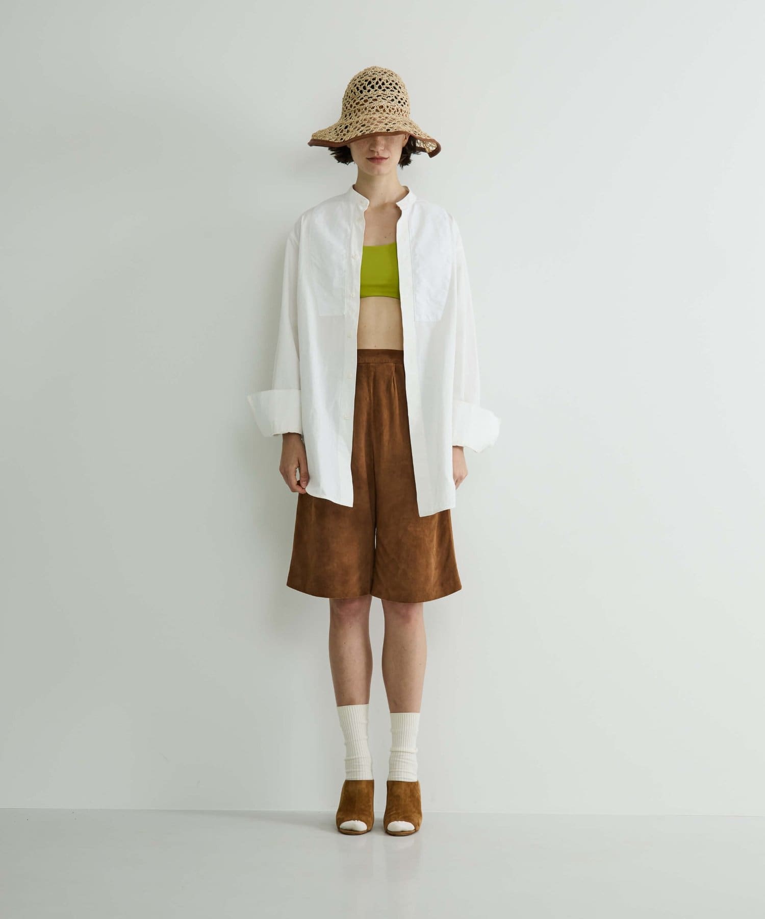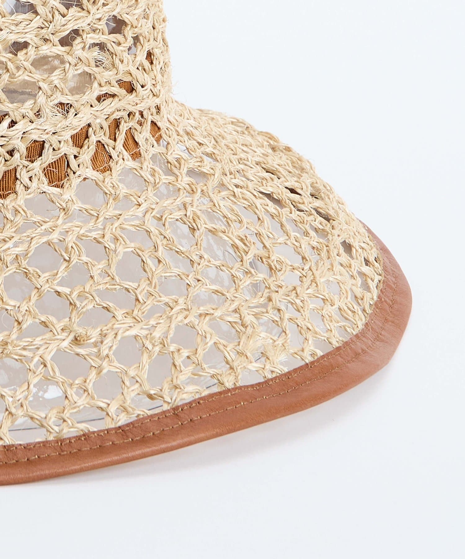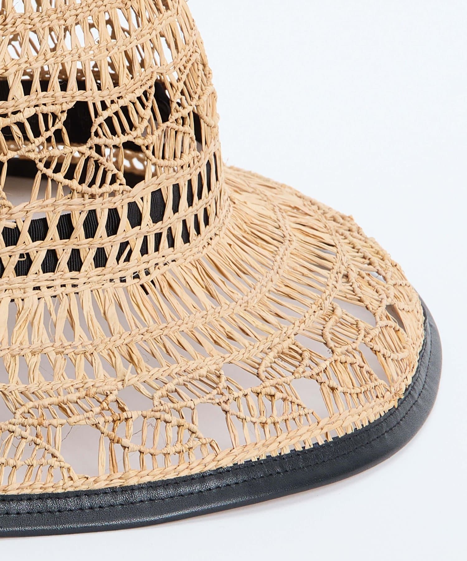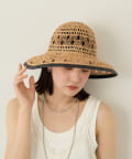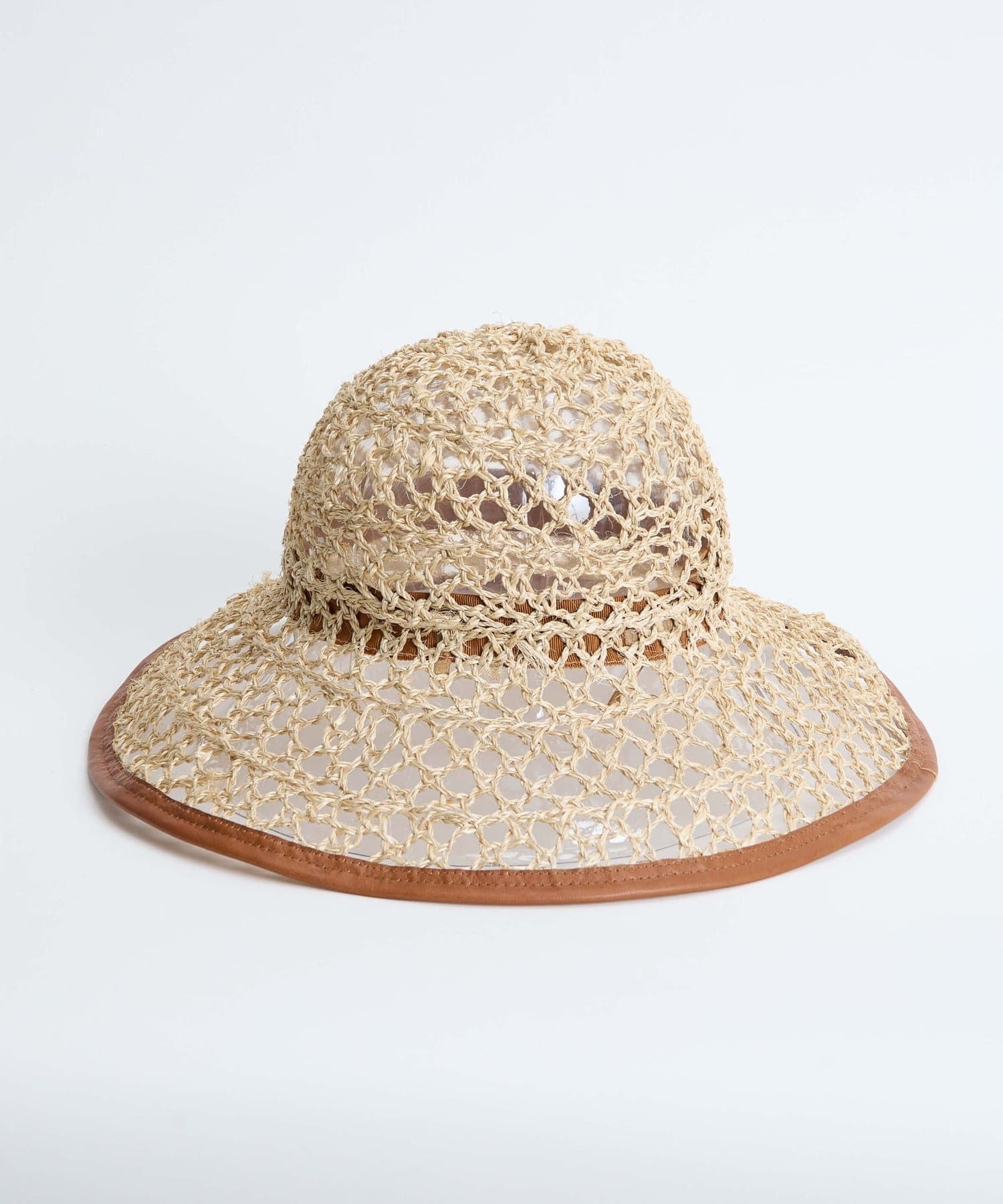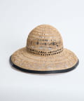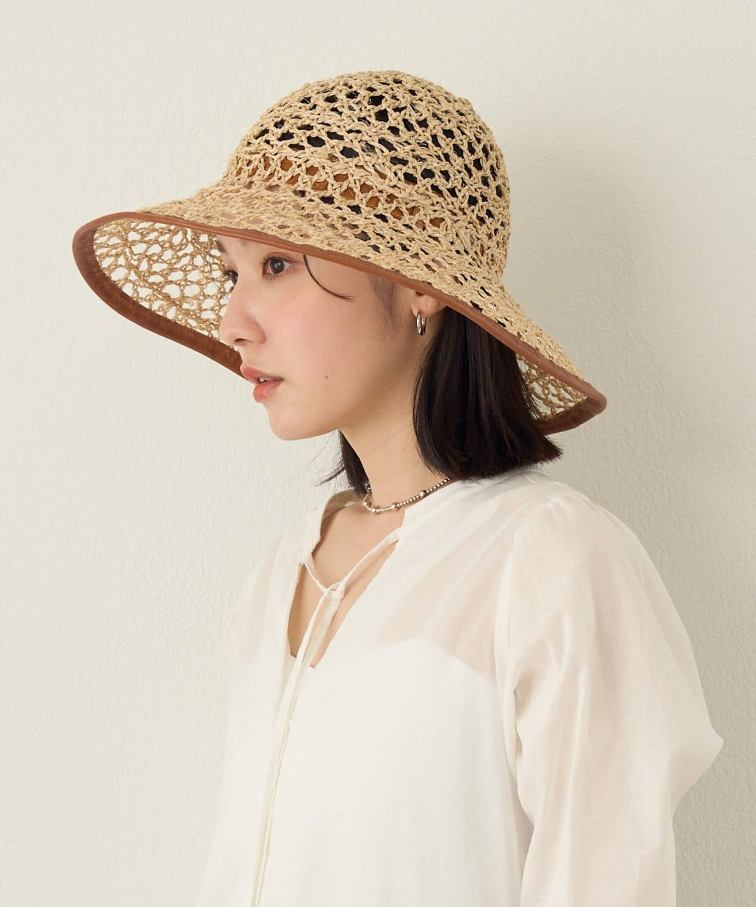 繊細な編み目が美しい、デッドストックの手編み帽体を使用した、アクセサリーのような印象のダウンハット。ブリム端には牛革のパイピングを施し、さりげないアクセントに。さらに、ブリムにはワイヤーを仕込むことで、フォルムに表情をつけることができます。編み目を通り抜ける風や、木漏れ日のように落ちる影が、薄着になる季節に涼しげな表情を演出してくれます。折りたたみ可能で、持ち運びにも便利。