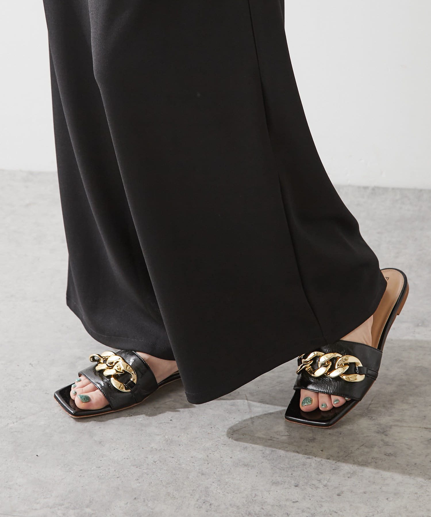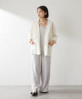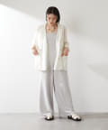 ・アクセサリーやパンプスで女性らしさをプラスするのがスタイリングのポイントです。