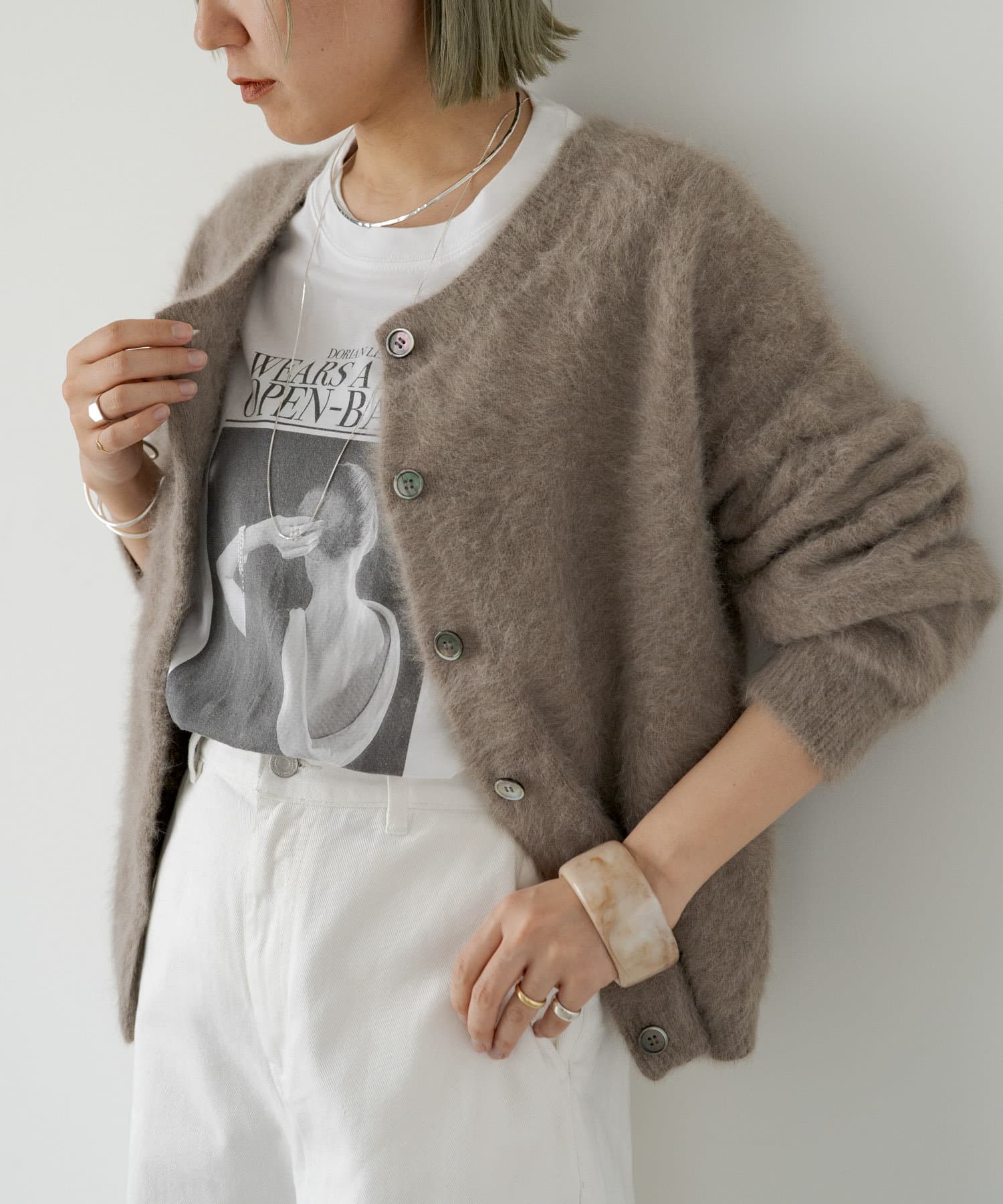 ・シンプルな白黒のデザインでどんなスタイリングにもハマる一枚