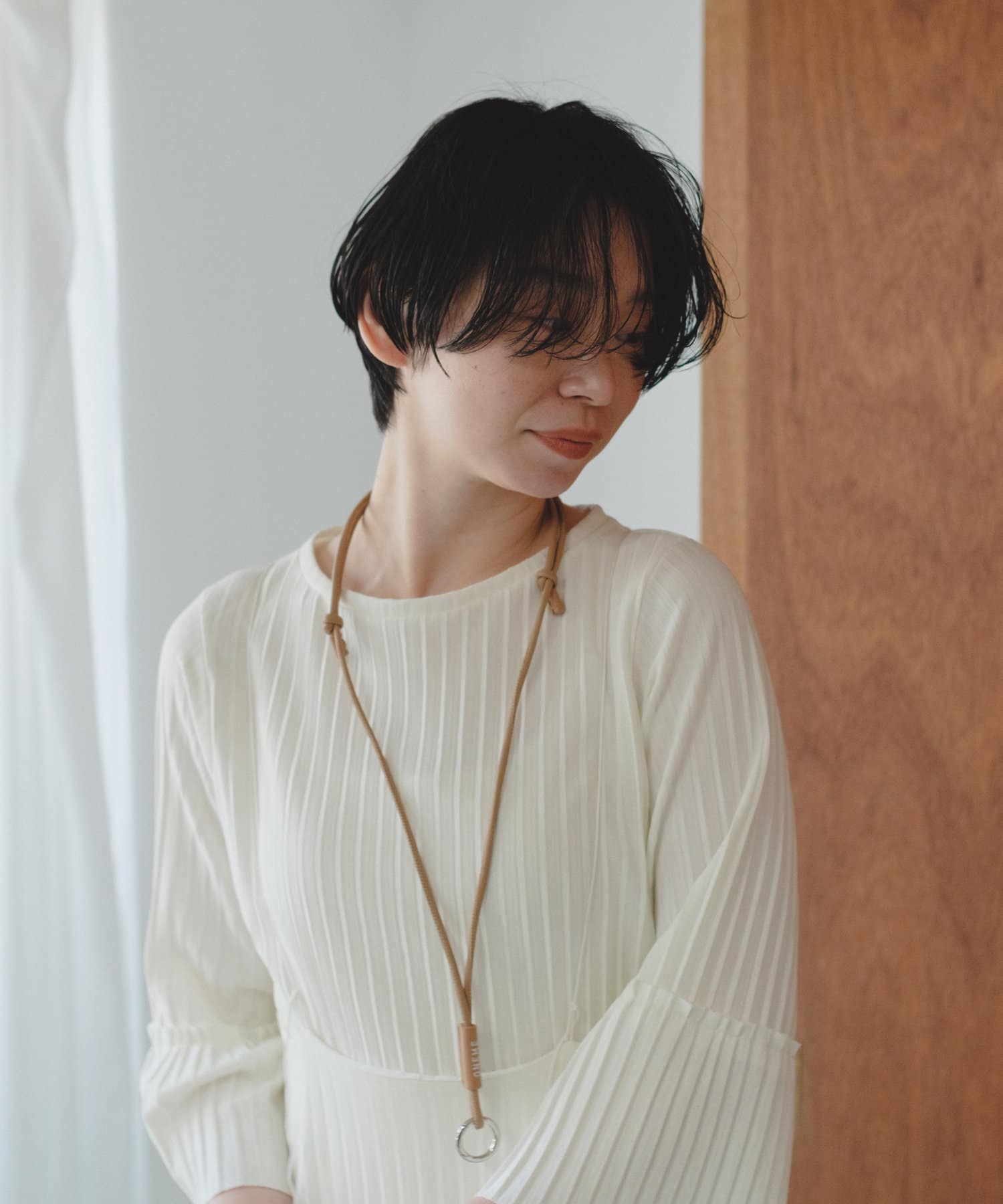 ●スタイリングのアクセントになるホルダーネックレス。