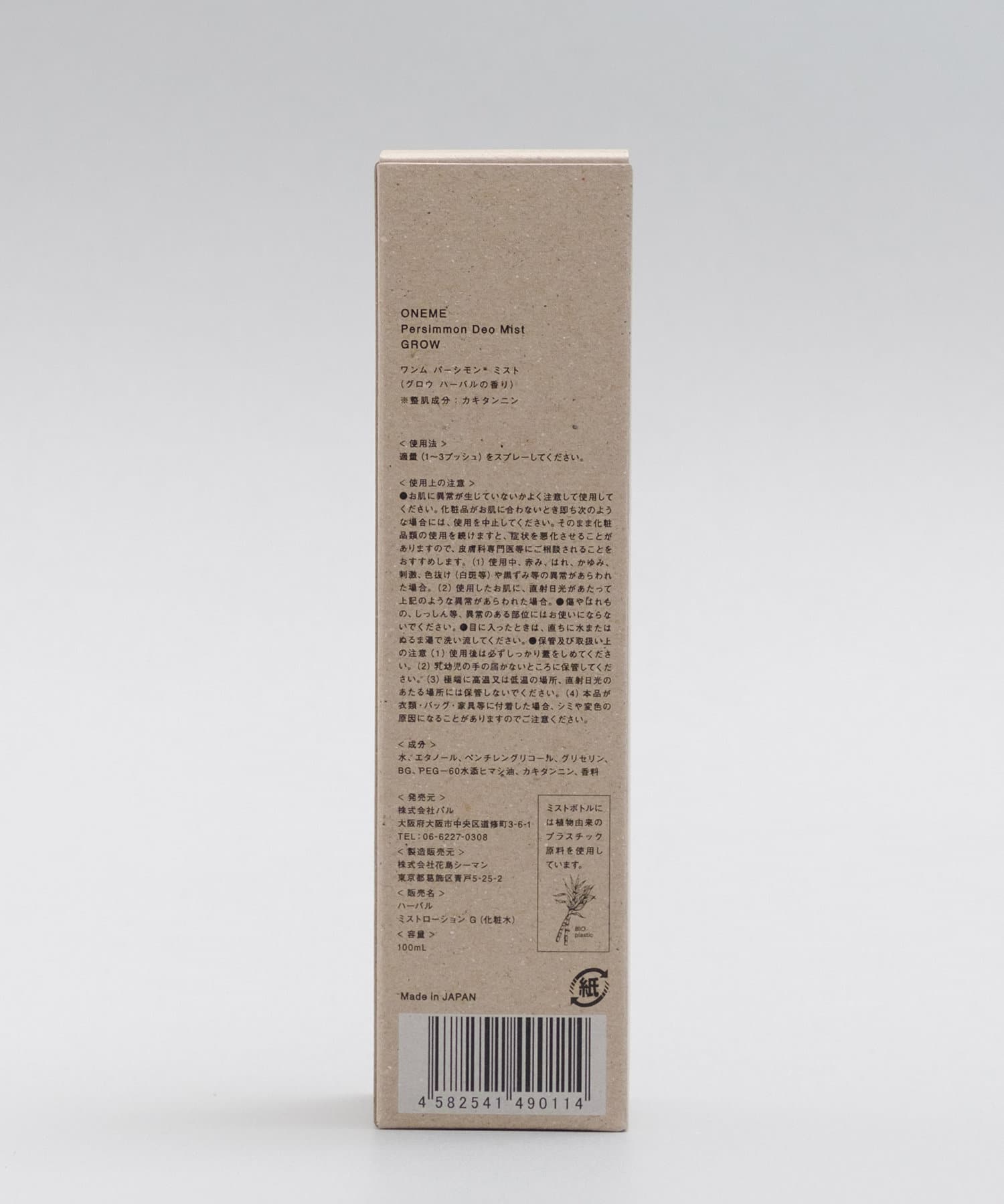 柿渋から抽出される、カキタンニンを使った天然由来成分のリフレッシュミスト。