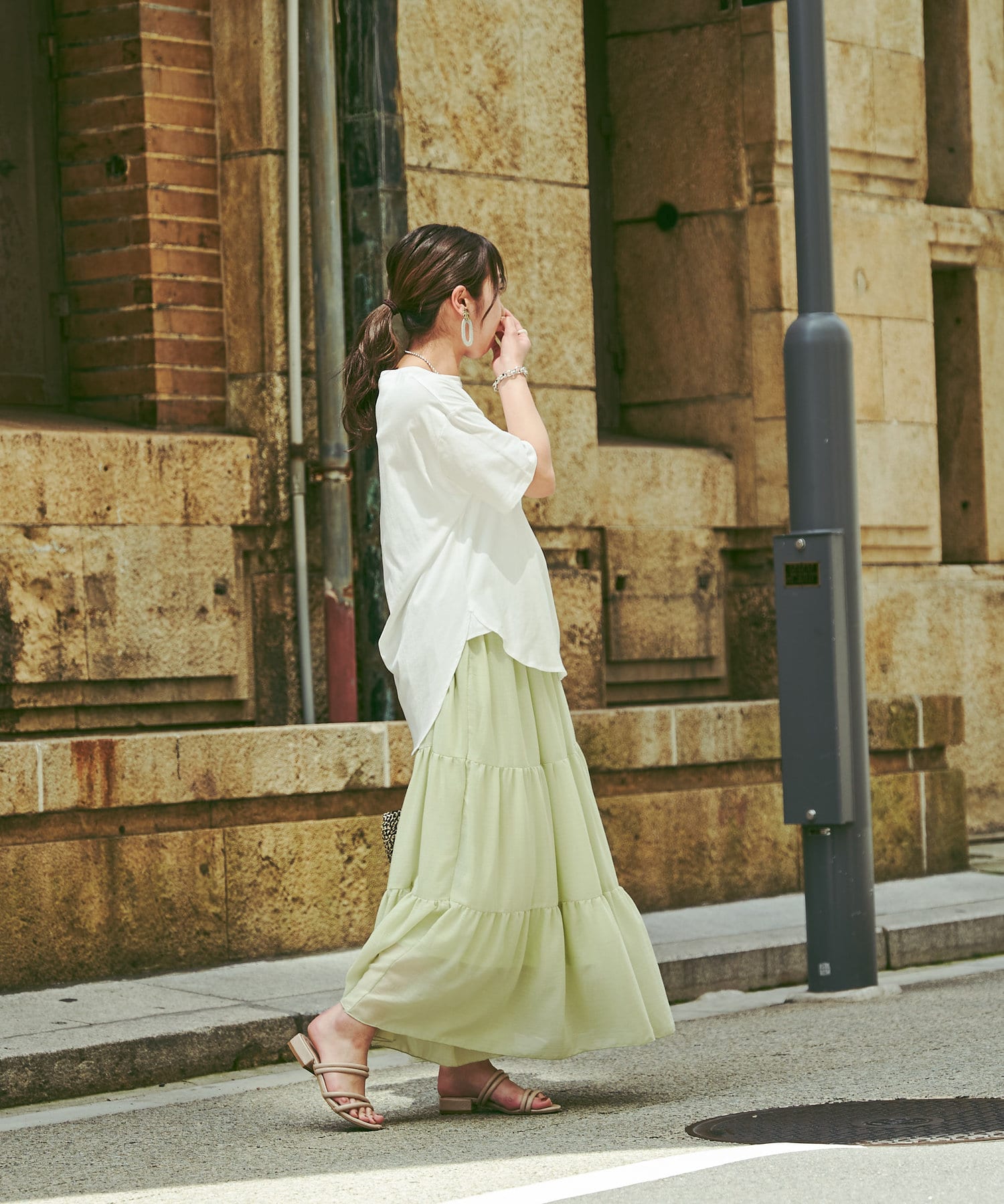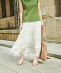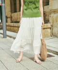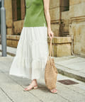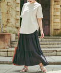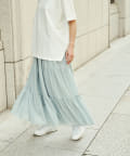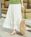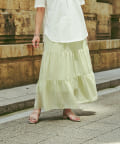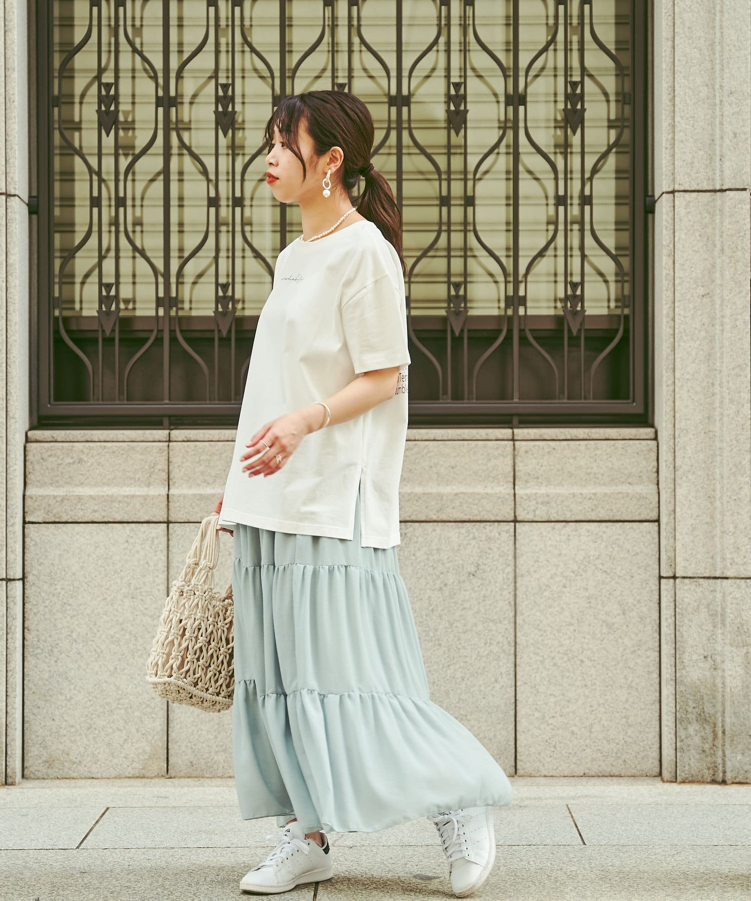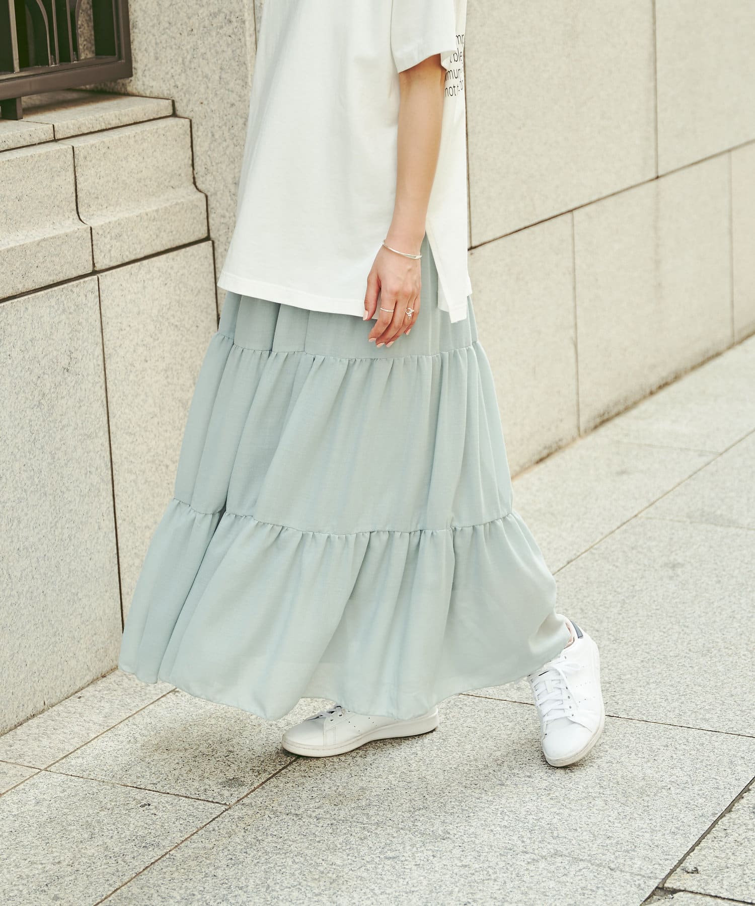 今年トレンドのティアードスカート。ふんわりしてデザインが女性らしい印象に◎