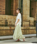 やわらかいAラインは動きがでるとよりスカートの軽さを演出しつつ