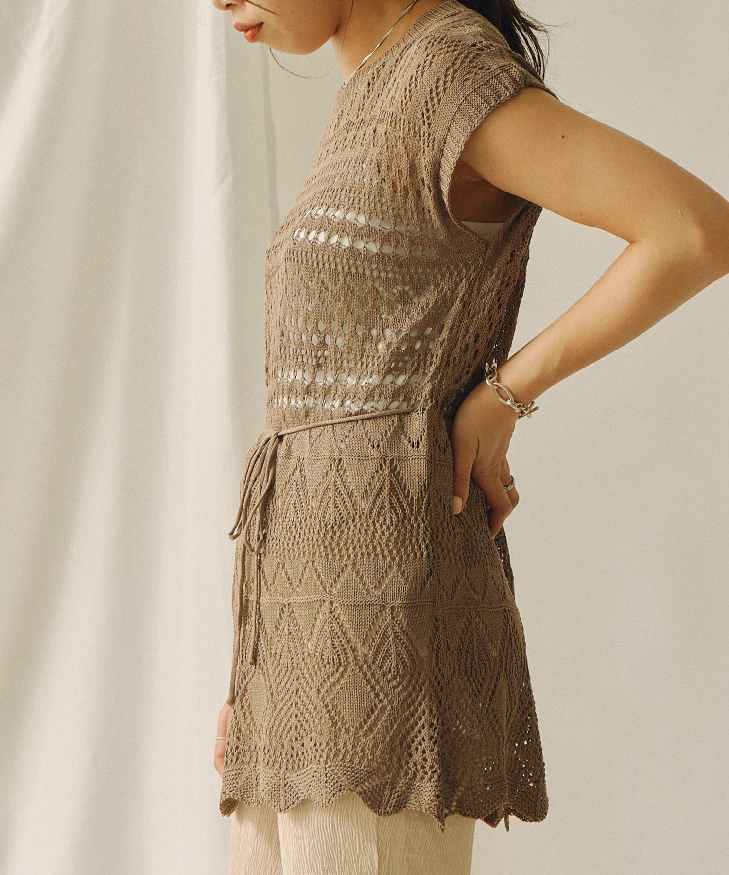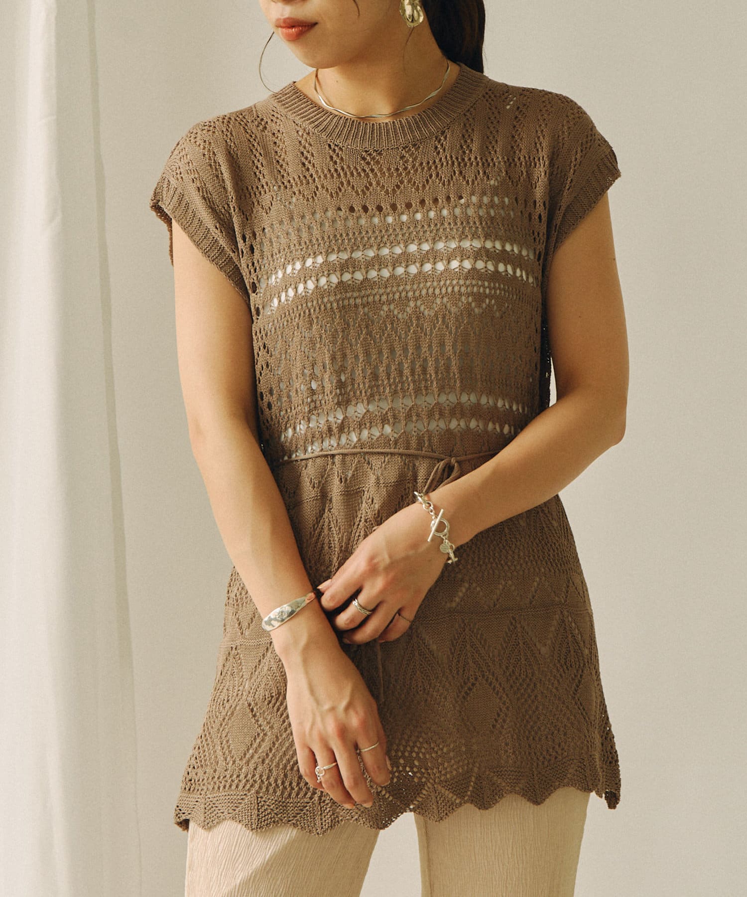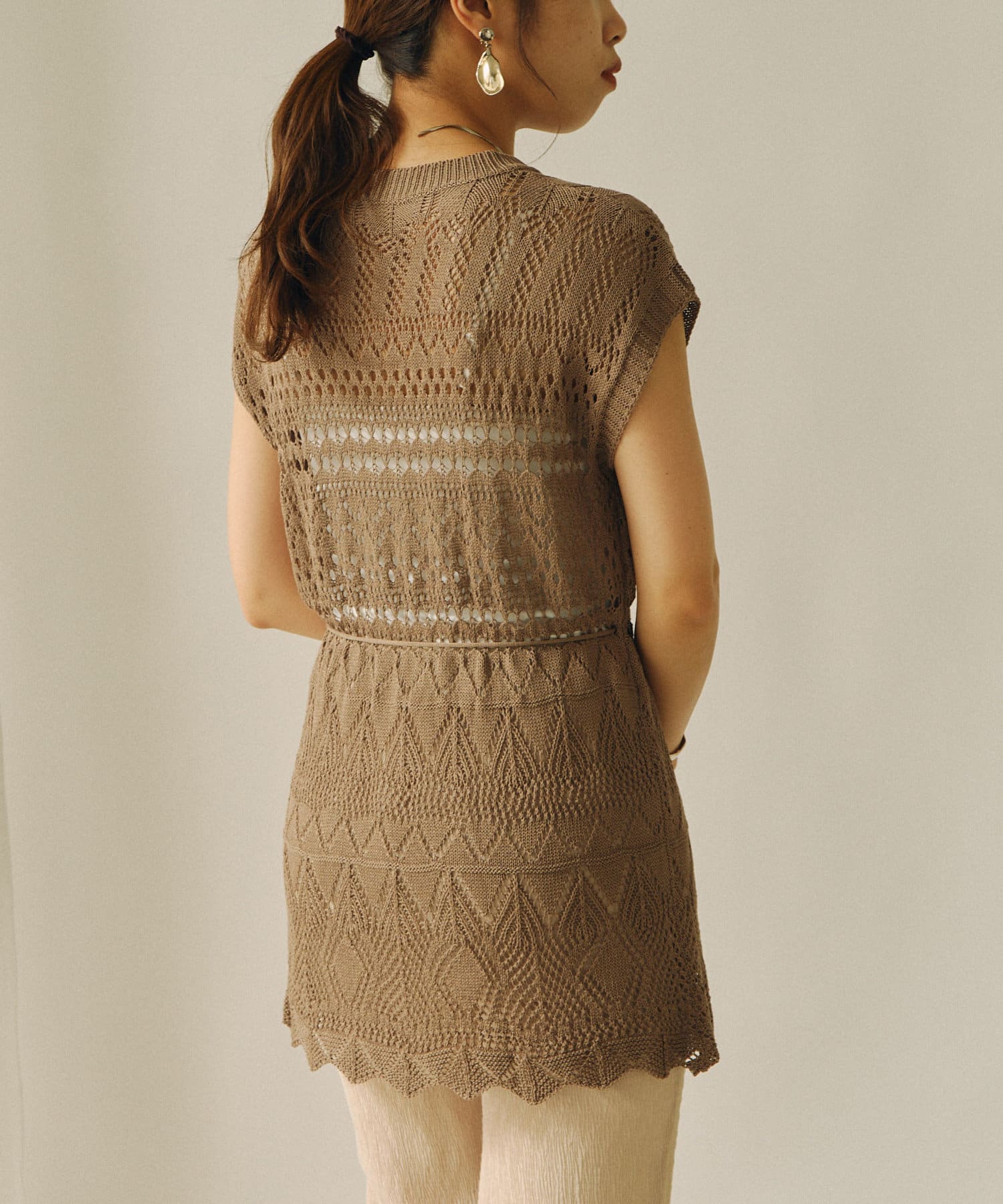 ・クロシェ編みは今年のトレンドをおさえた1着です。