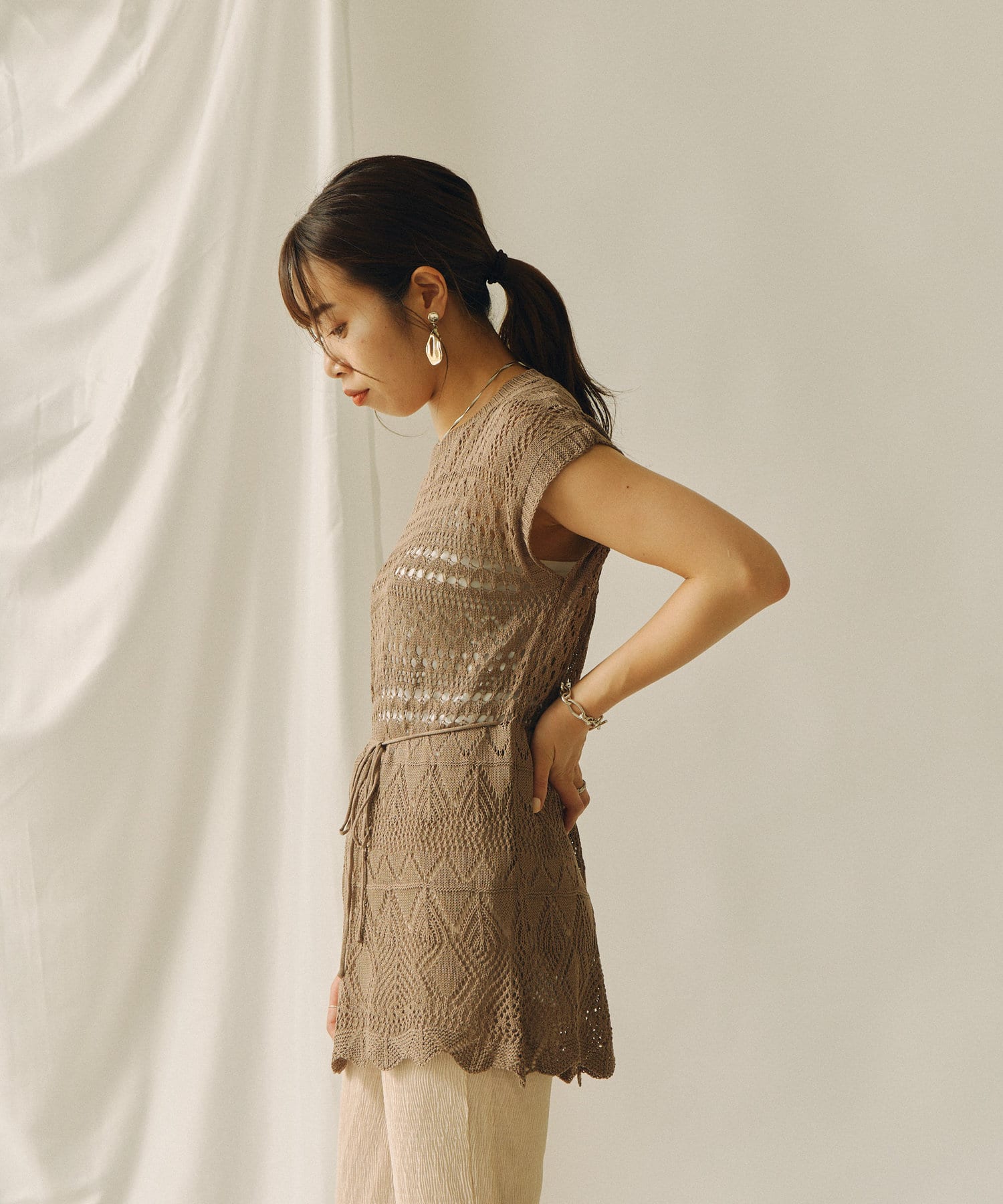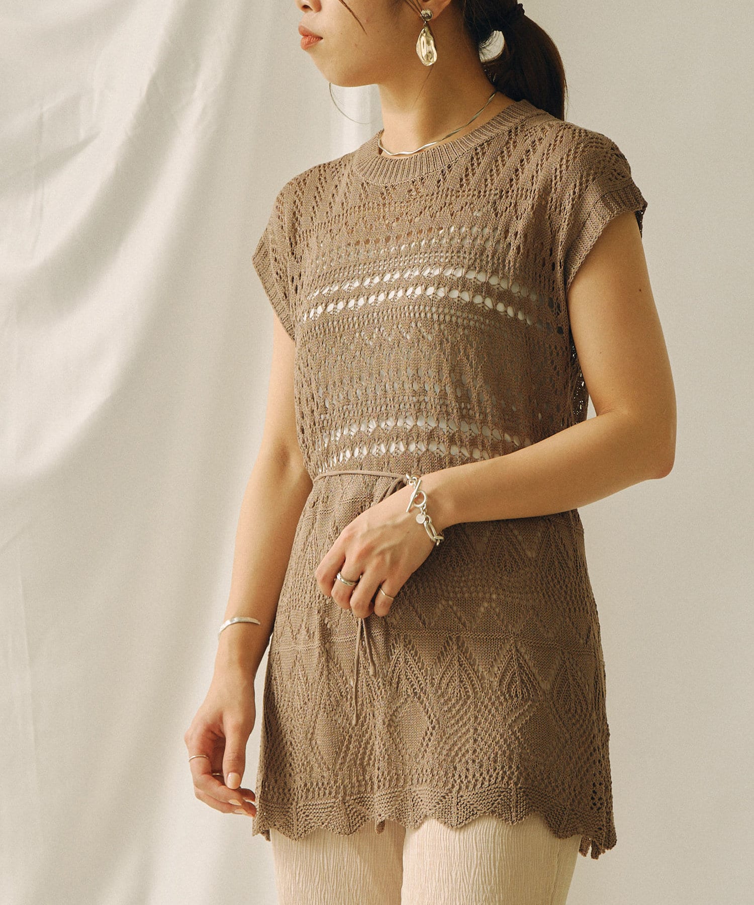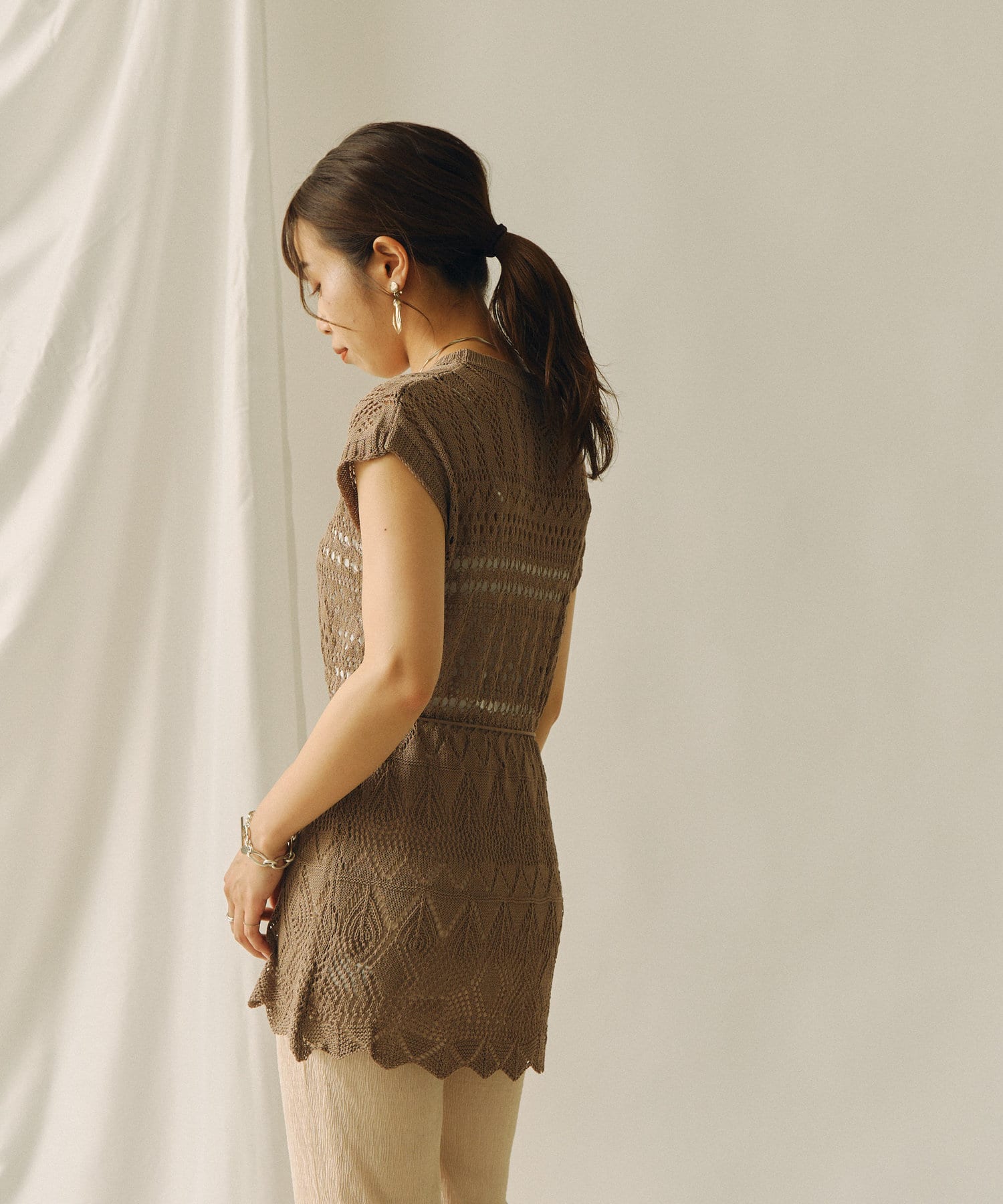 ・クロシェ編みは今年のトレンドをおさえた1着です。