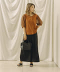 スカートでもパンツでも合わせやすいデザイン。パンツはワイドやテーパードがおすすめ。