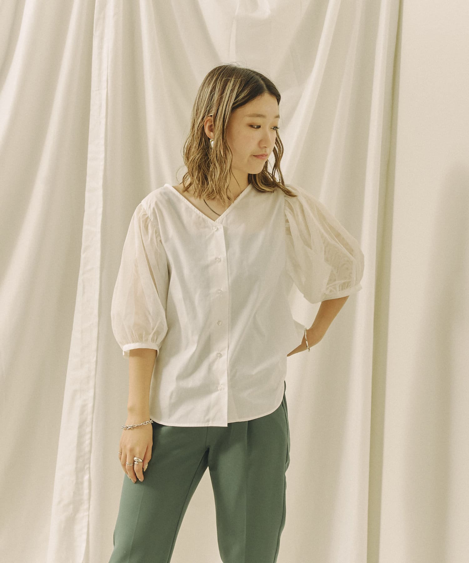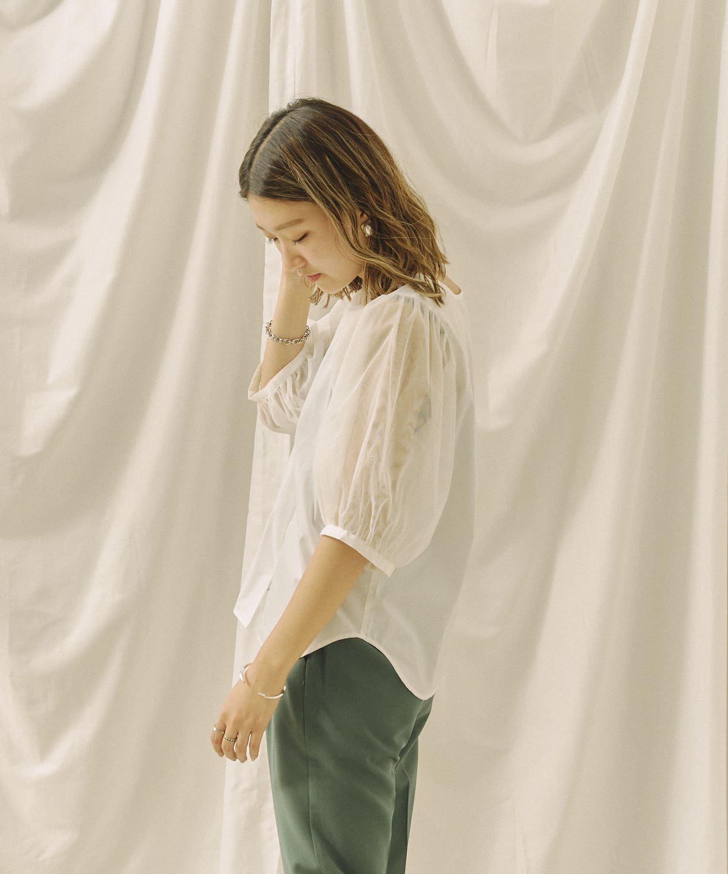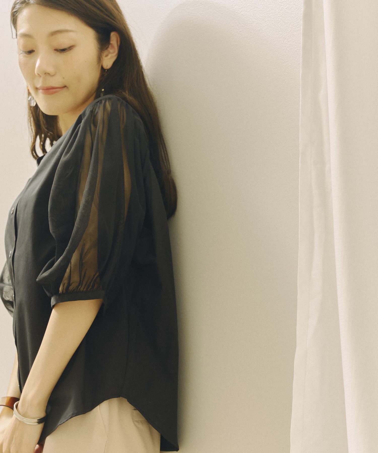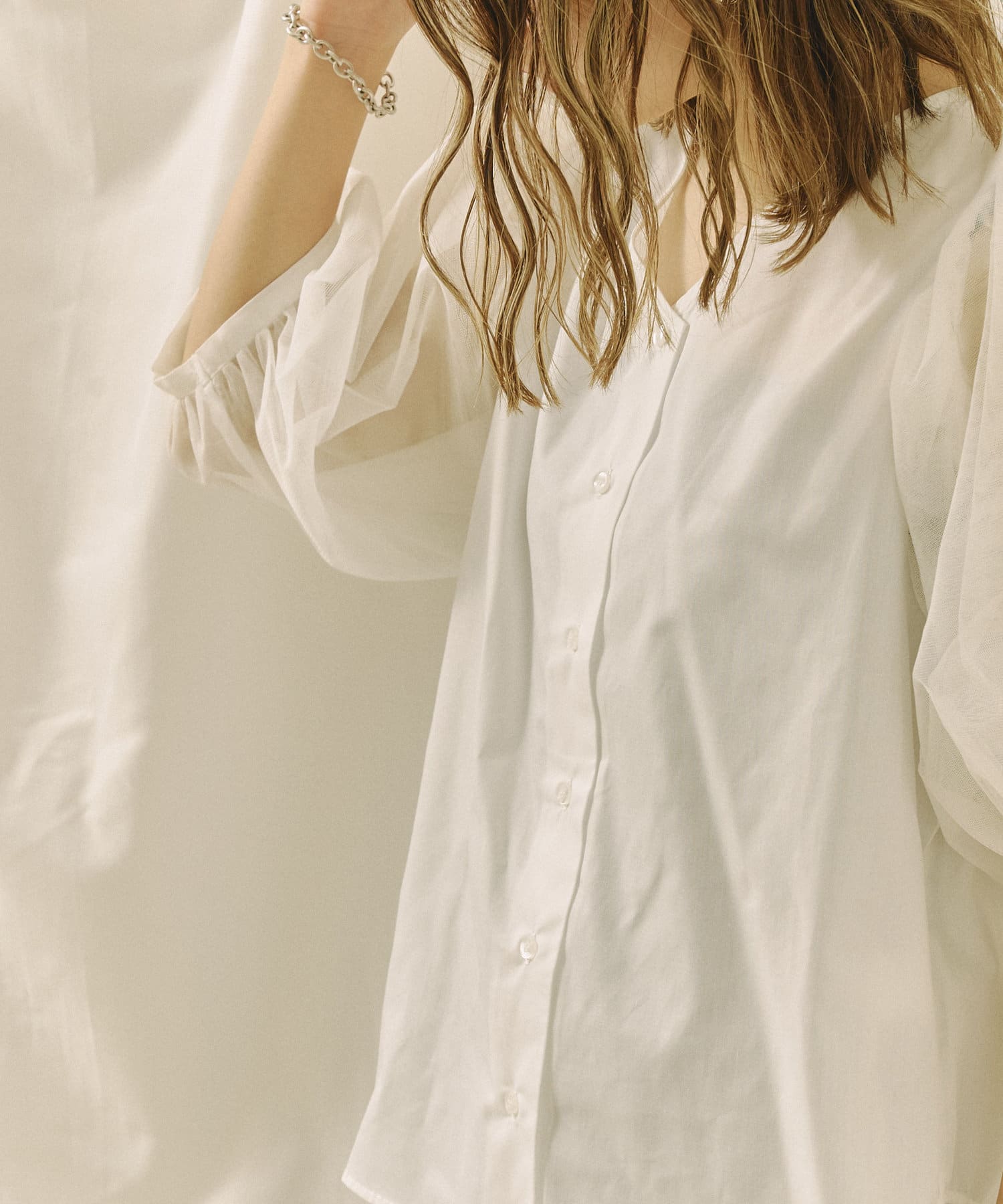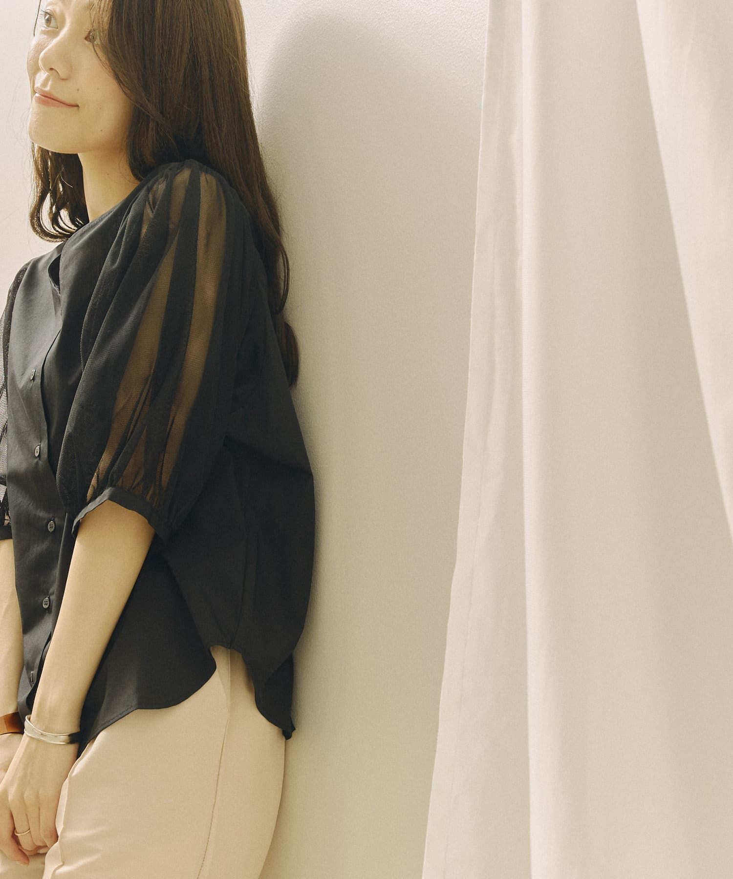 今年らしいチュール袖がオトナフェミニンなブラウス 今から秋まで使える嬉しいアイテム!!