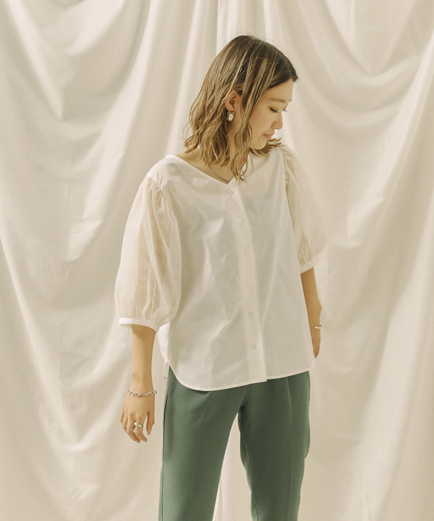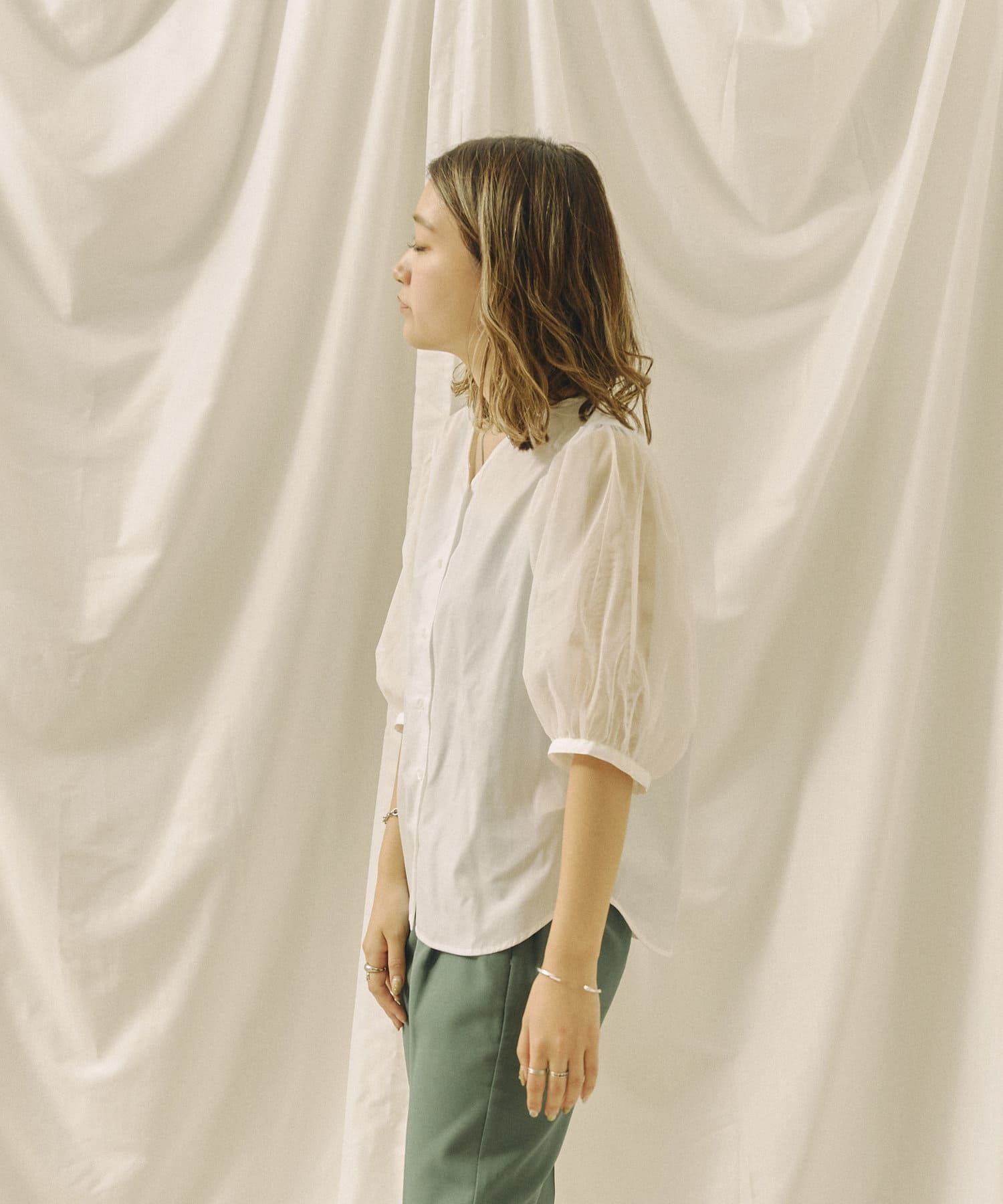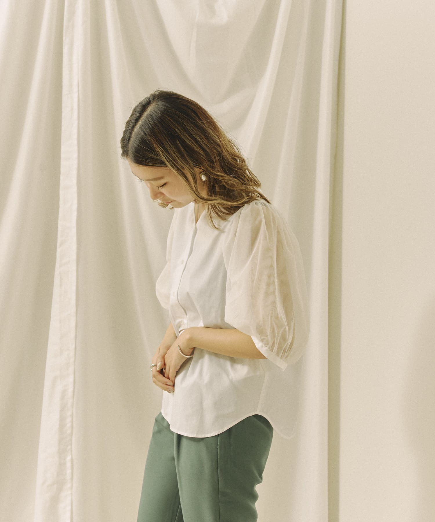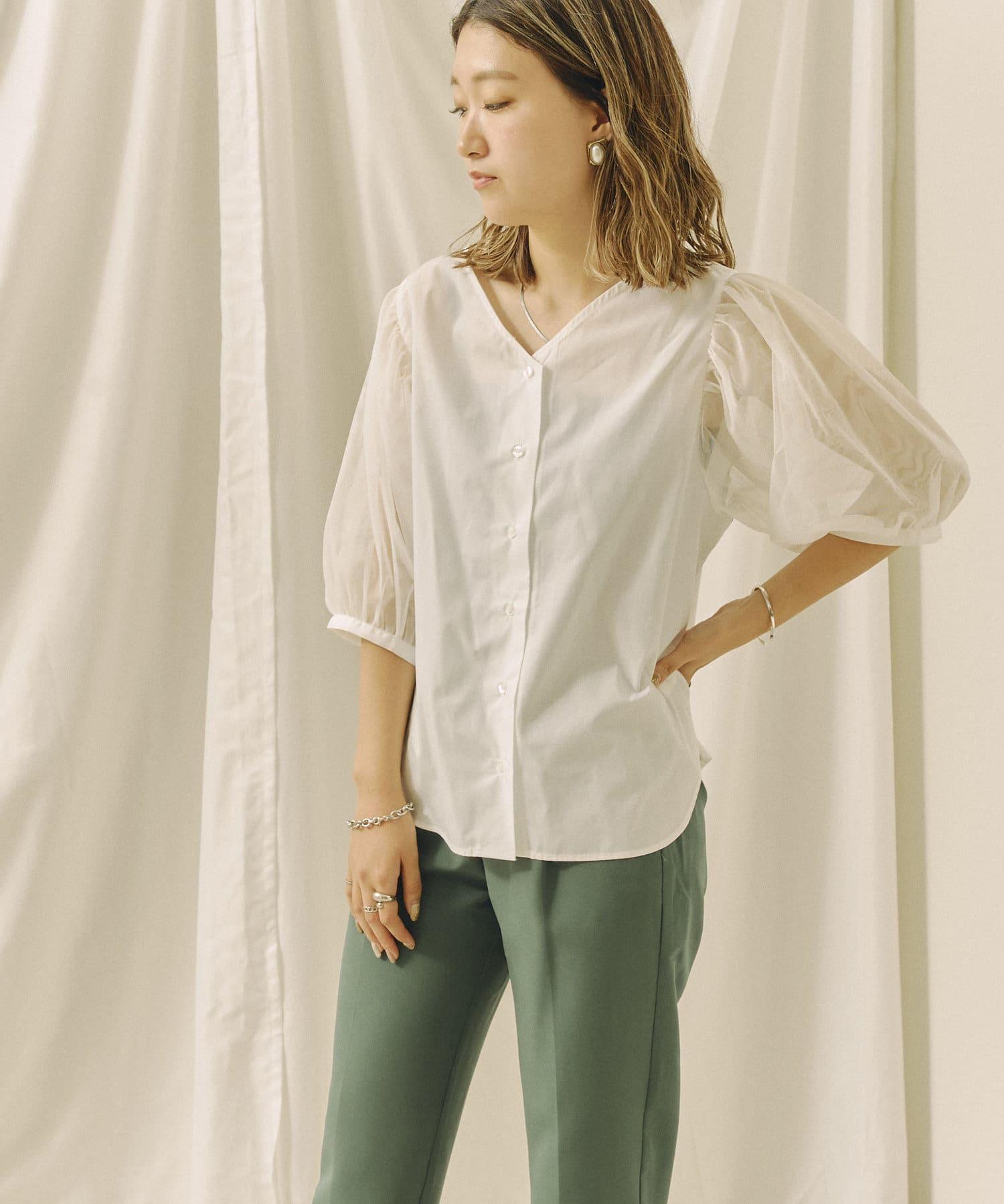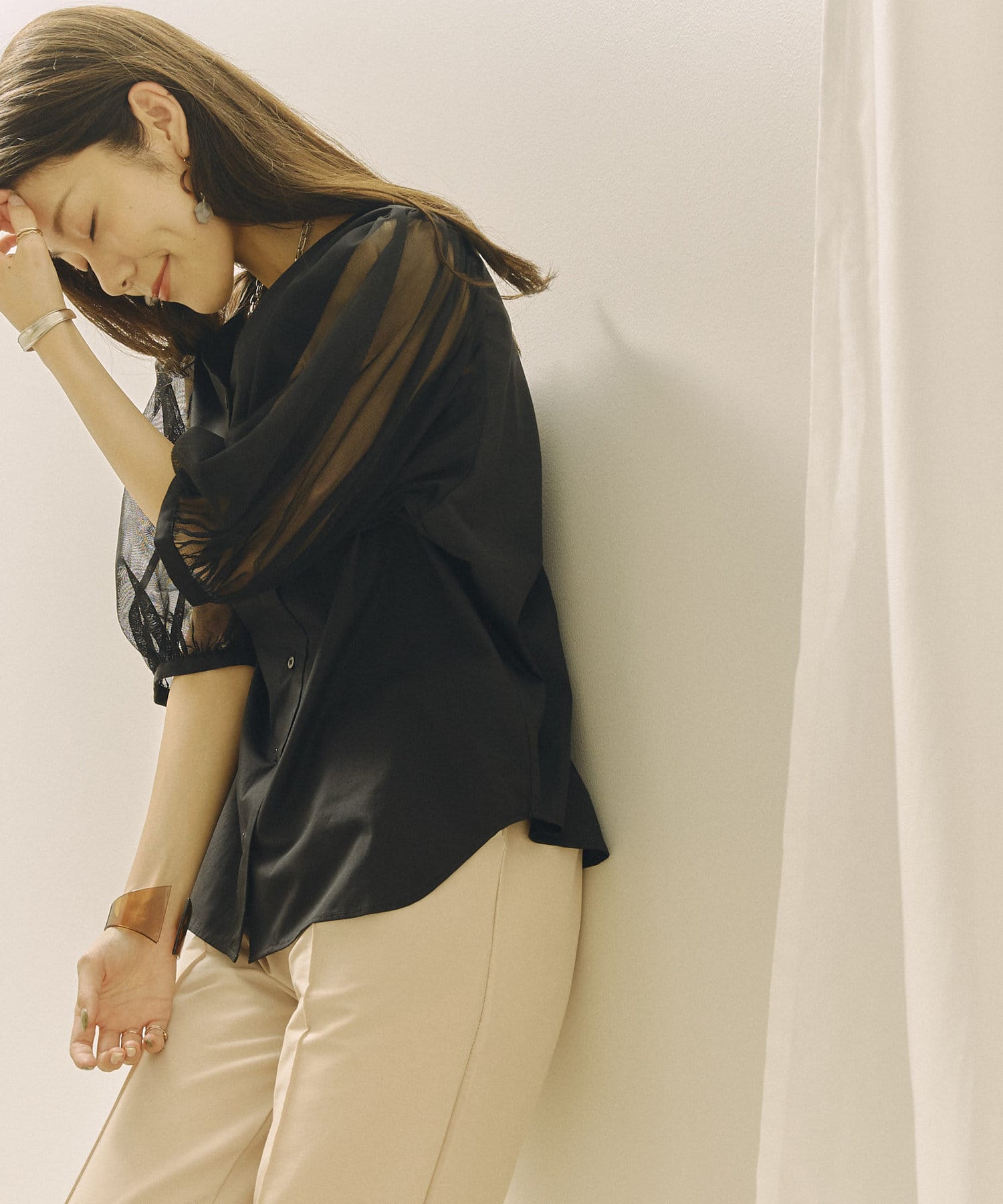 今年らしいチュール袖がオトナフェミニンなブラウス 今から秋まで使える嬉しいアイテム!!