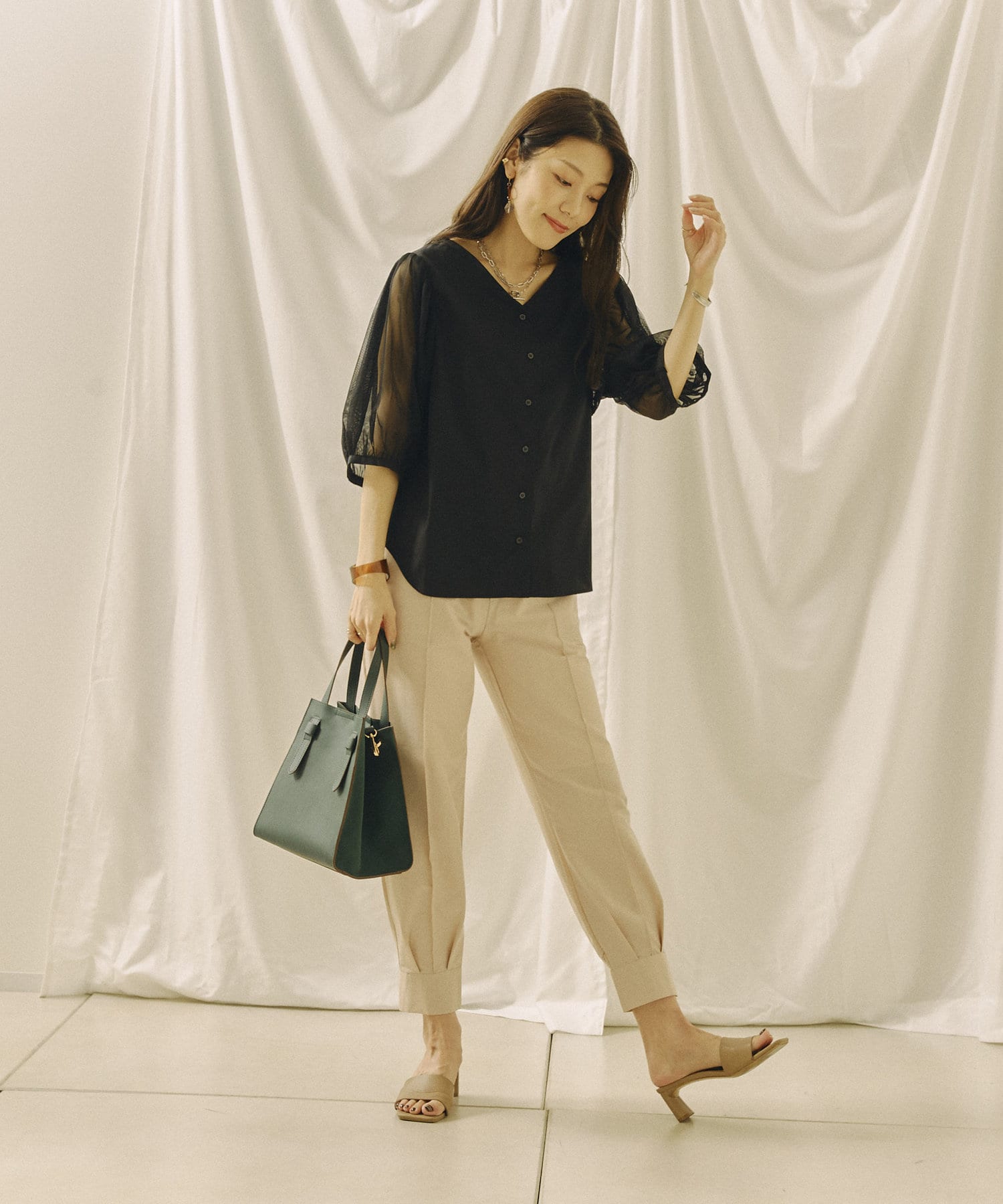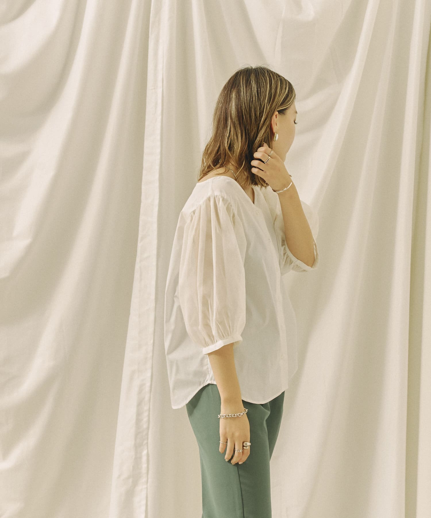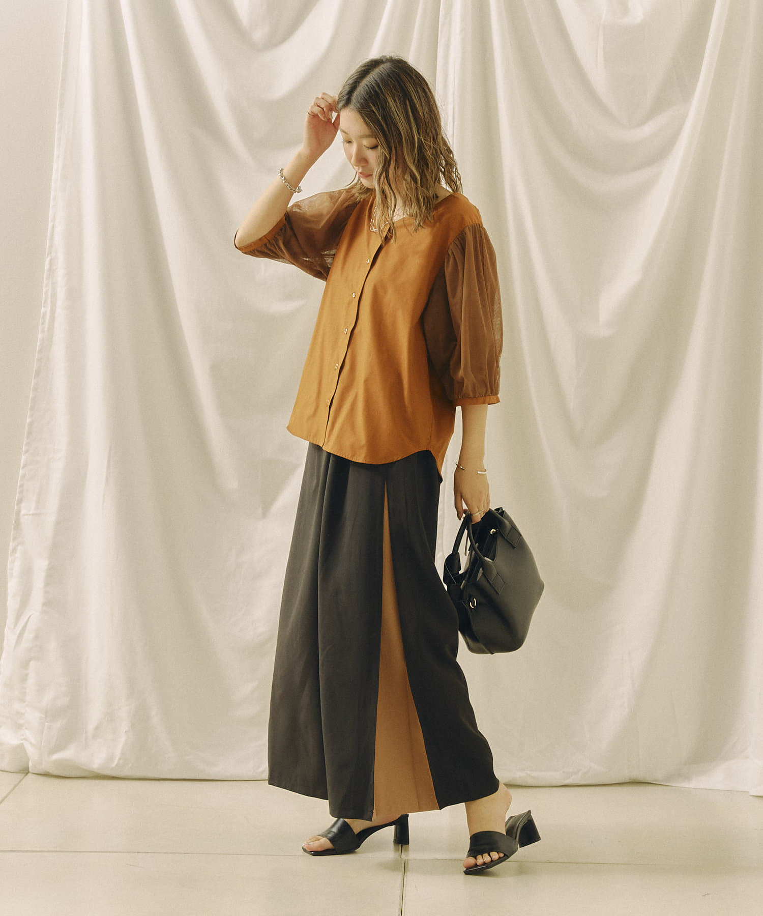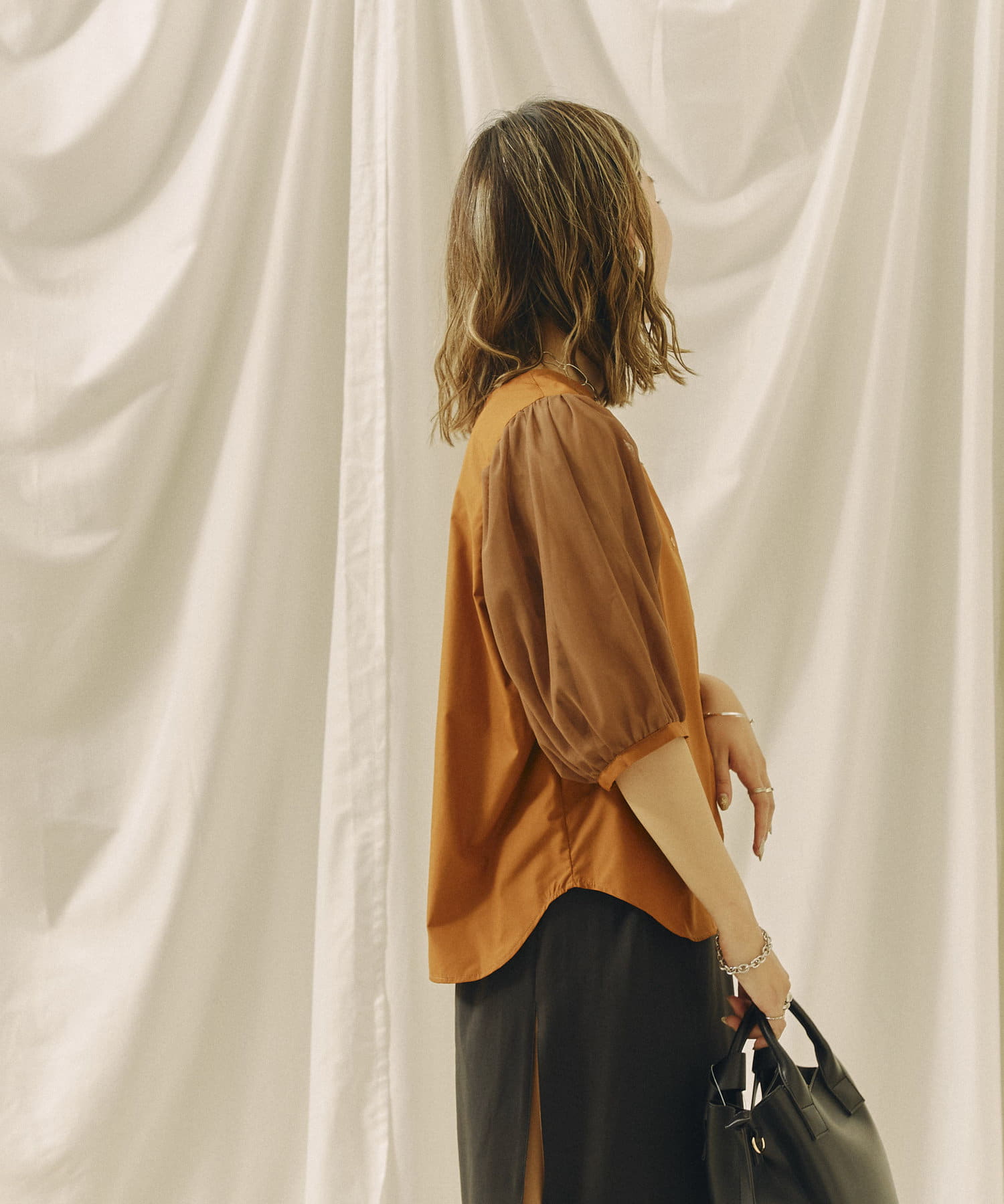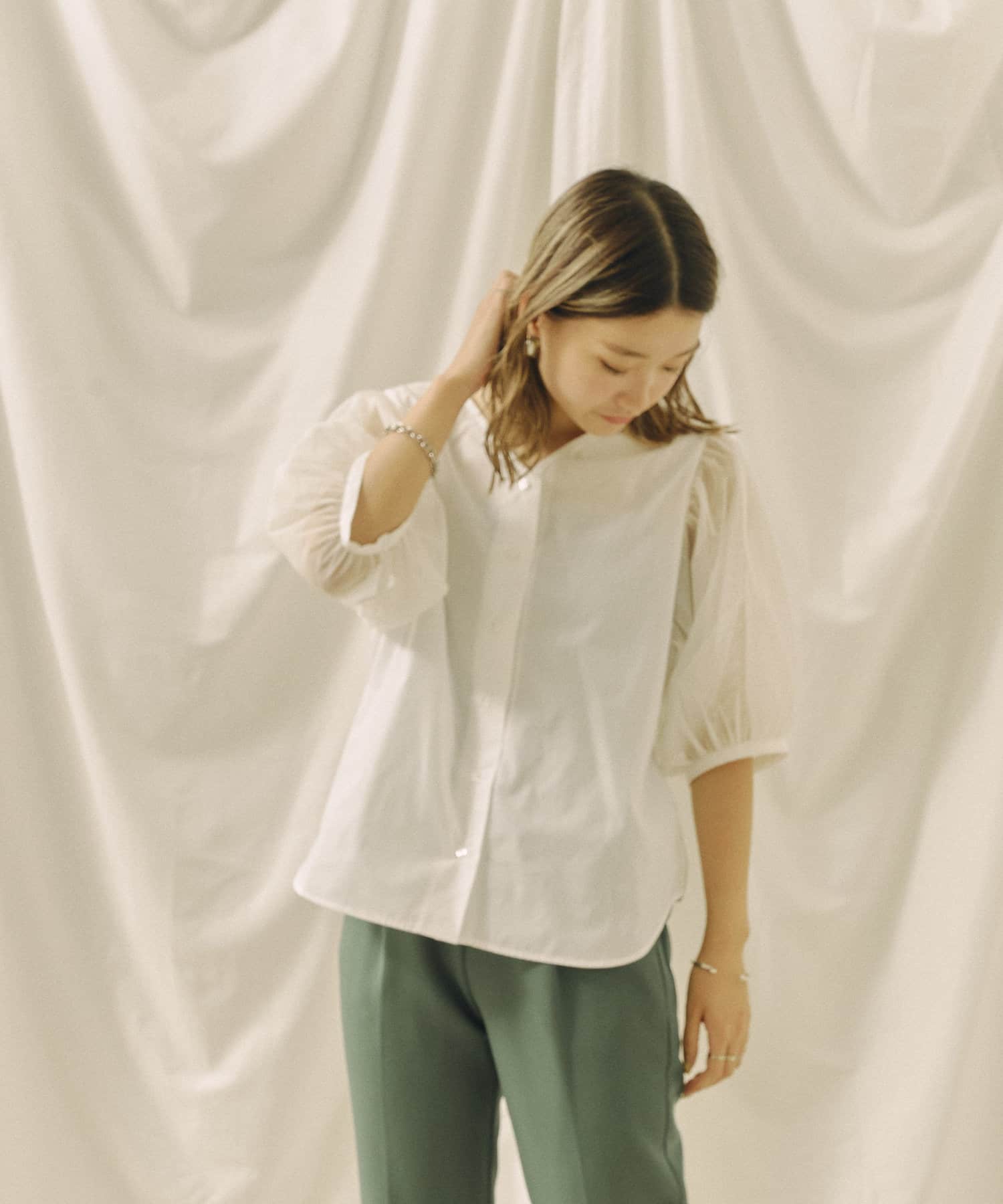 今年らしいチュール袖がオトナフェミニンなブラウス 今から秋まで使える嬉しいアイテム!!
