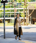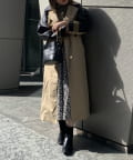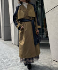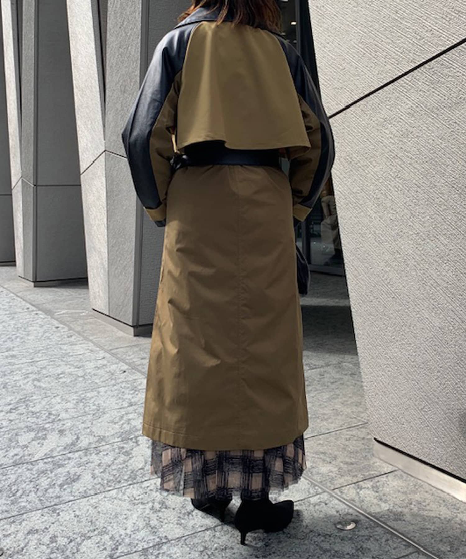 ・3素材を大胆に切り替えた異素材トレンチコートで人と被らないデザイン。