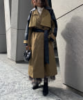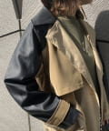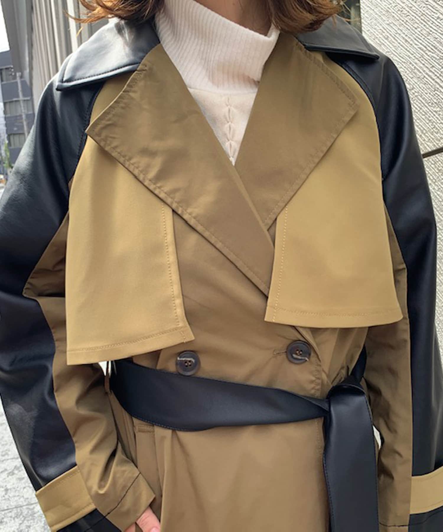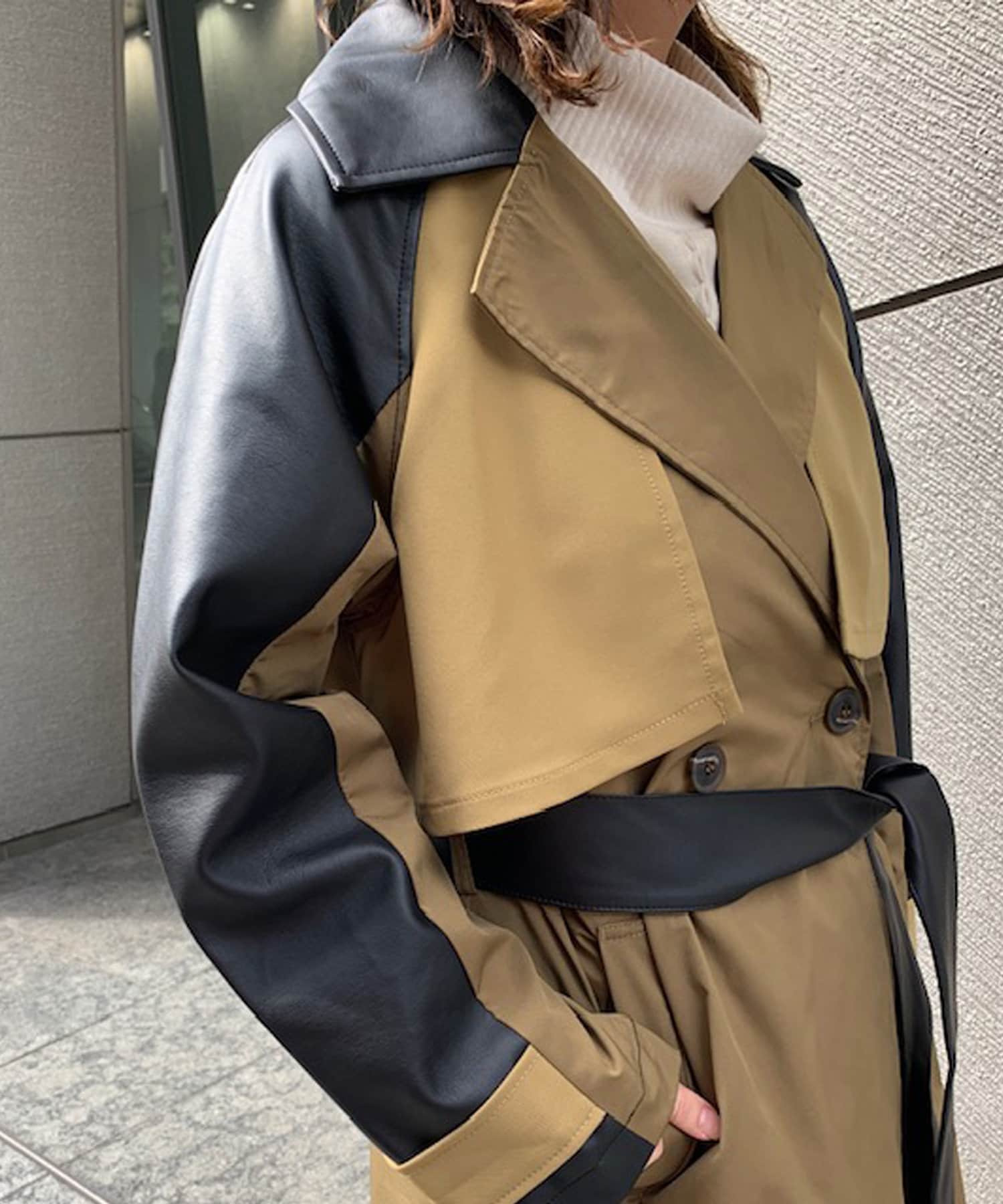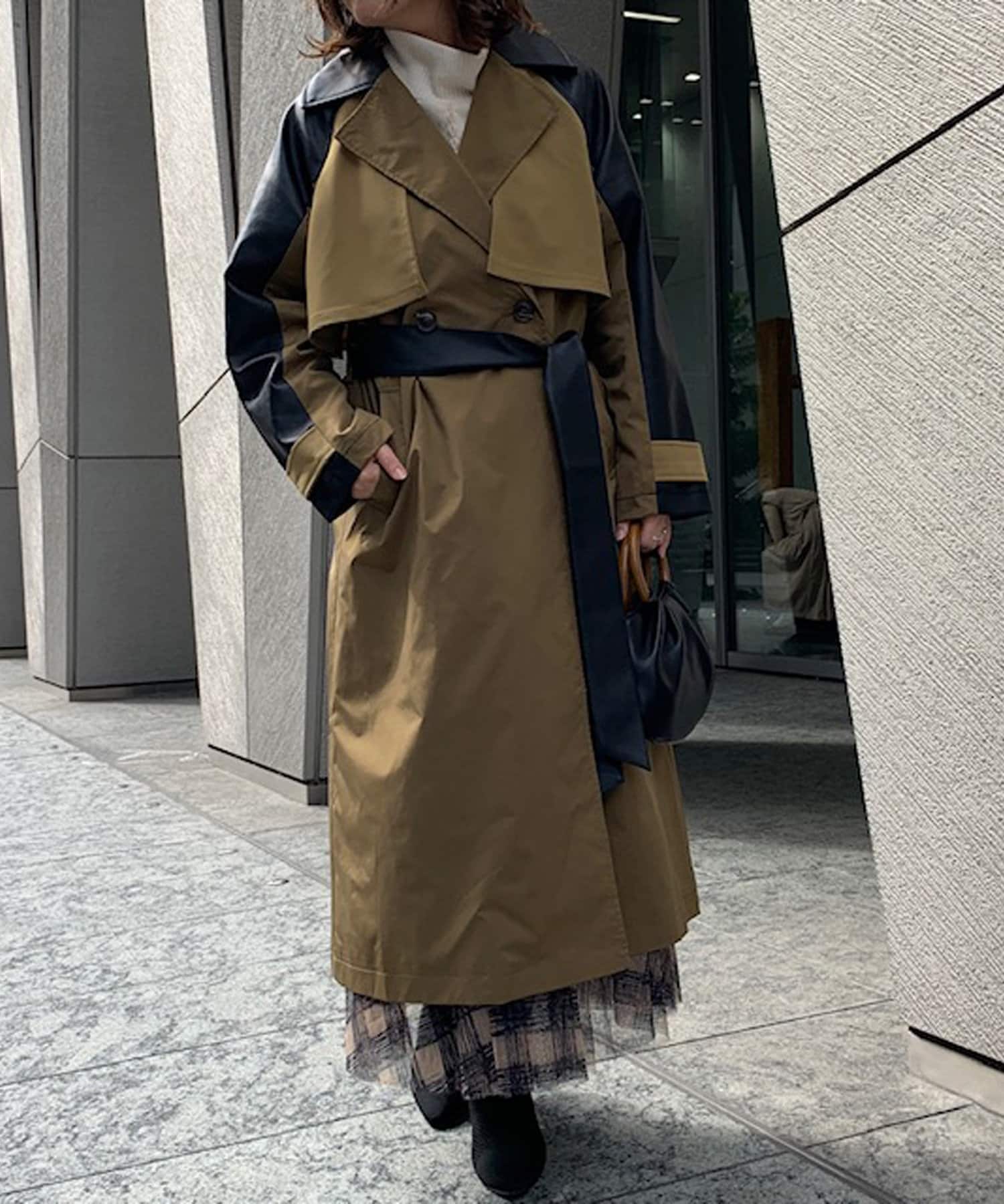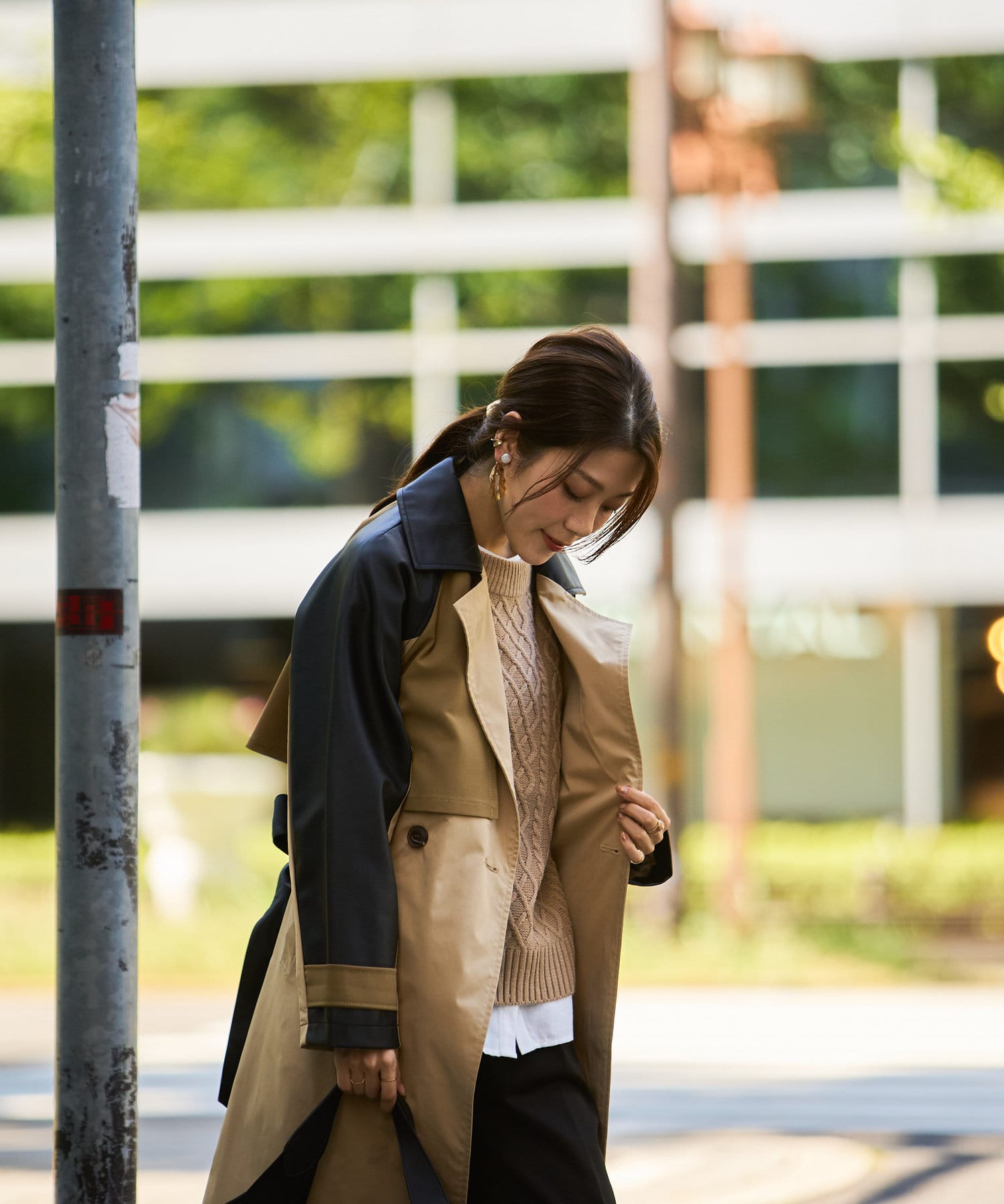 合皮×トレンチの少しの個性をプラスするバイカラートレンチコート