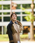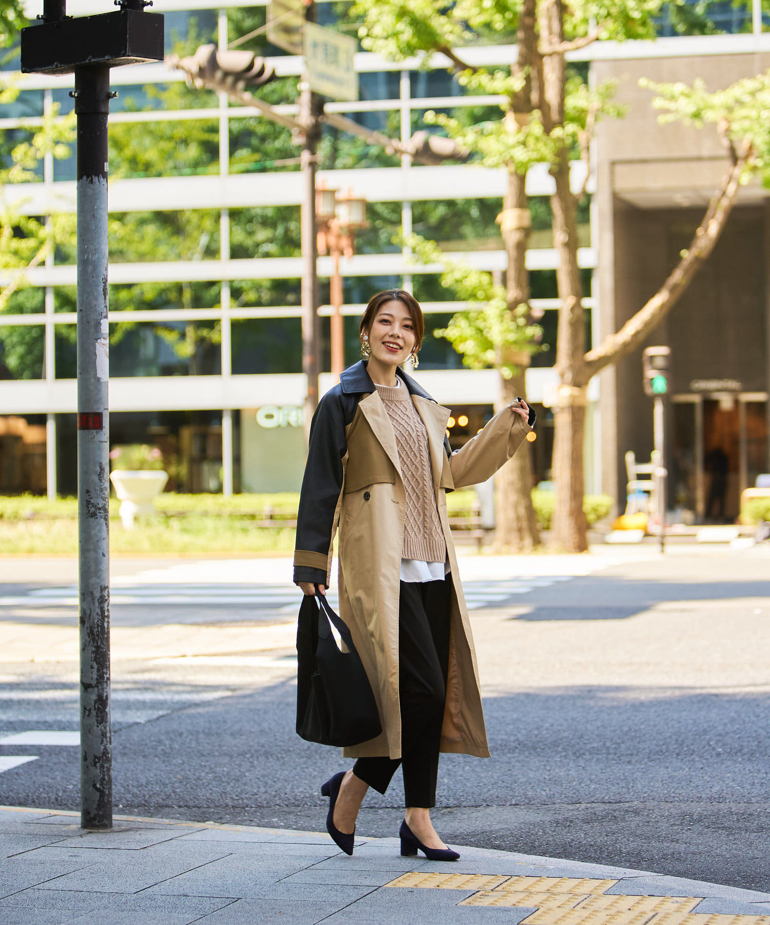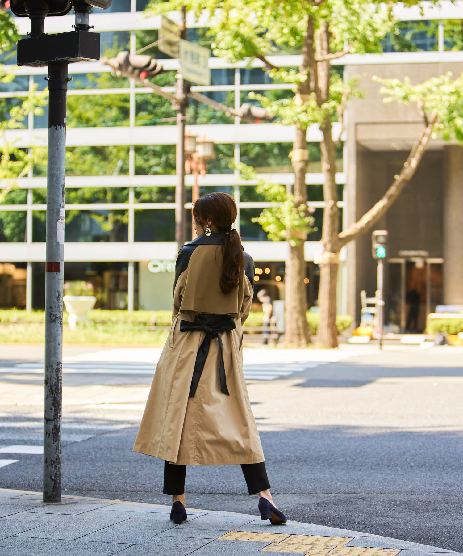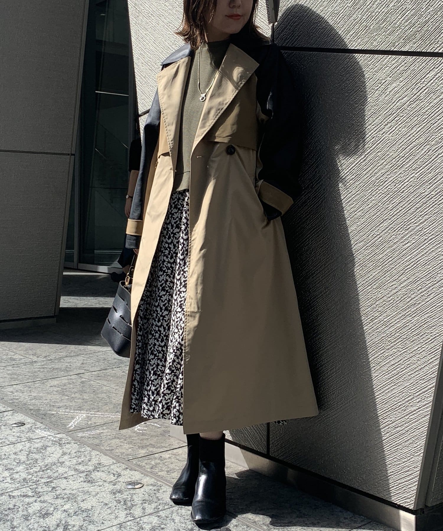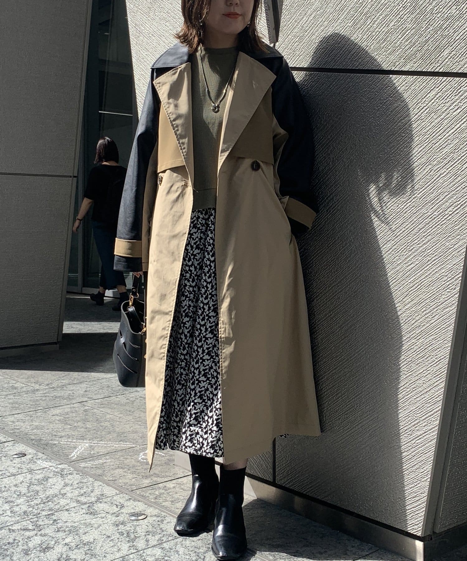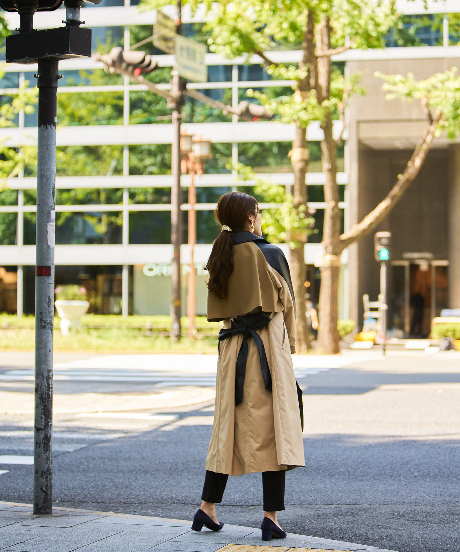 合皮×トレンチの少しの個性をプラスするバイカラートレンチコート