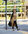 ボタンを閉めて頂いてロングフブーツなど合わせて頂くと少しモードな印象に。