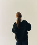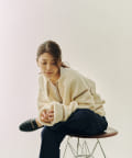 ノーカラーの襟元は、マフラーやタートルネックなどの相性もよし◎