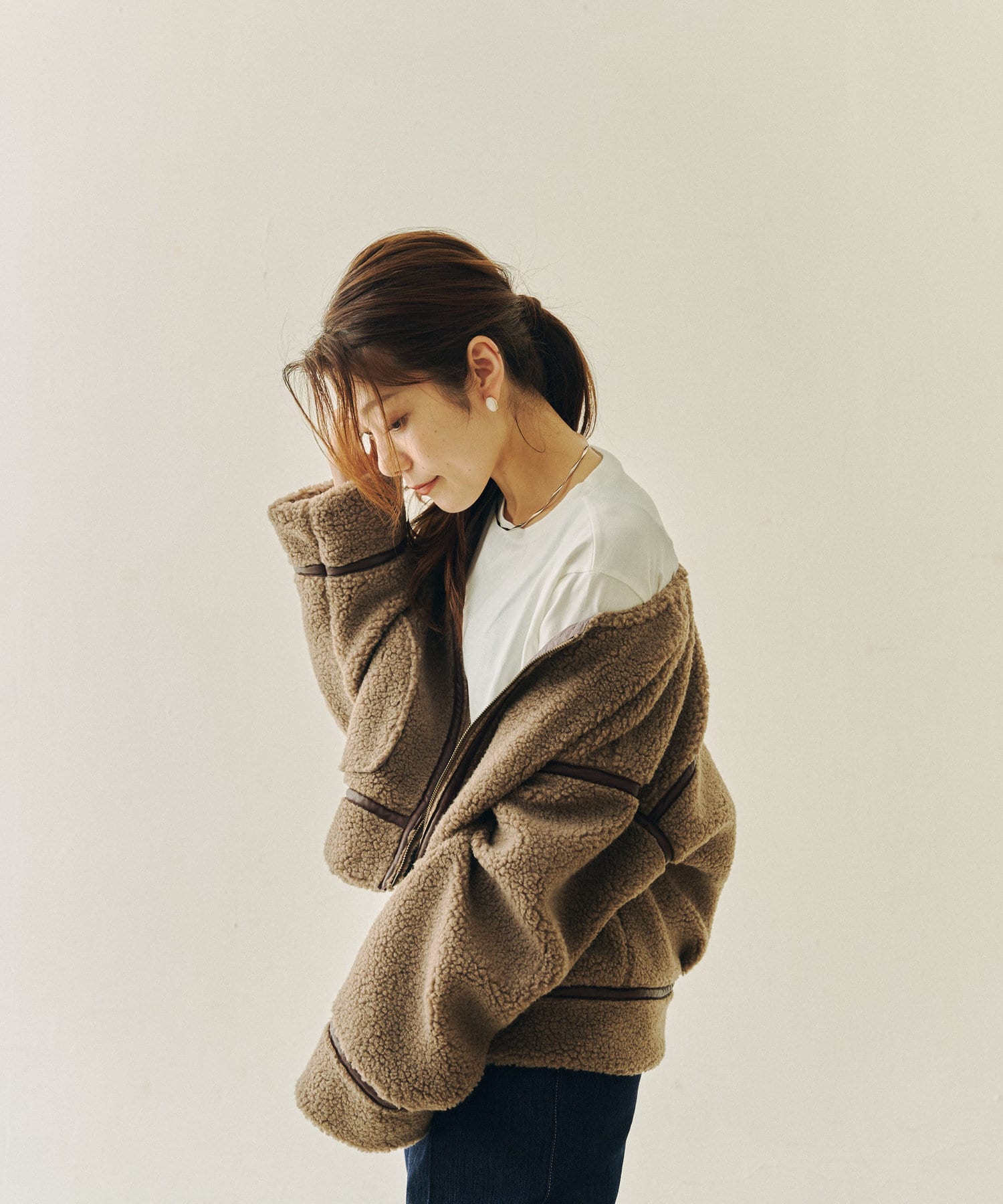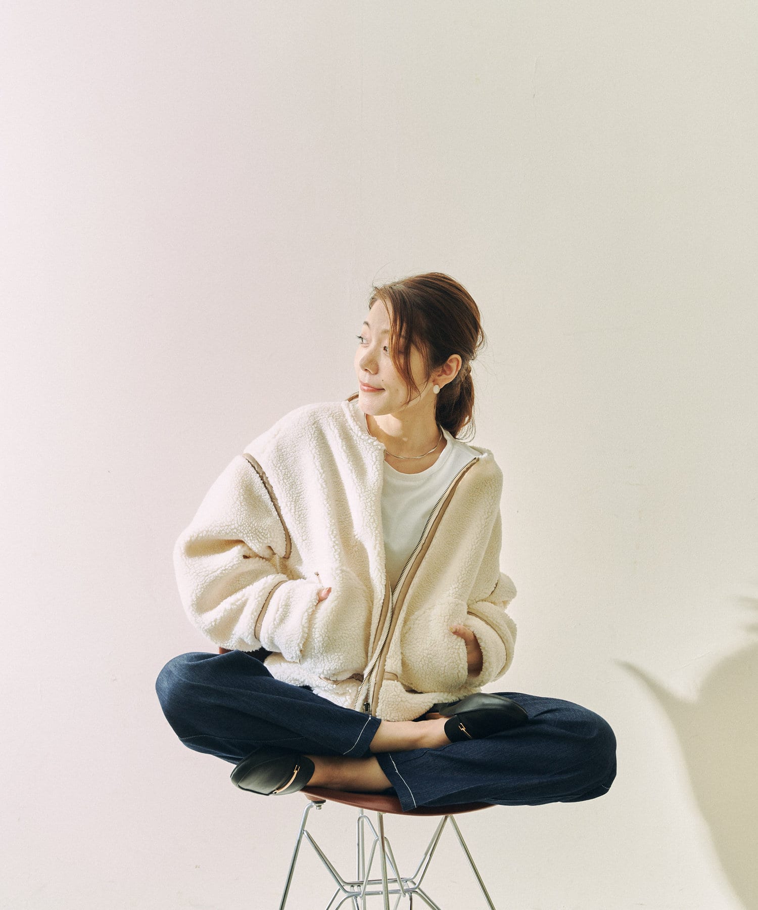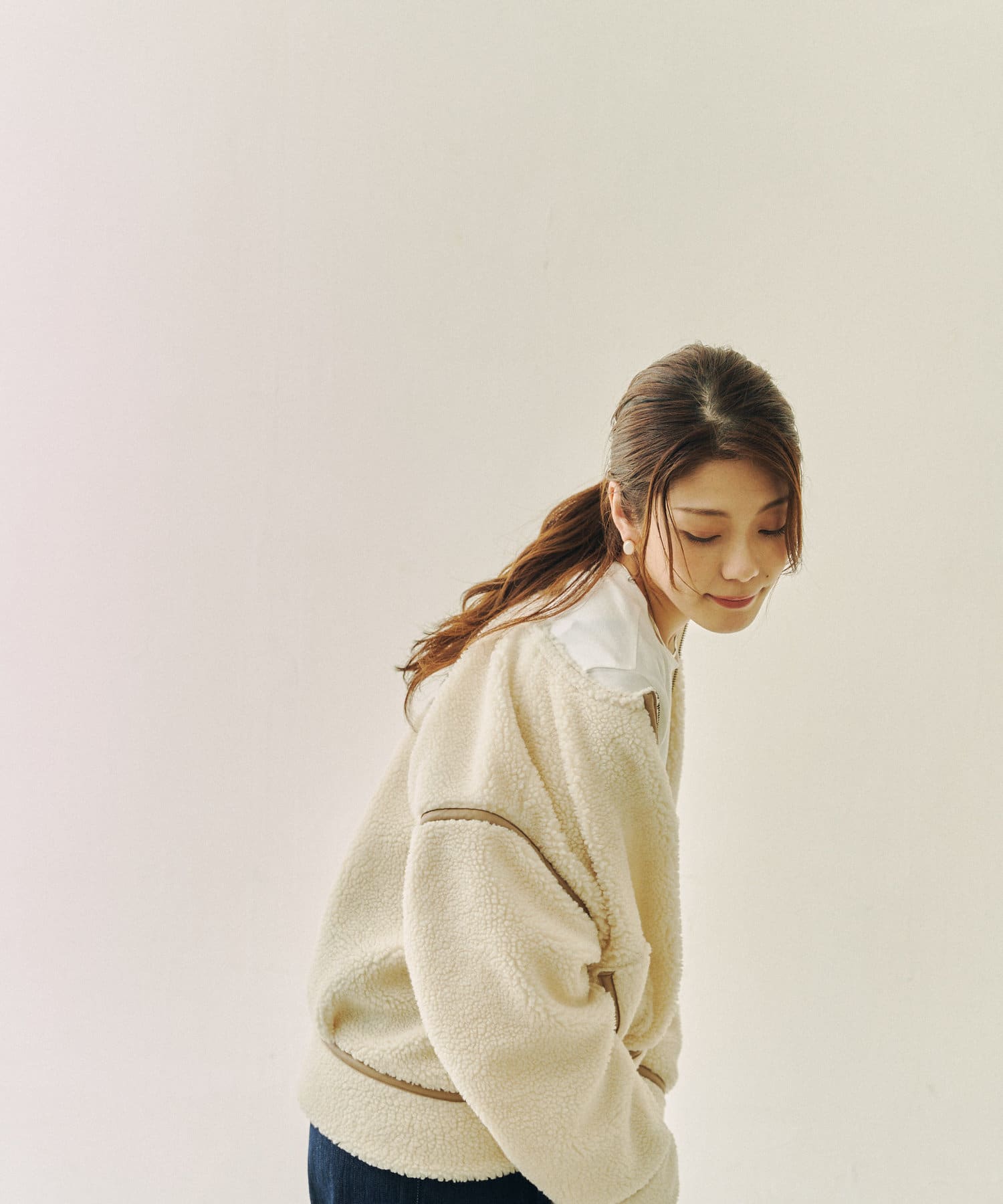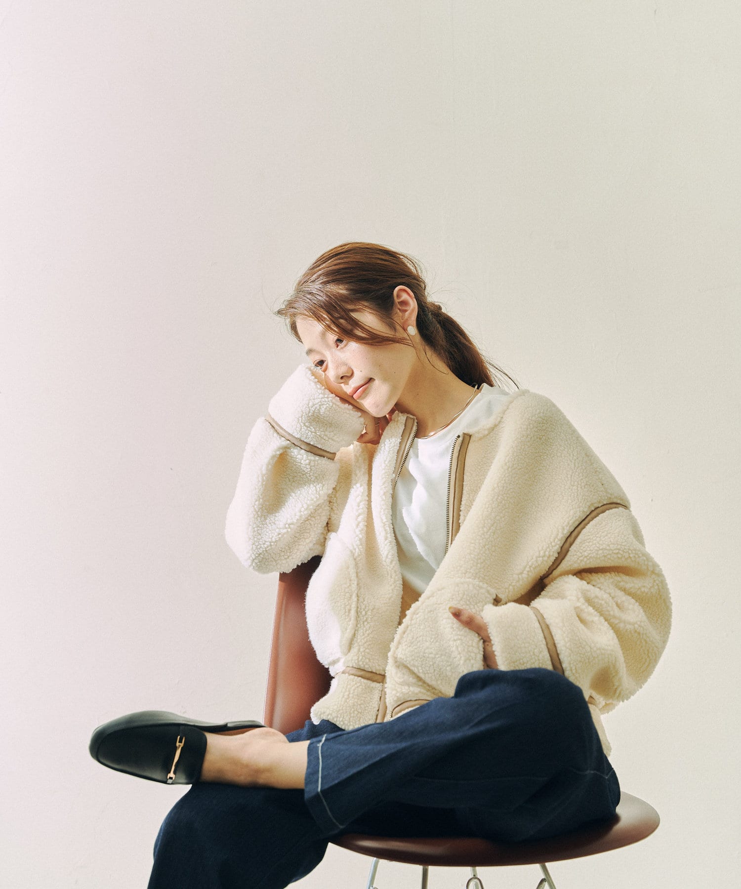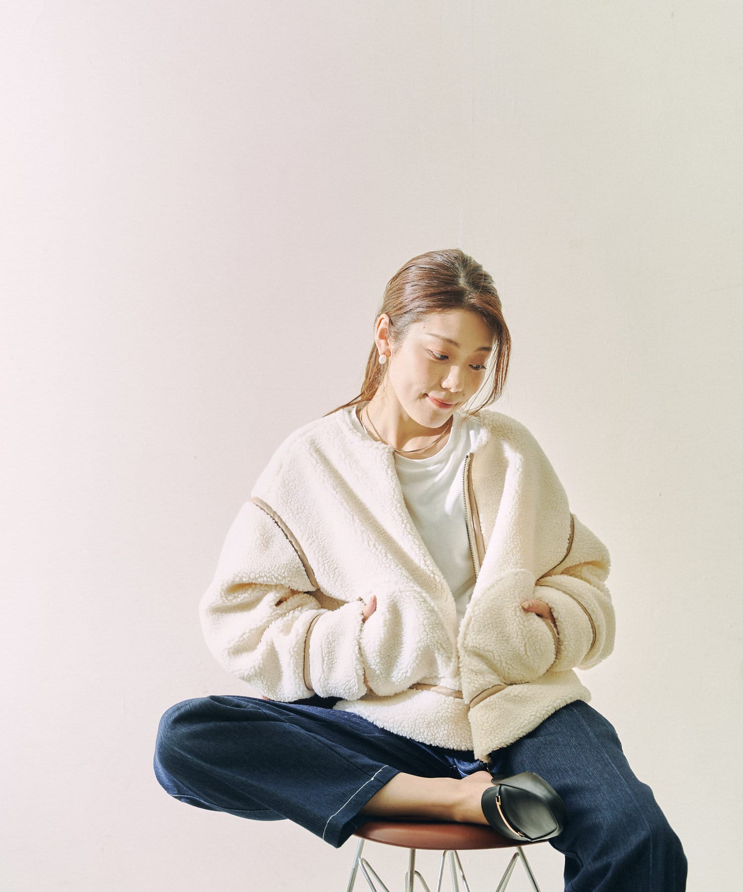 ・今年もトレンド間違いなしのノーカラーボアブルゾン!