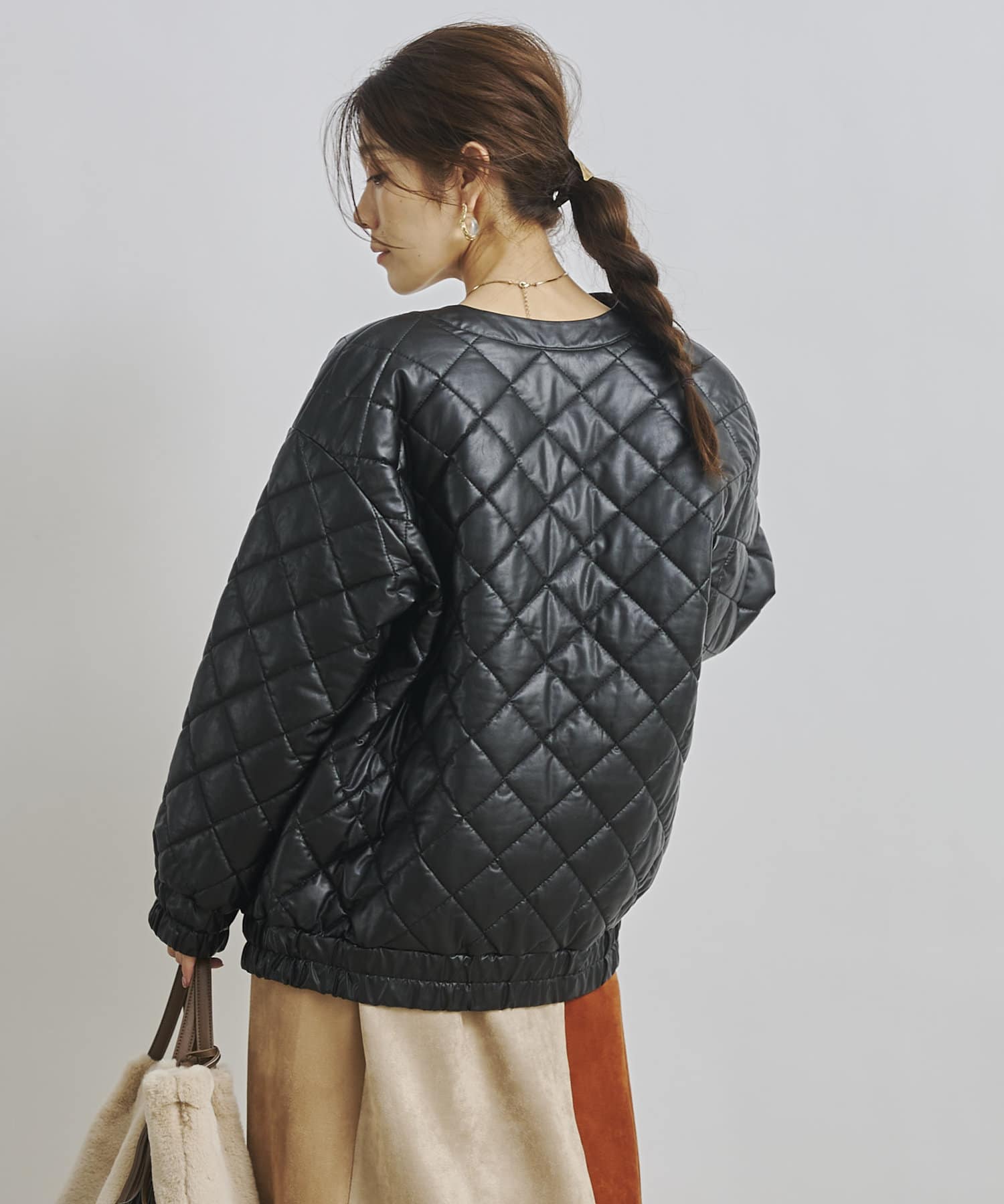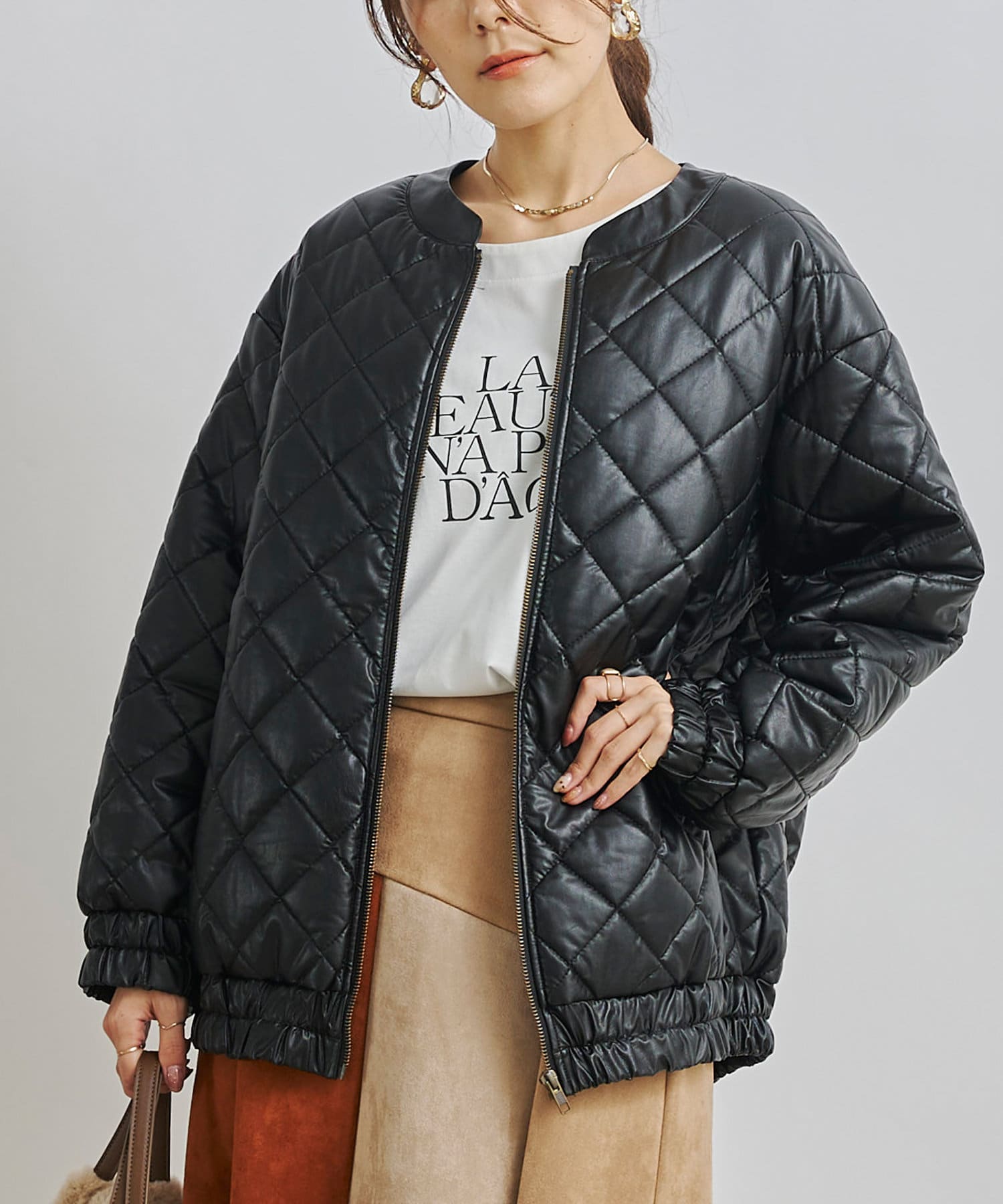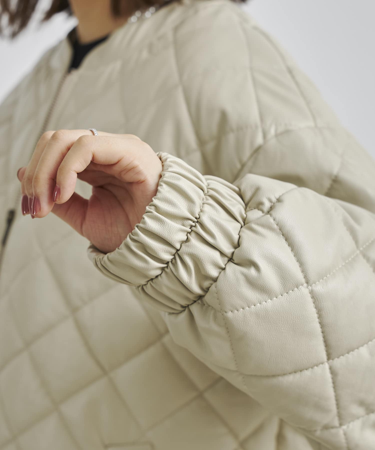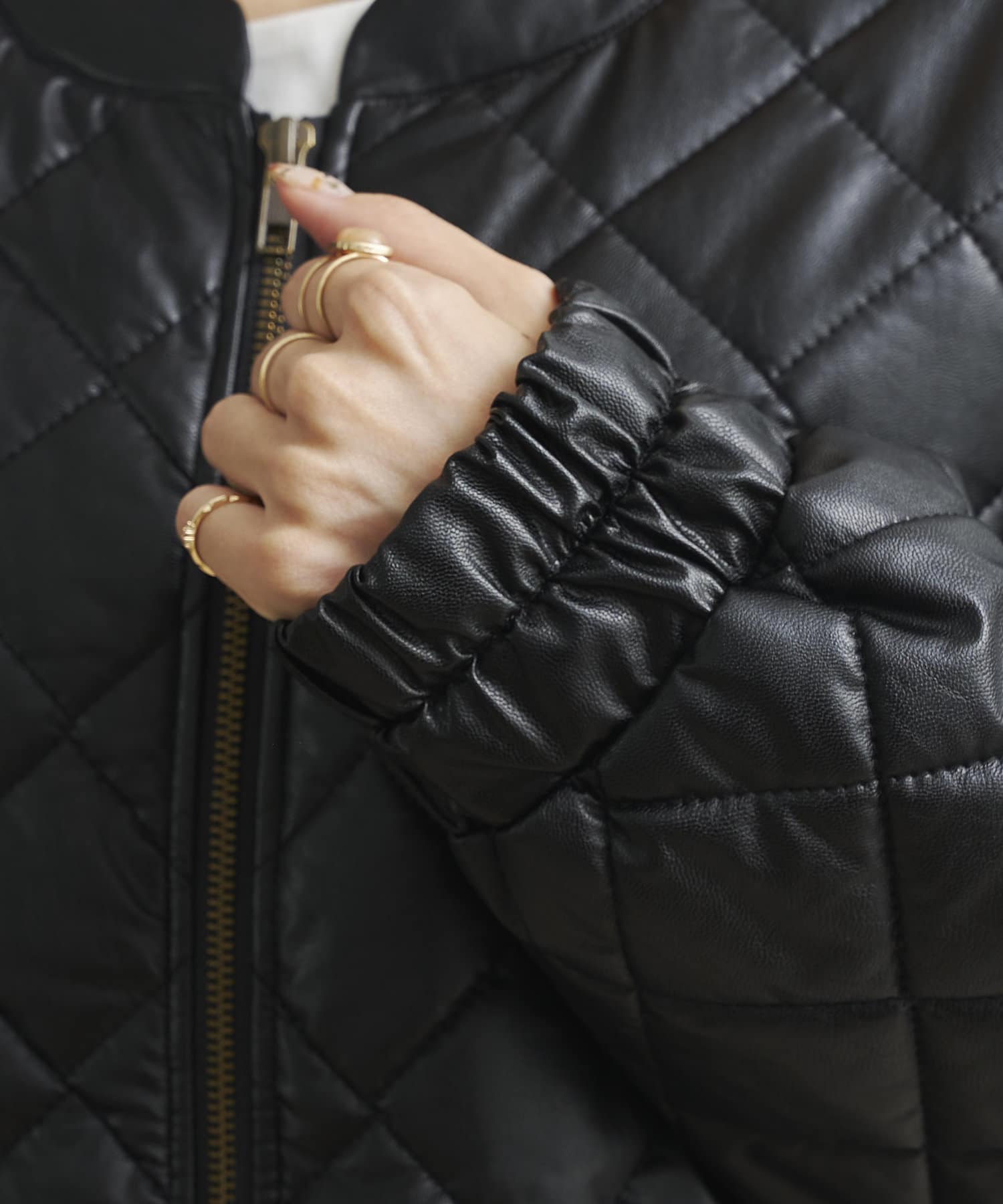 ・トレンドのキルティングを取り入れたフェイクレザーブルゾン。