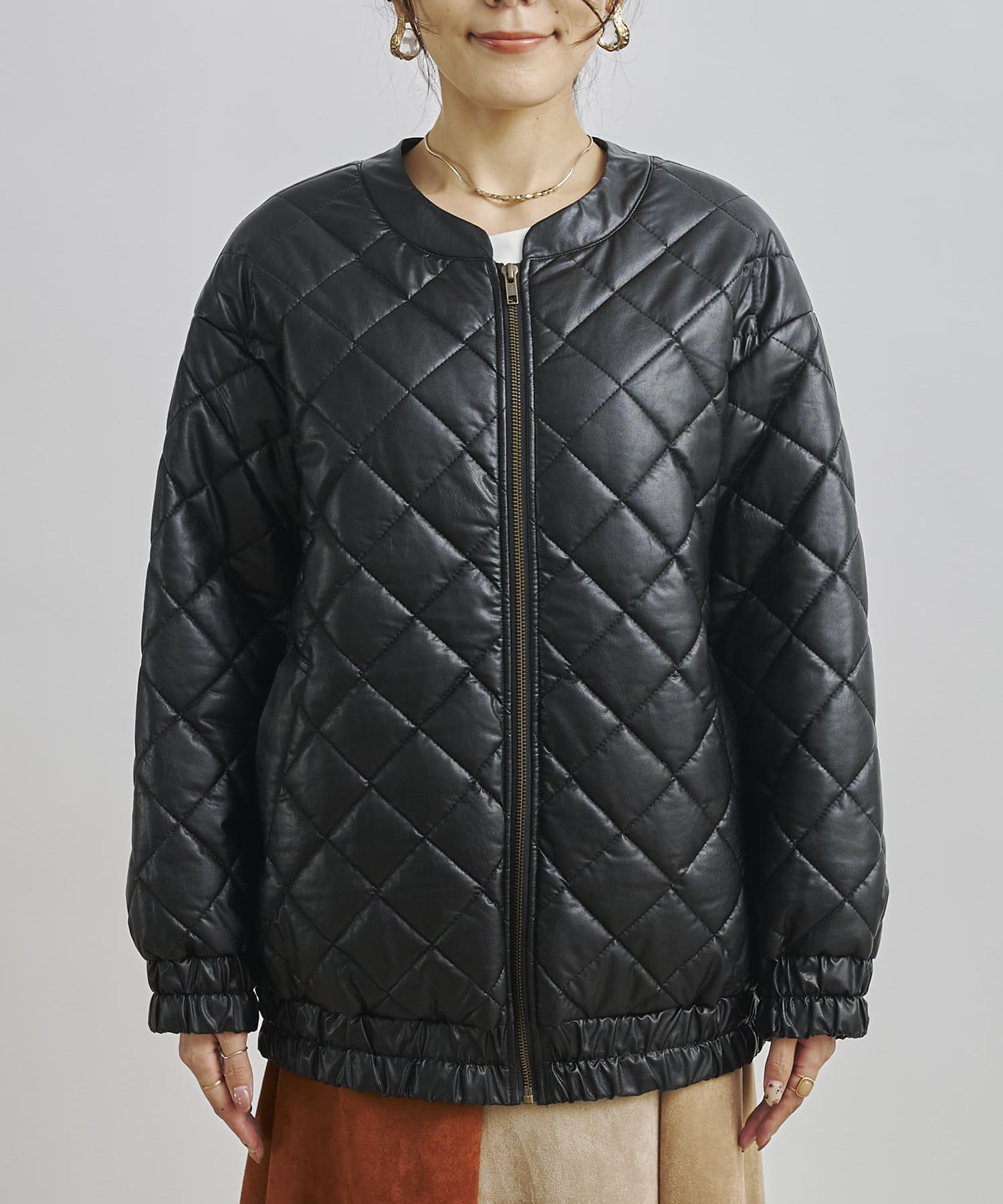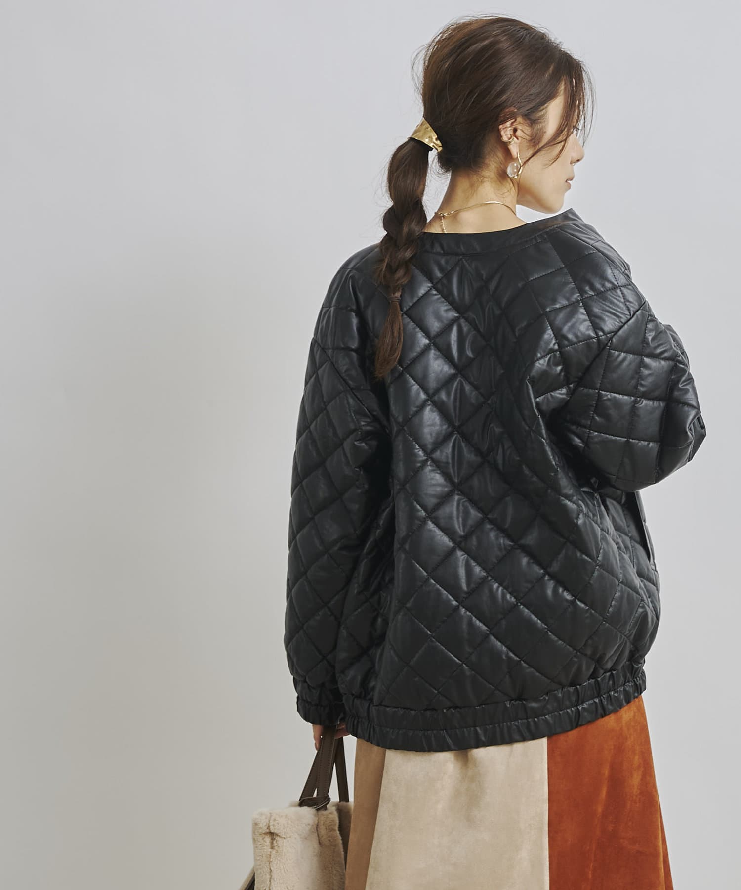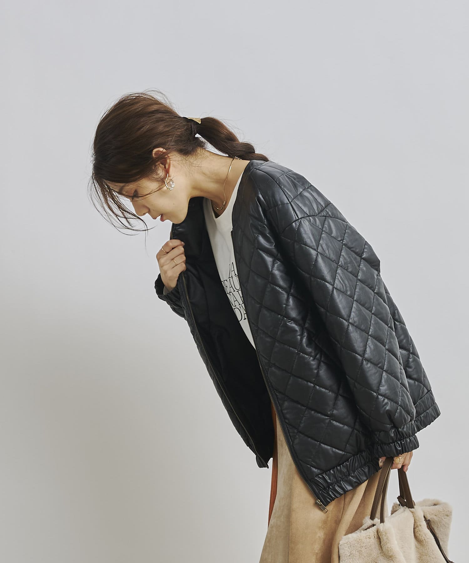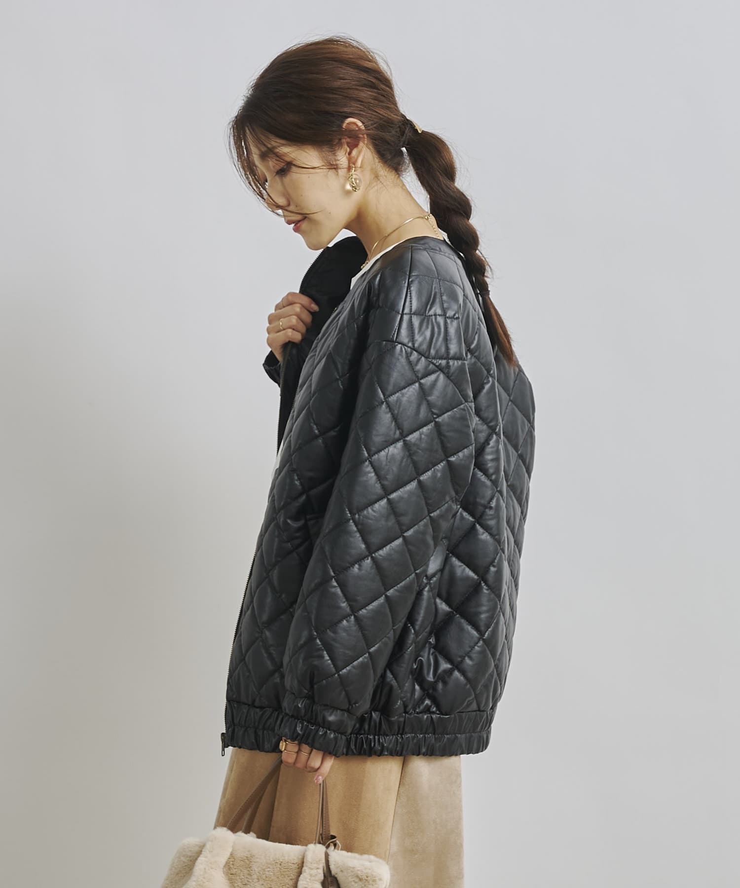 ・トレンドのキルティングを取り入れたフェイクレザーブルゾン。