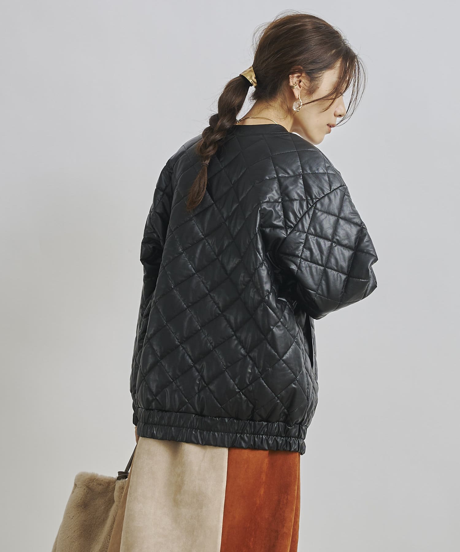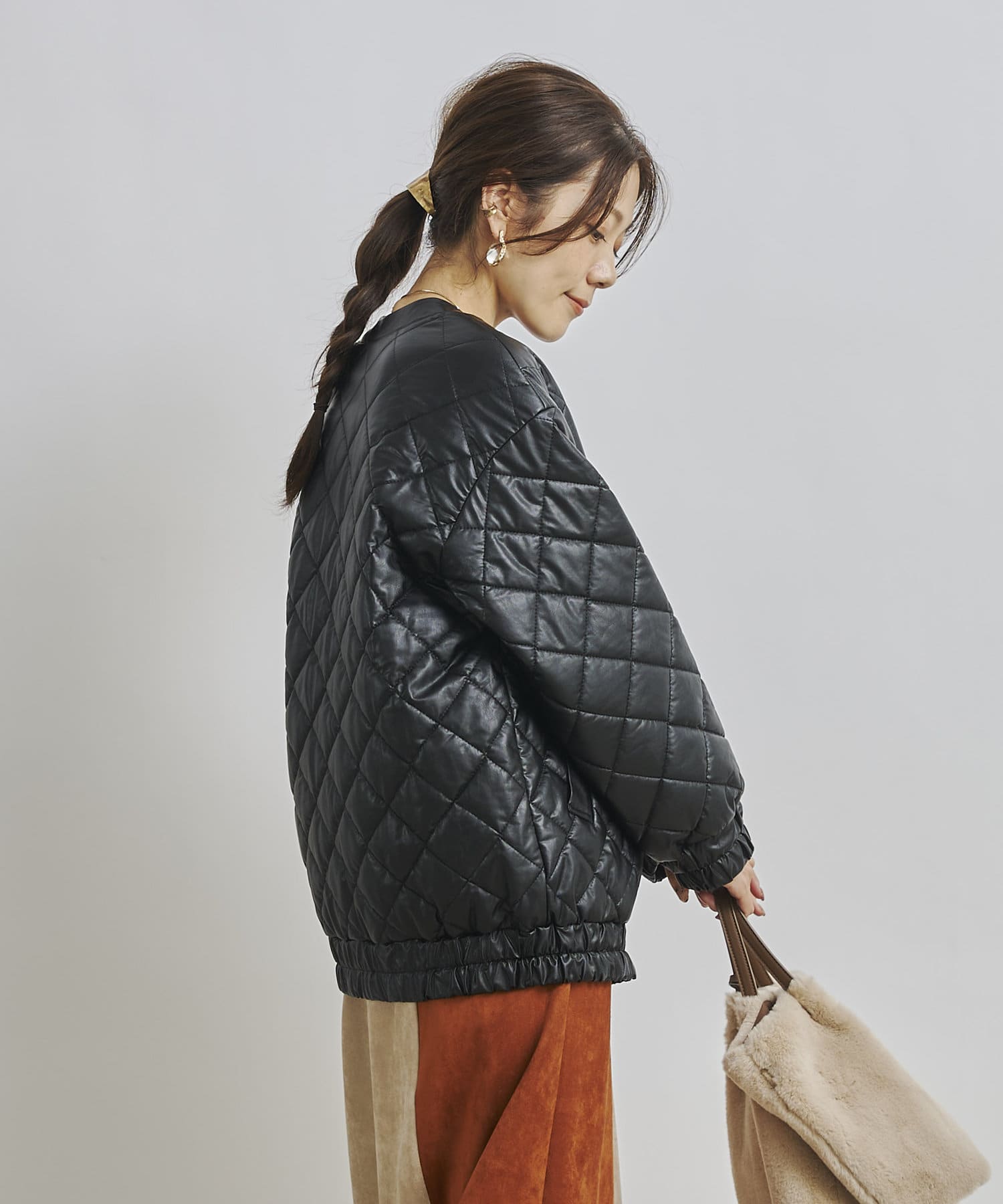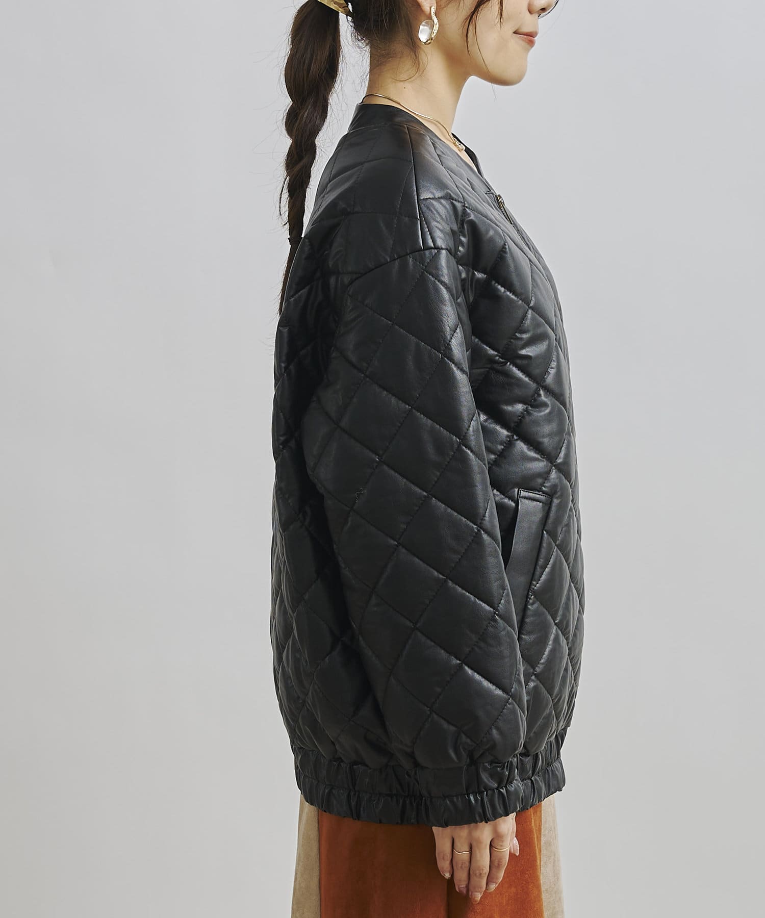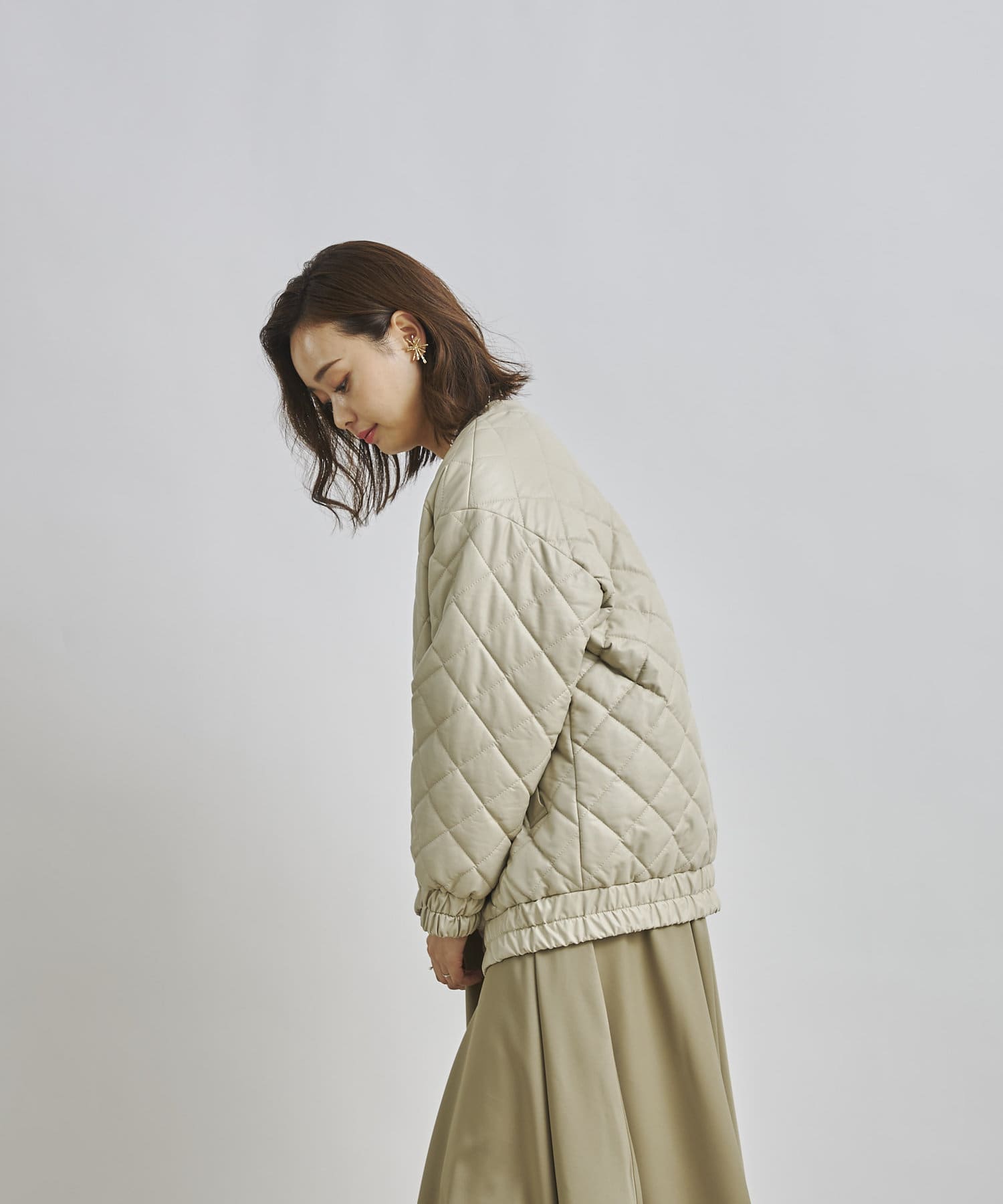 ・トレンドのキルティングを取り入れたフェイクレザーブルゾン。