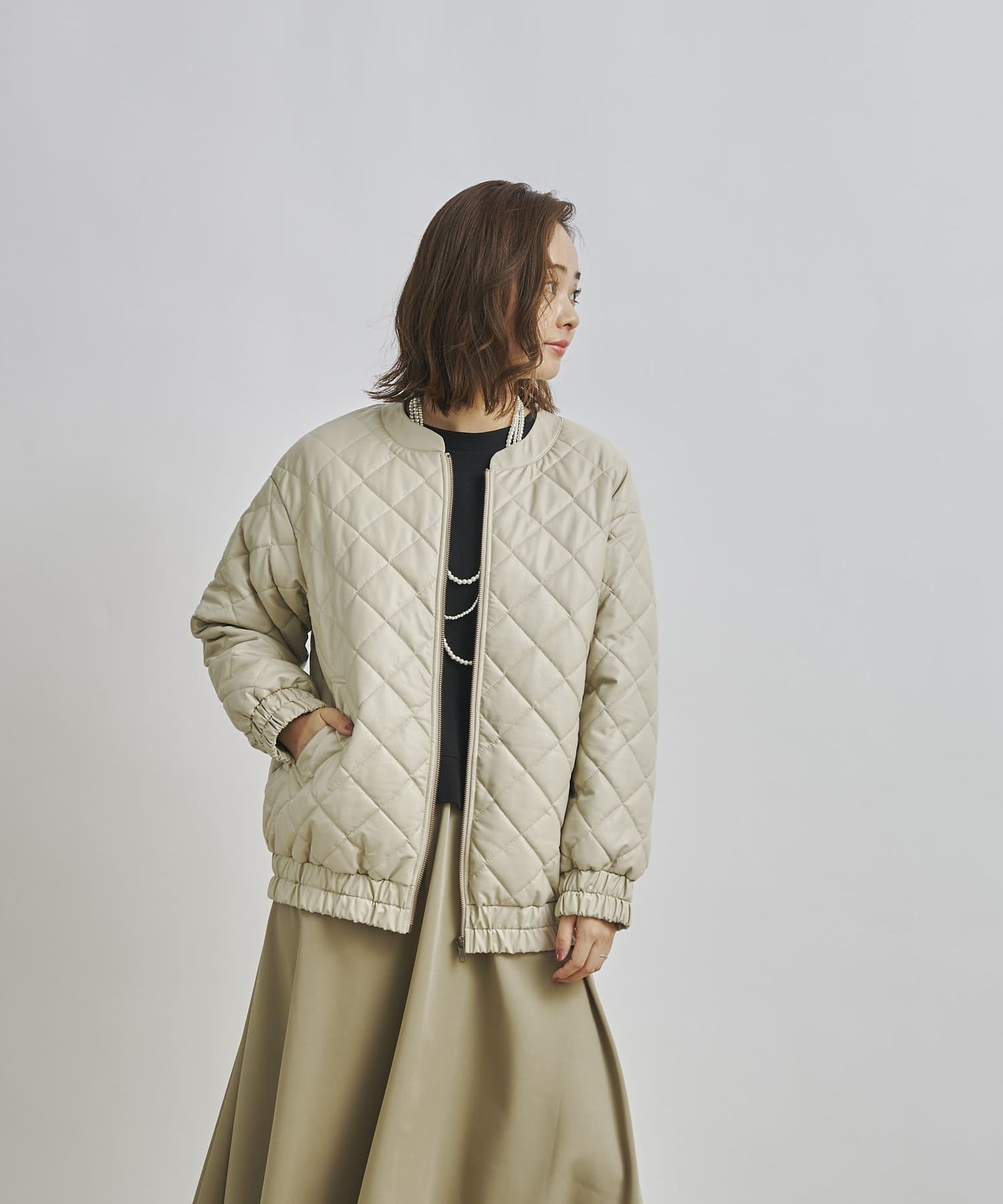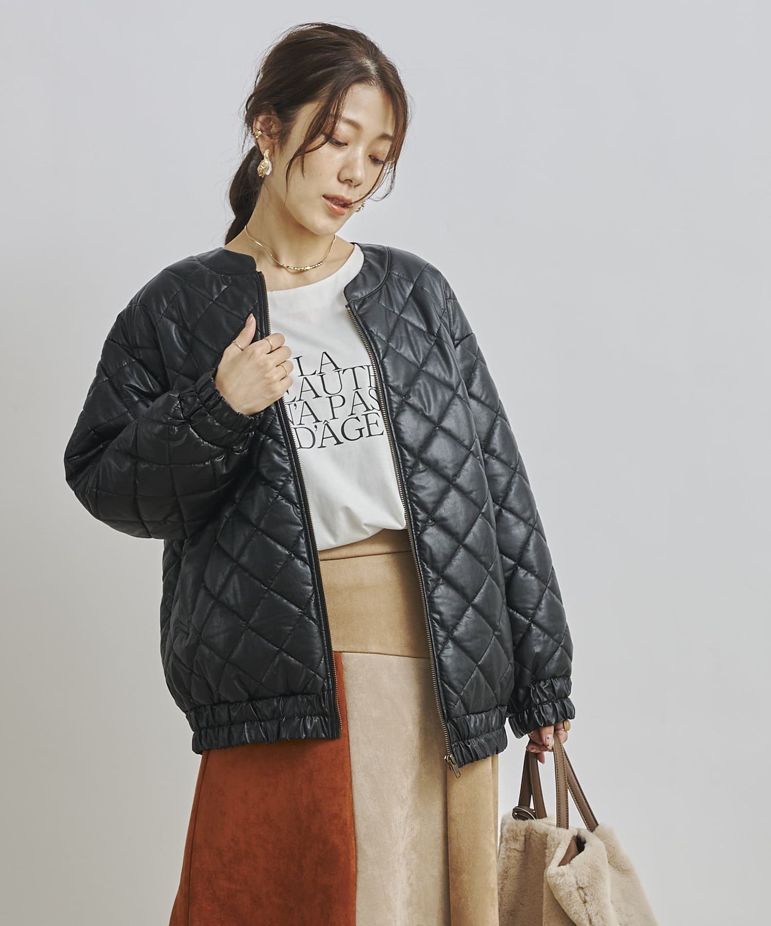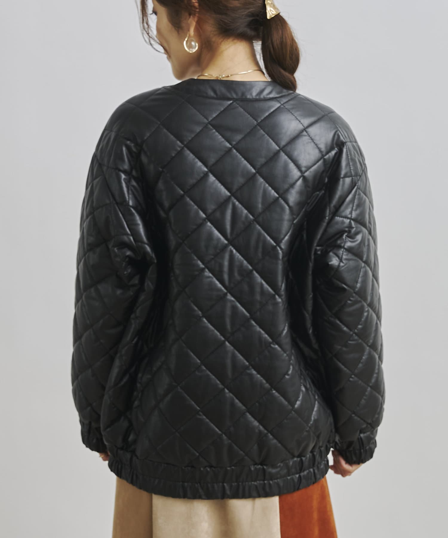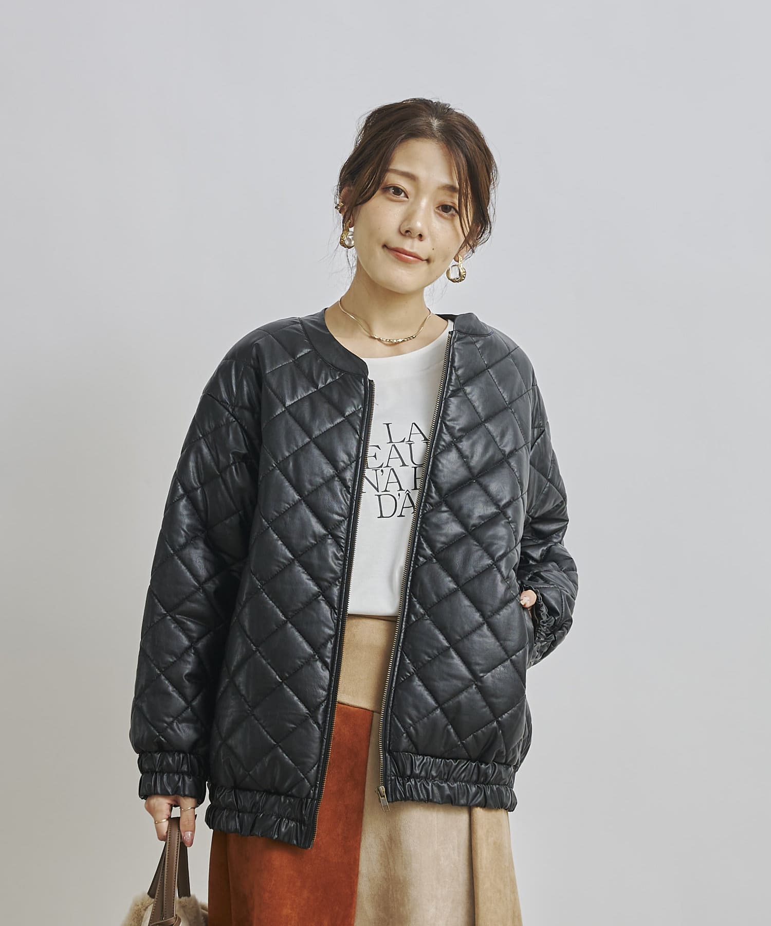・トレンドのキルティングを取り入れたフェイクレザーブルゾン。