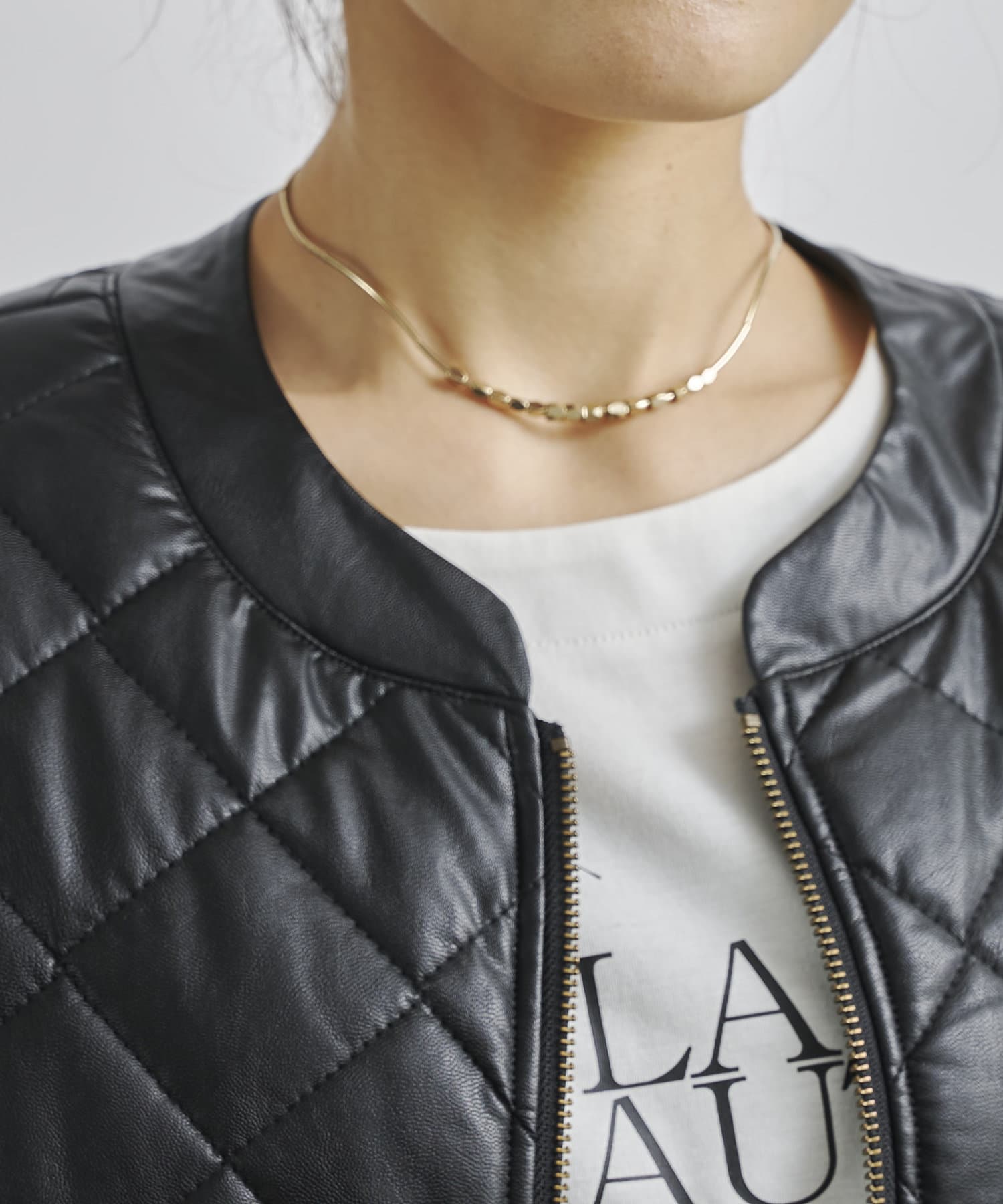 ・ハードになりがちなレザージャケットもキルティング加工で程よいカジュアル感