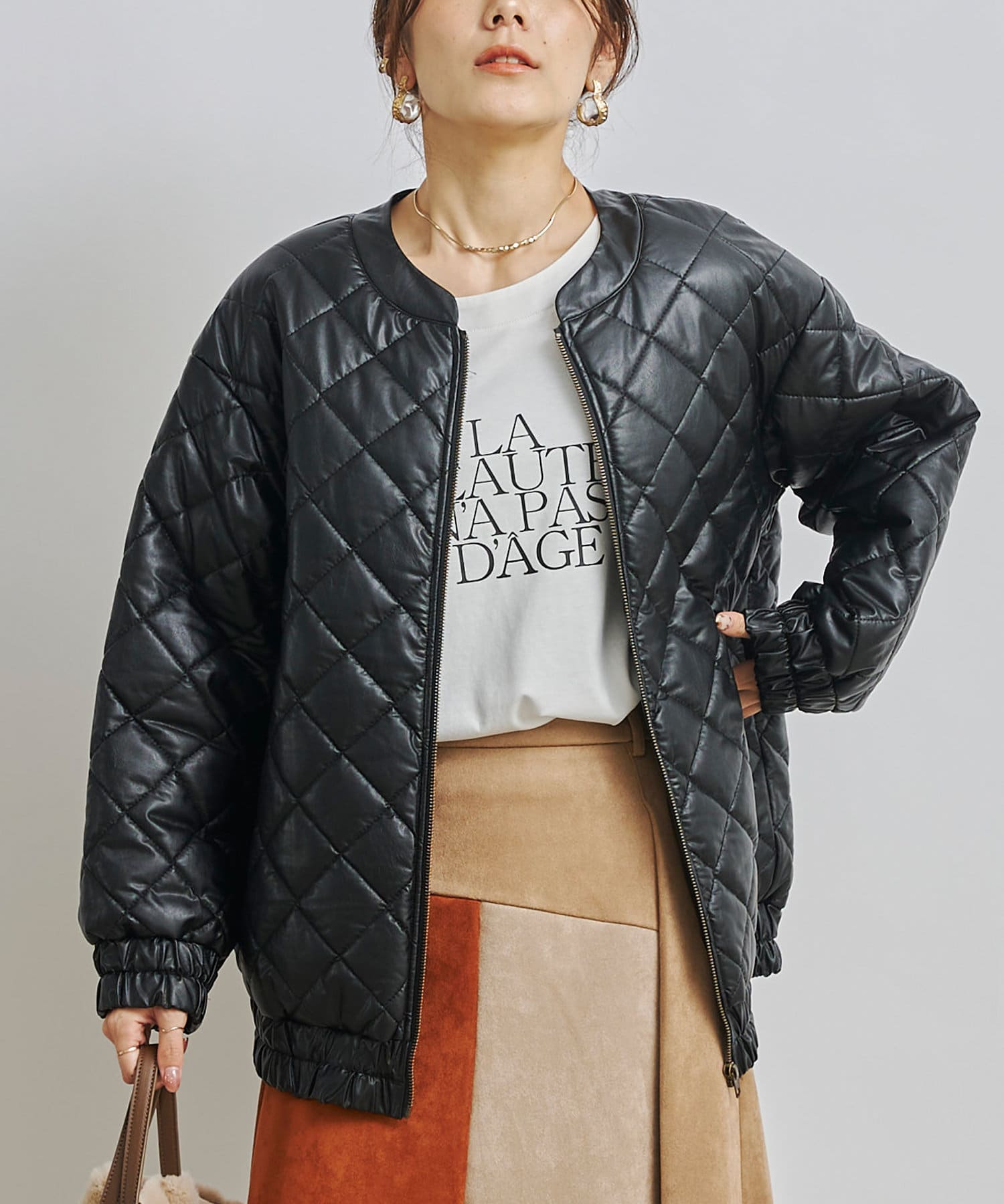 キルティング×フフェイクレザーのトレンドが詰まった1着。