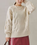 ・立体的で大きなケーブル編みがポイントのニットプルオーバー