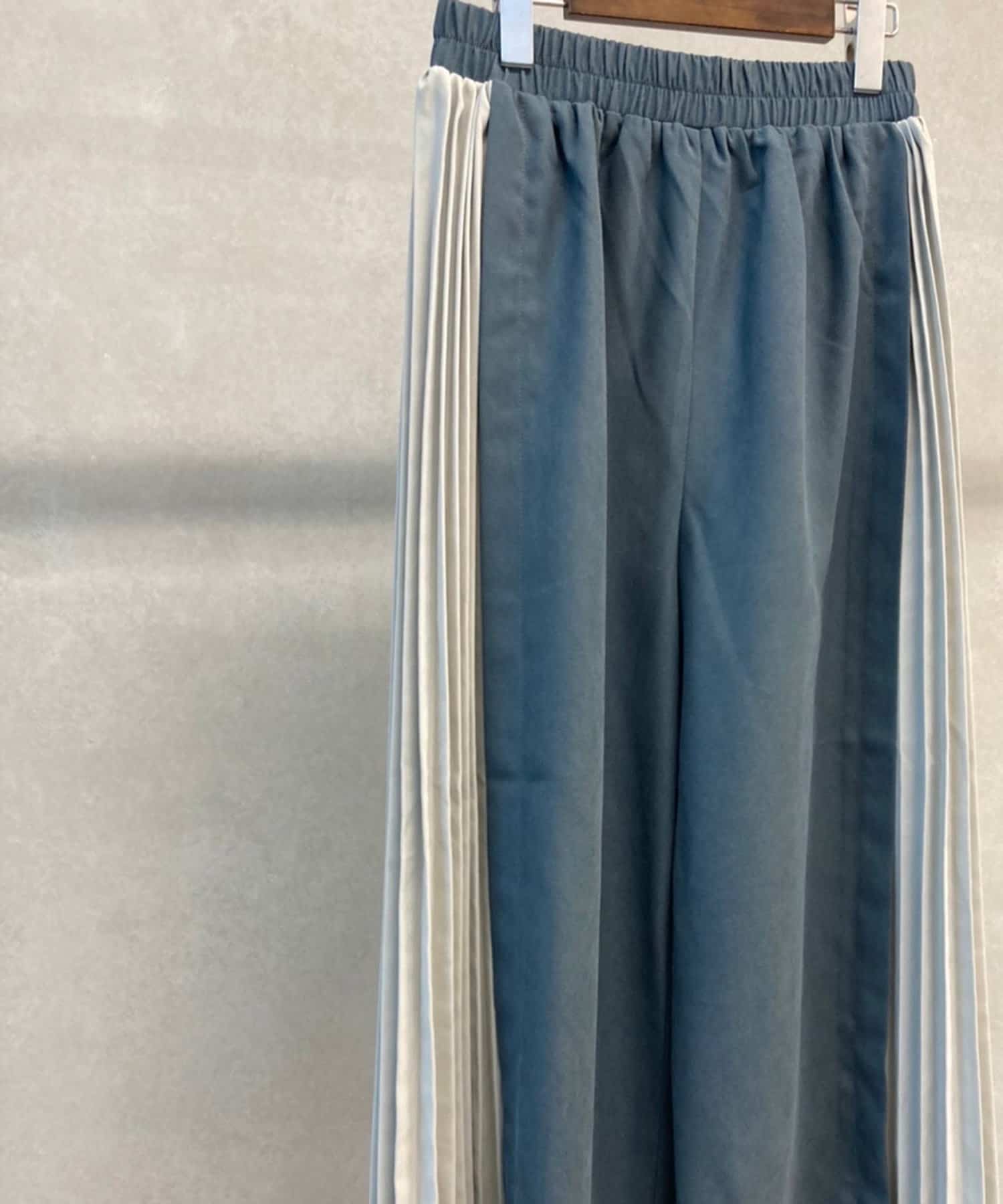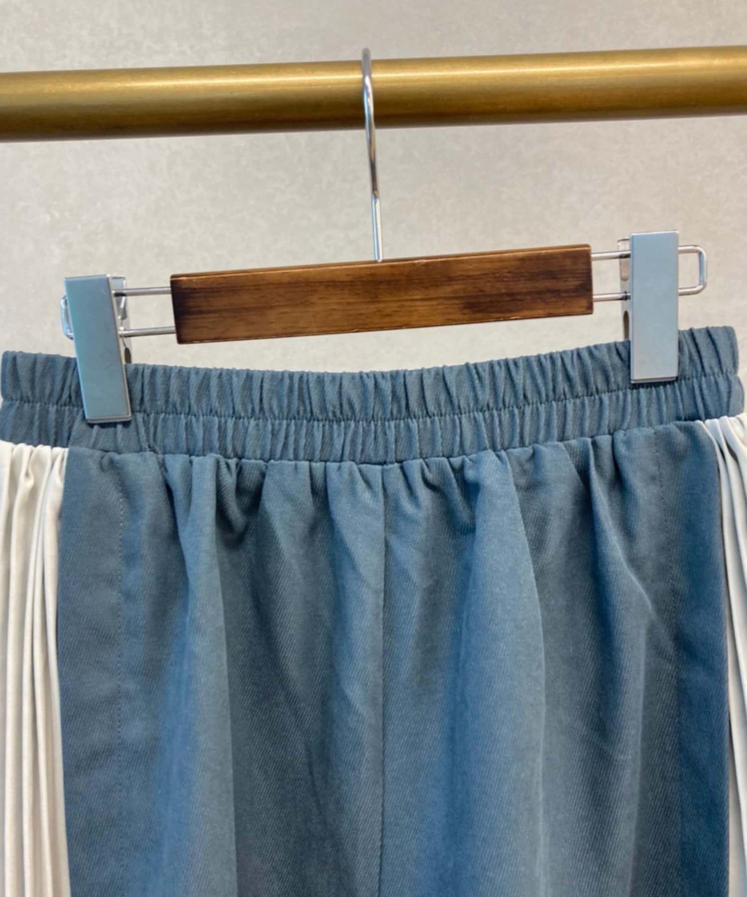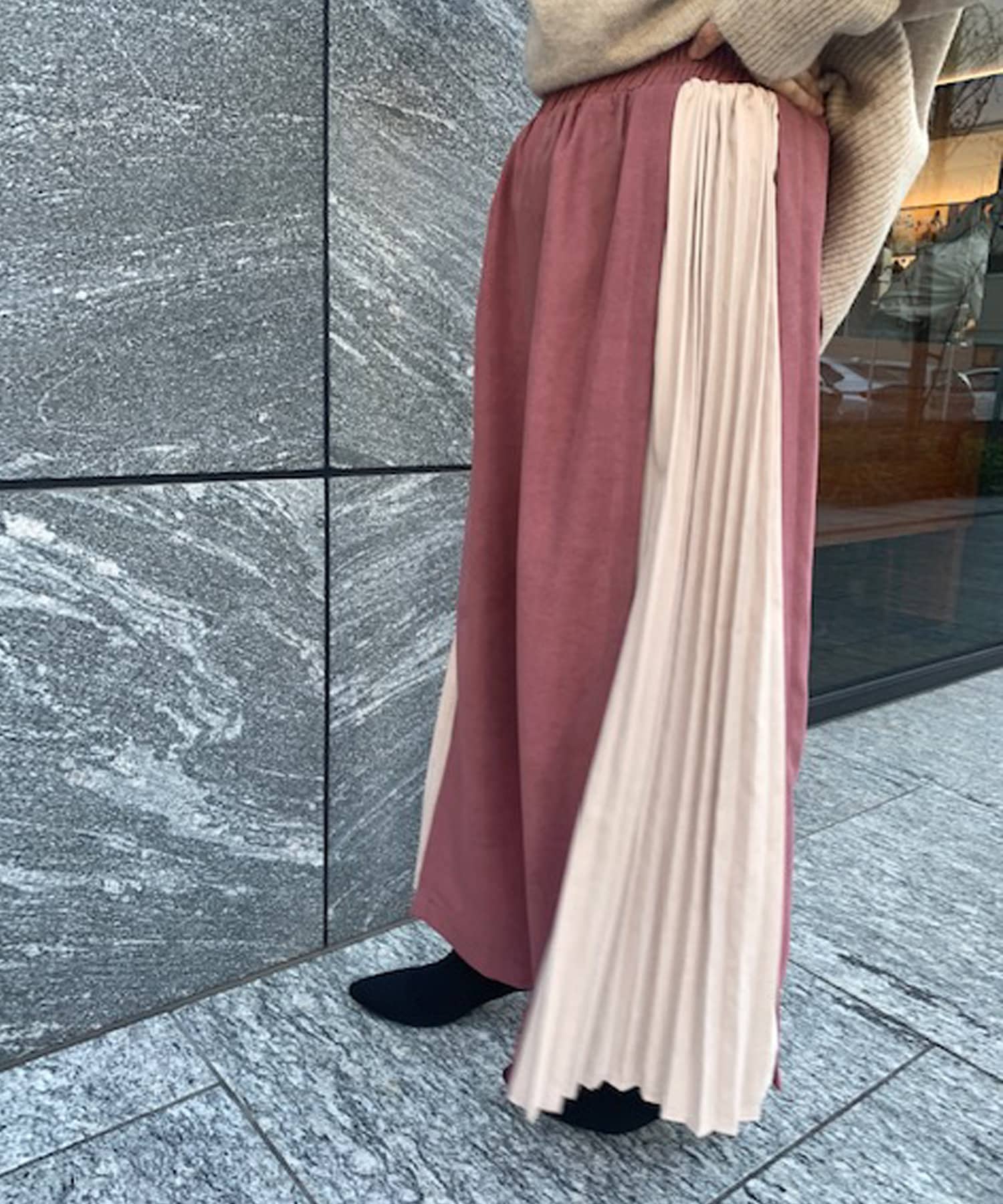 歩くたびに動きが出るサイドのプリーツが上品さと軽やかなニュアンスをプラス