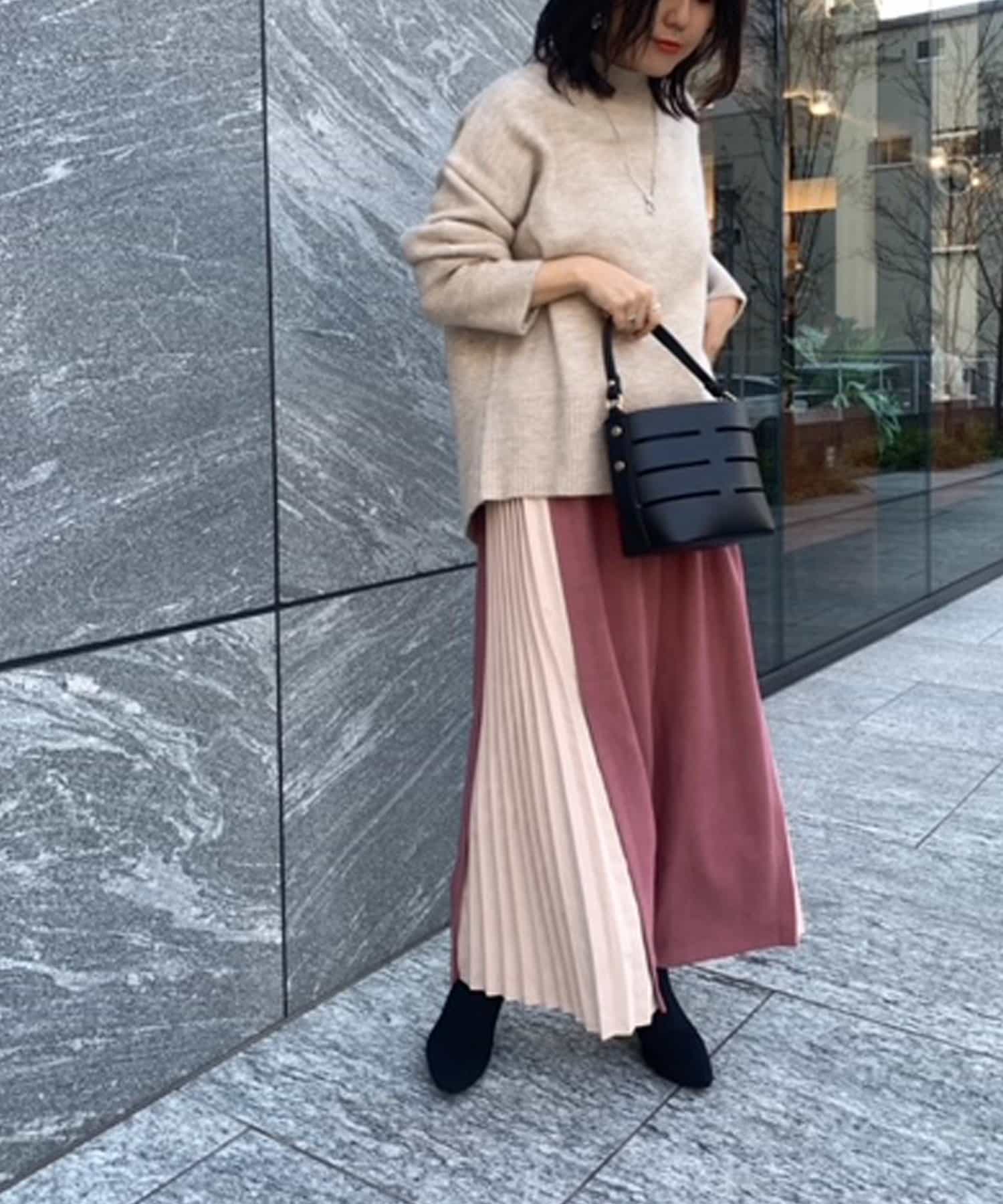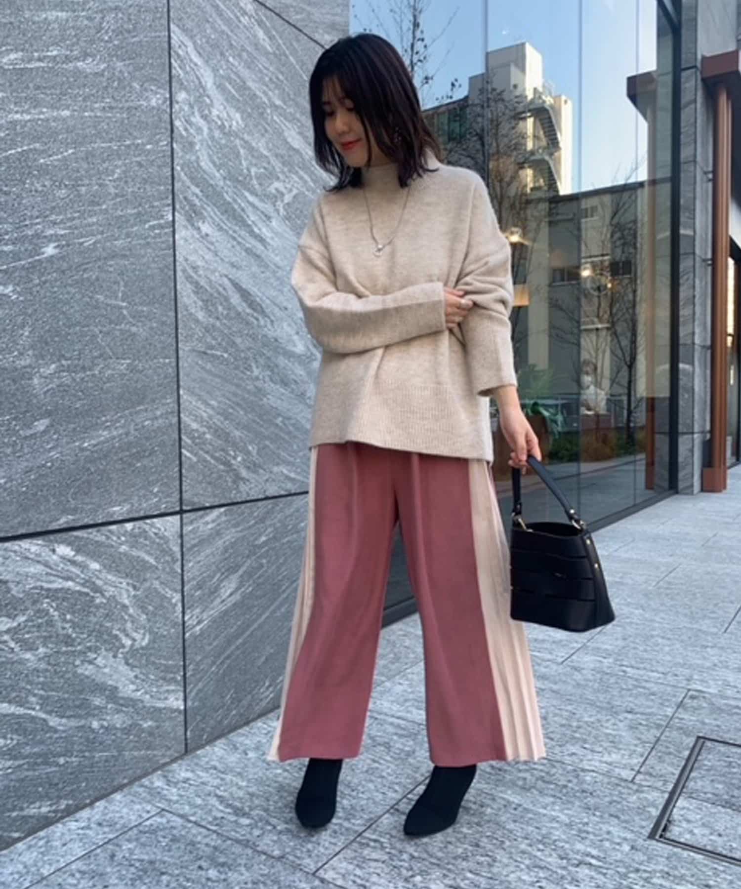 秋冬はニット、春先はブラウスやカジュアルなパーカーなども好相性です。