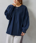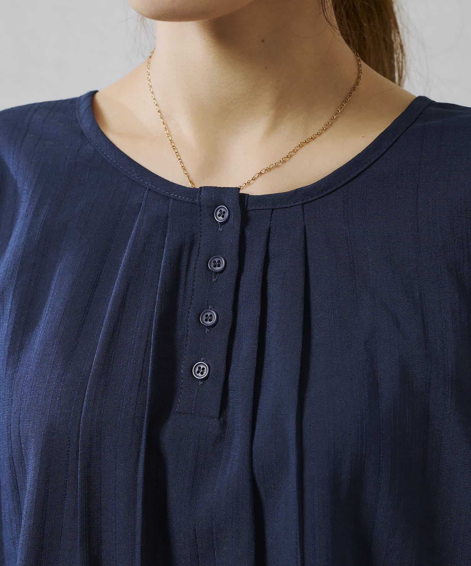 ・首元は開きすぎないクルーネックデザイン。上品な印象で着用頂けます。