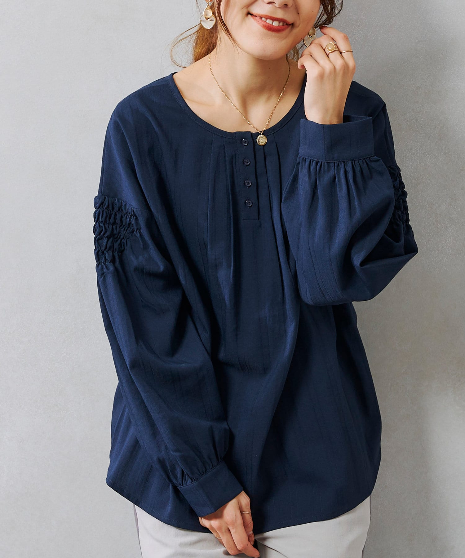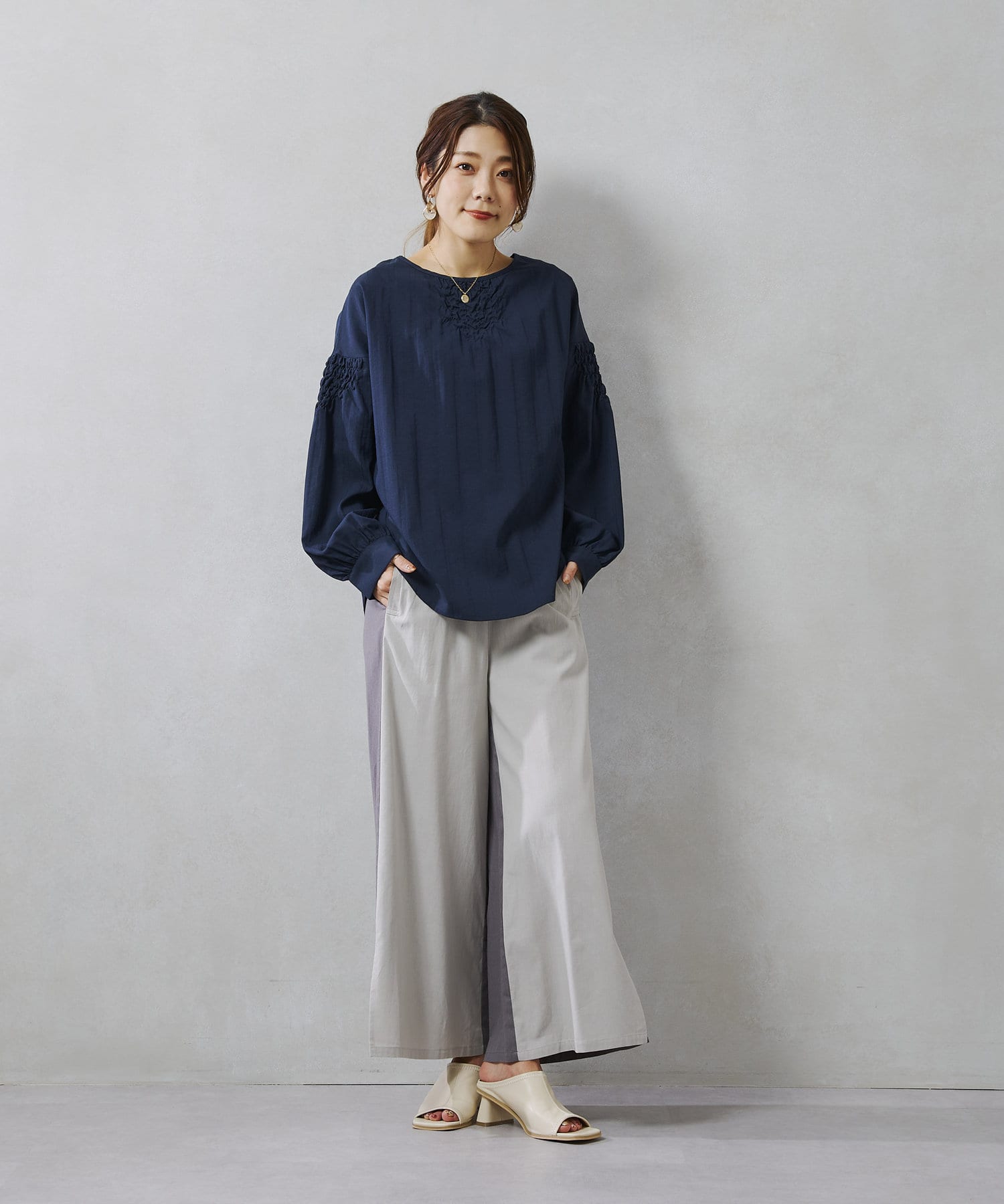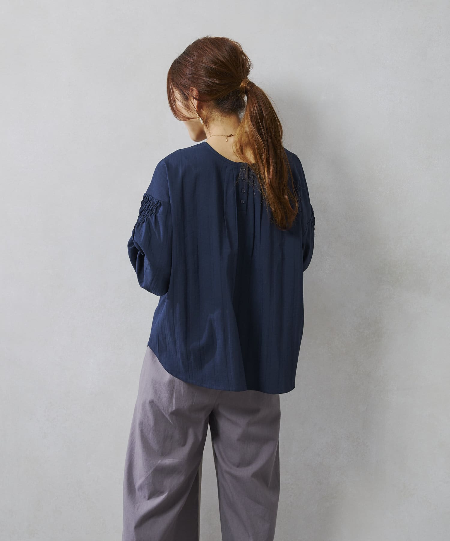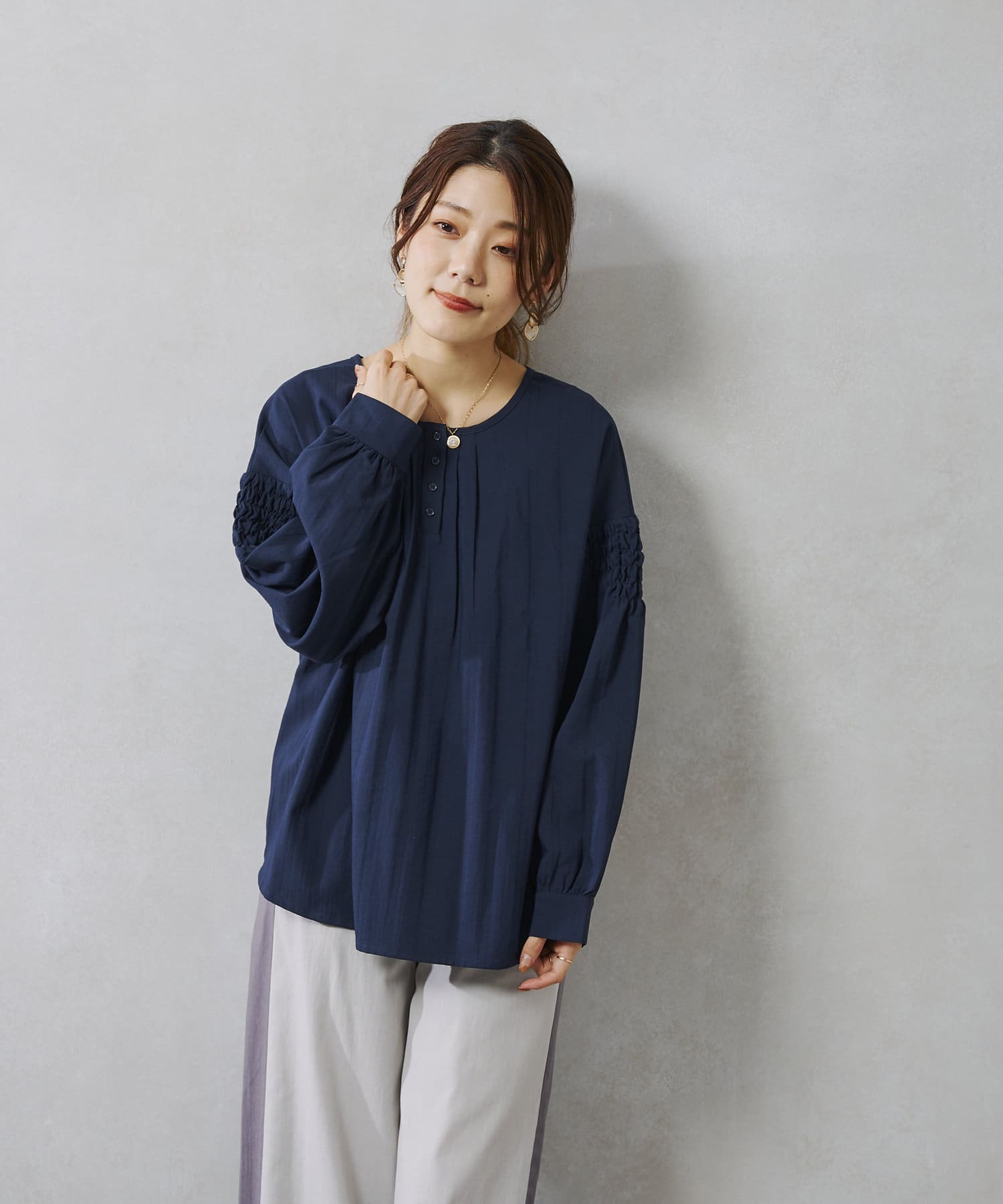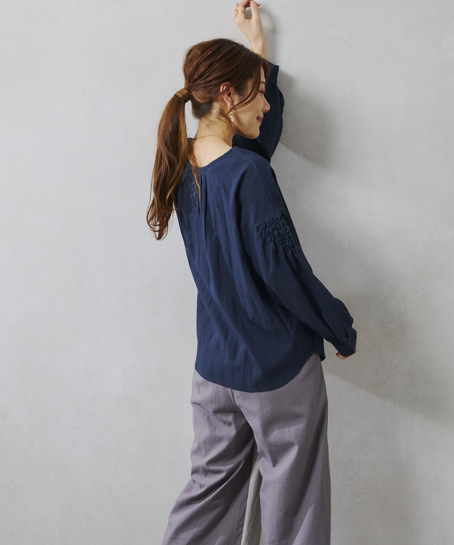 ・袖は少しボリューム感があり、シャーリングになったデザイン。