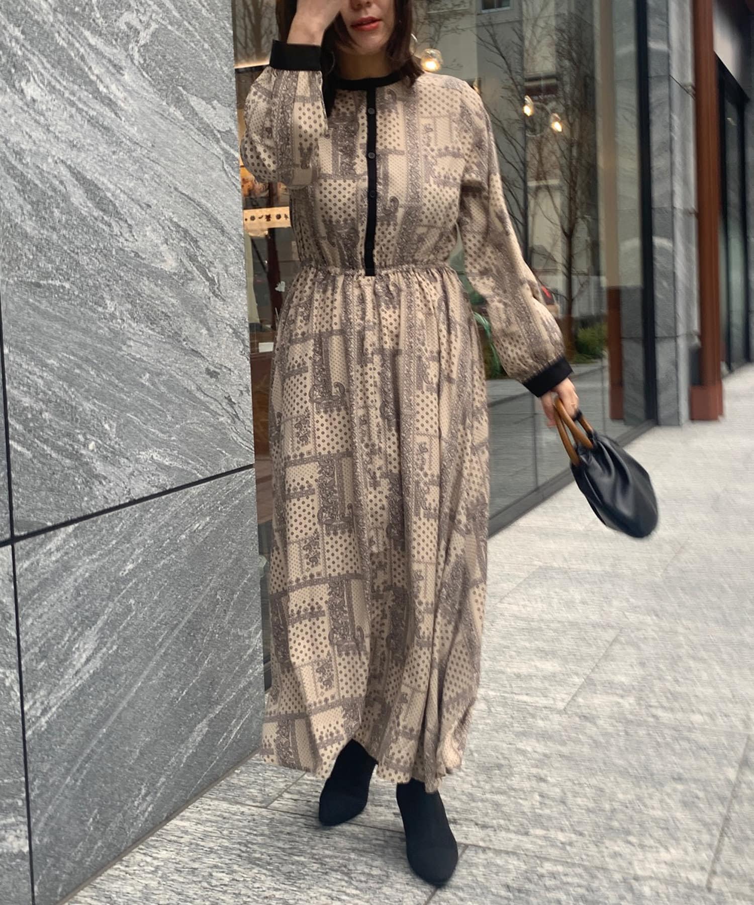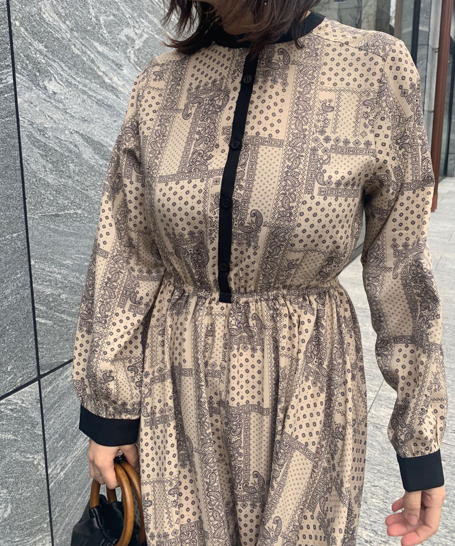ペイズリー柄配色ワンピース
