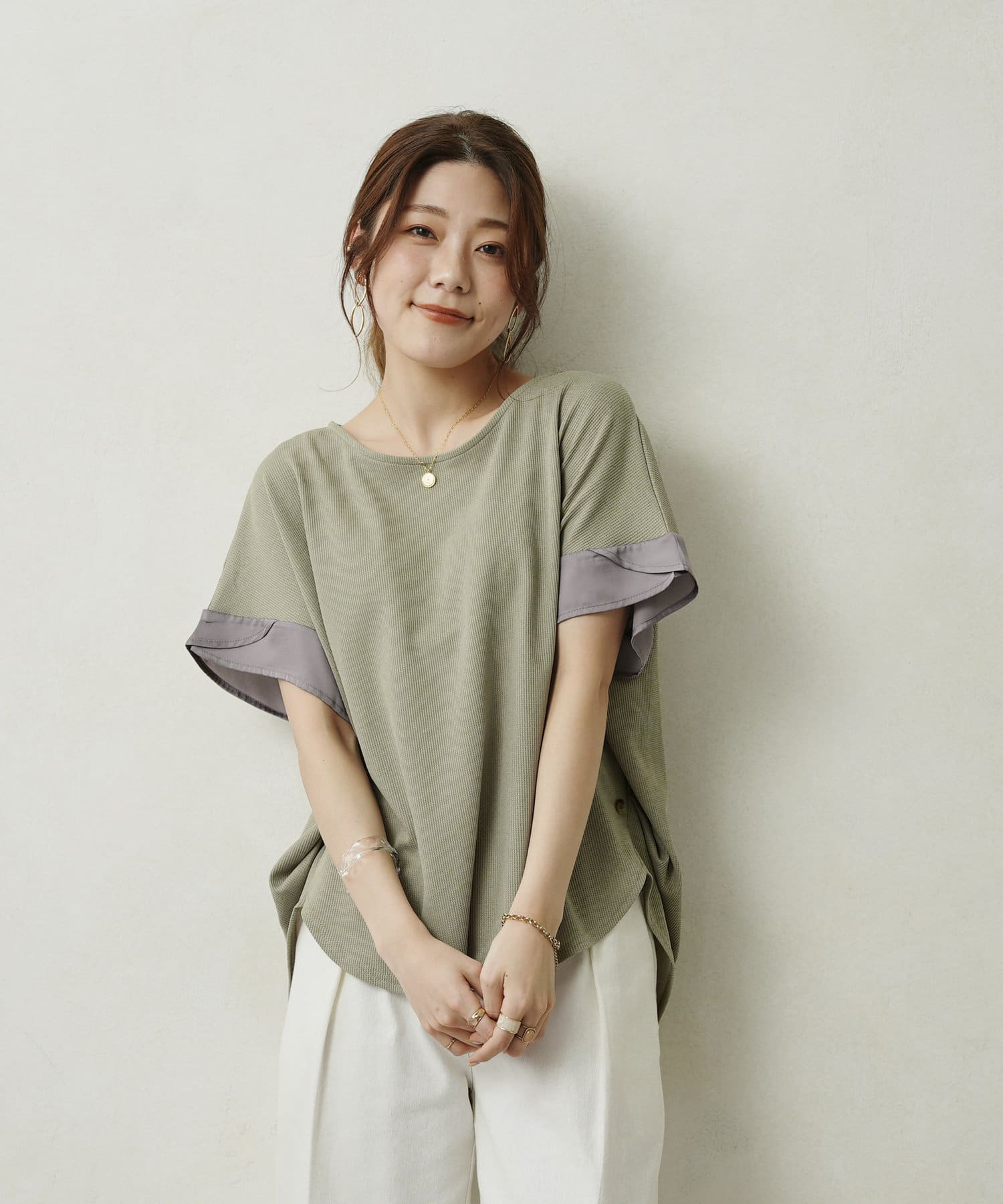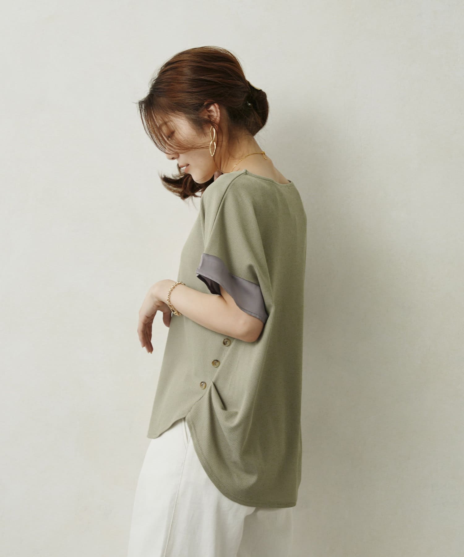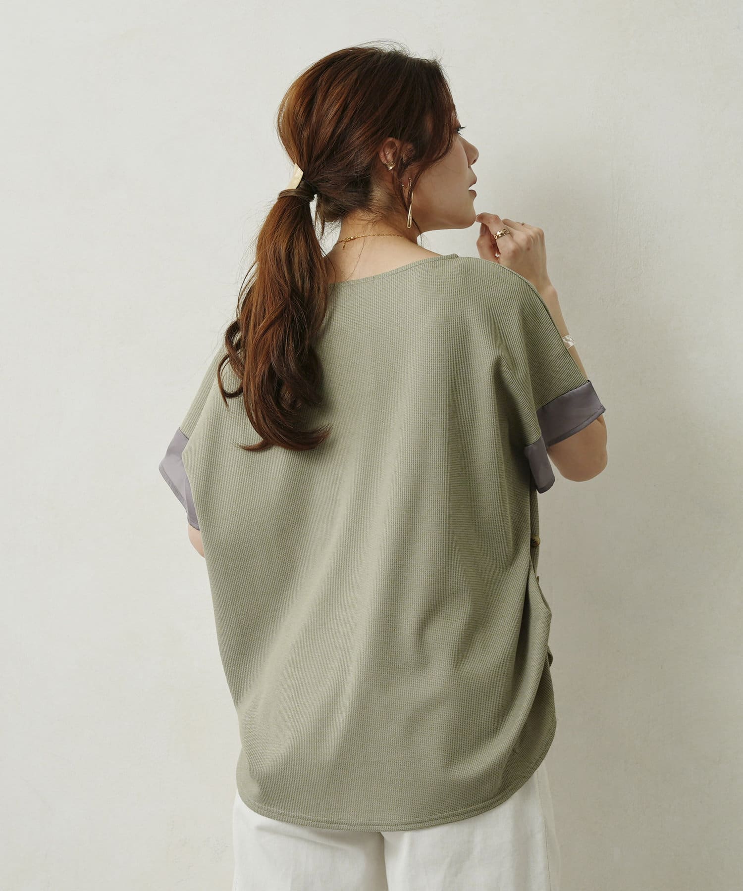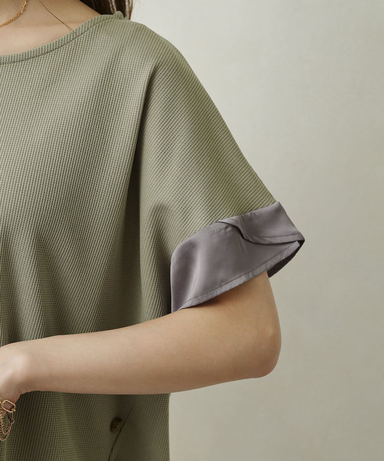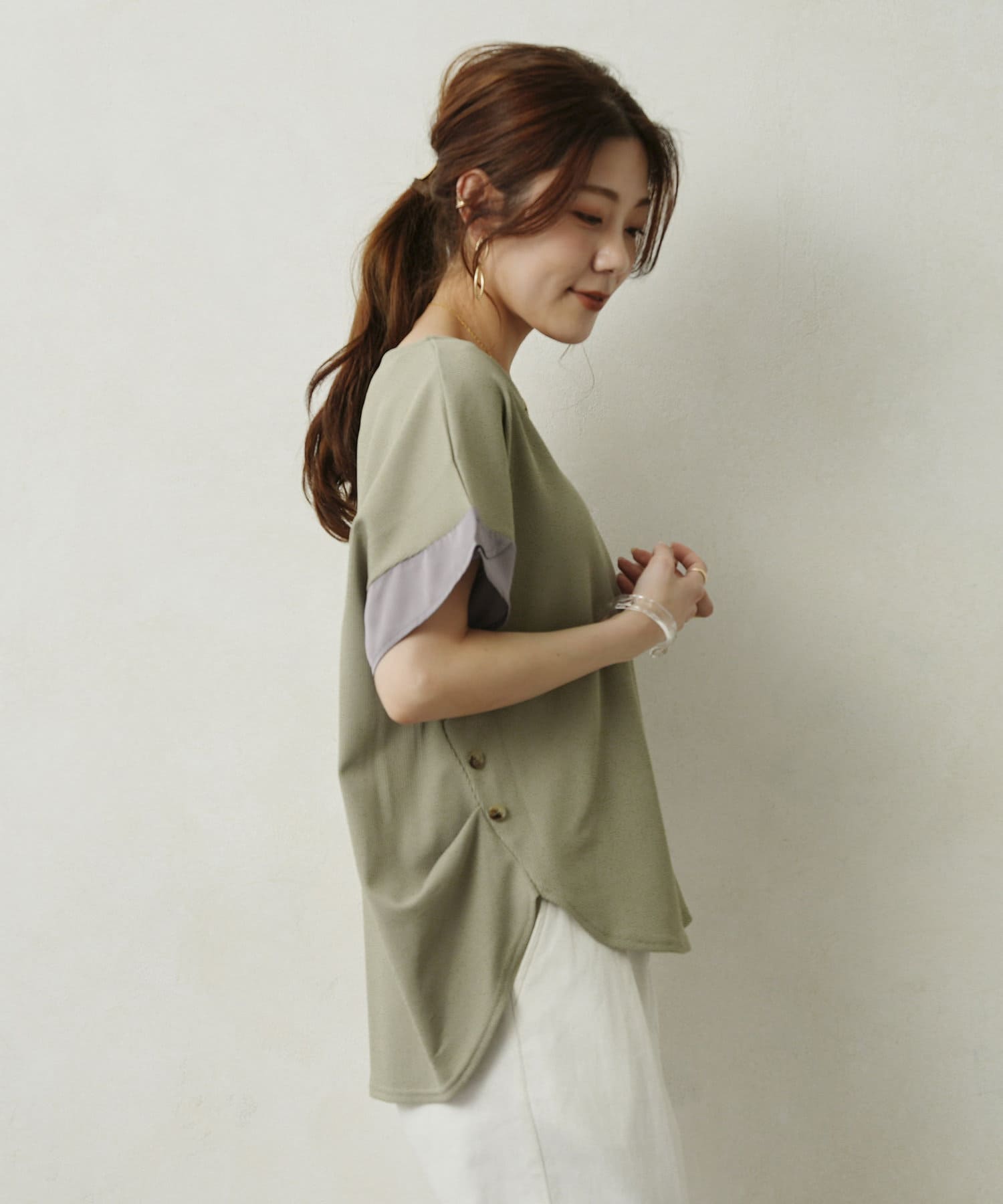 着回し抜群!袖サテンのサイドボタンが程よいアクセントを作ってくれるトップス