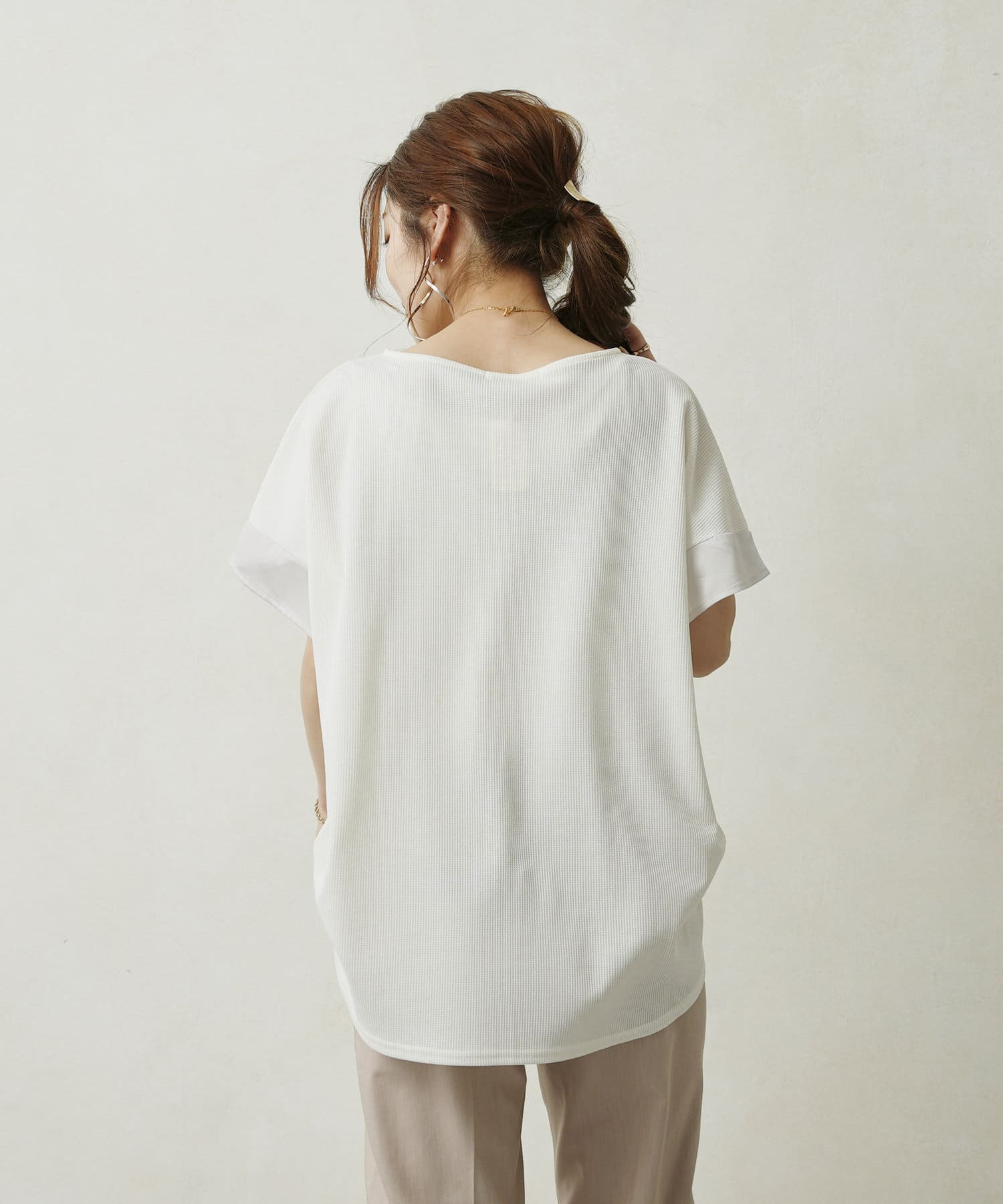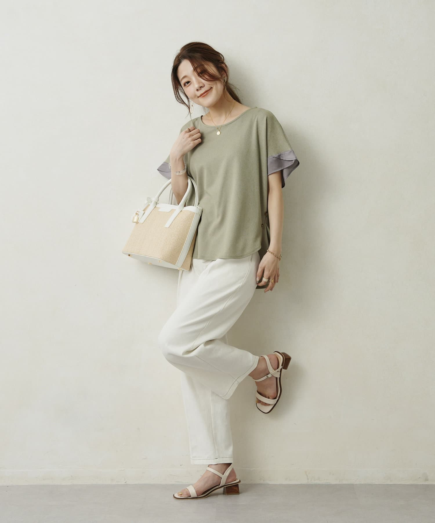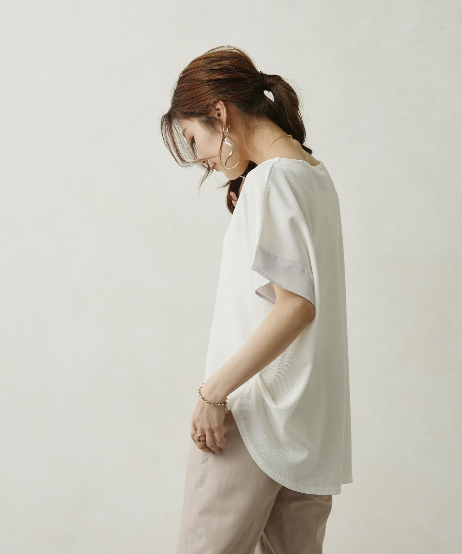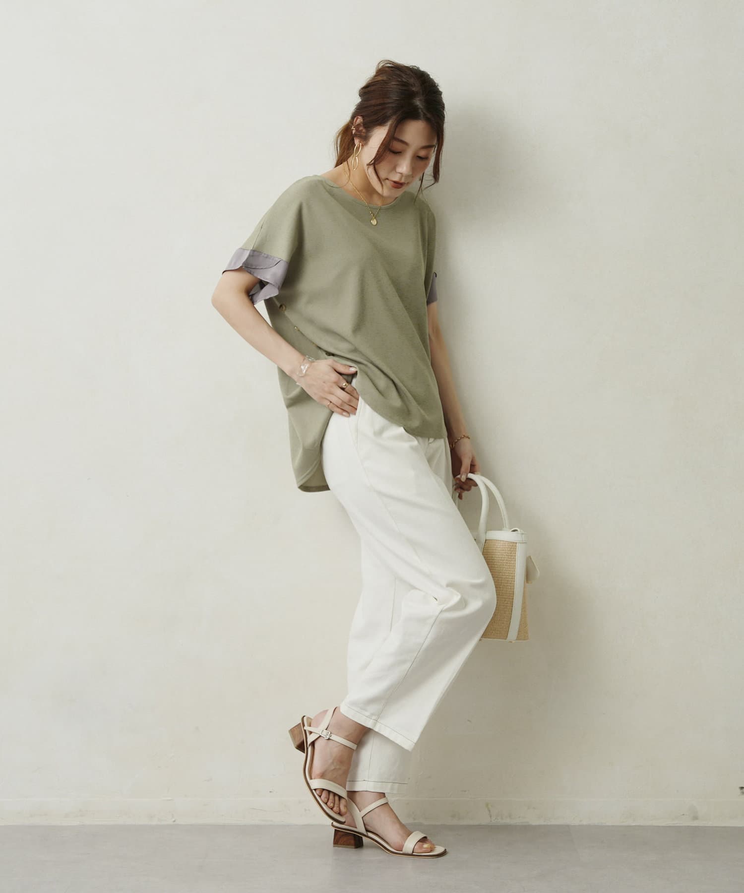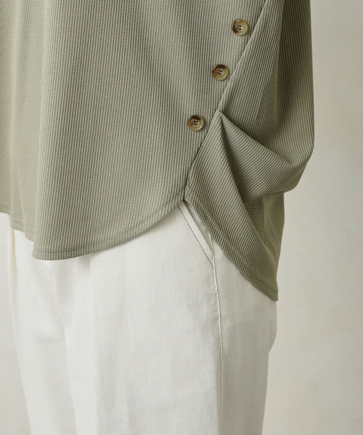 着回し抜群!袖サテンのサイドボタンが程よいアクセントを作ってくれるトップス