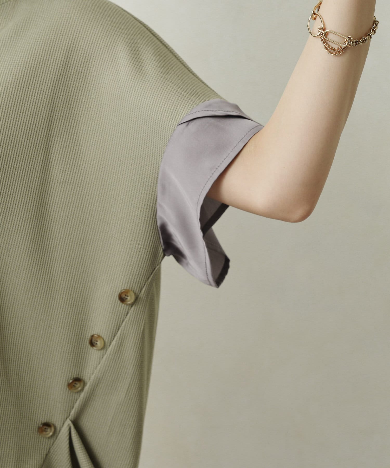 袖サテンBACKコクーンサイドボタンプルオーバー