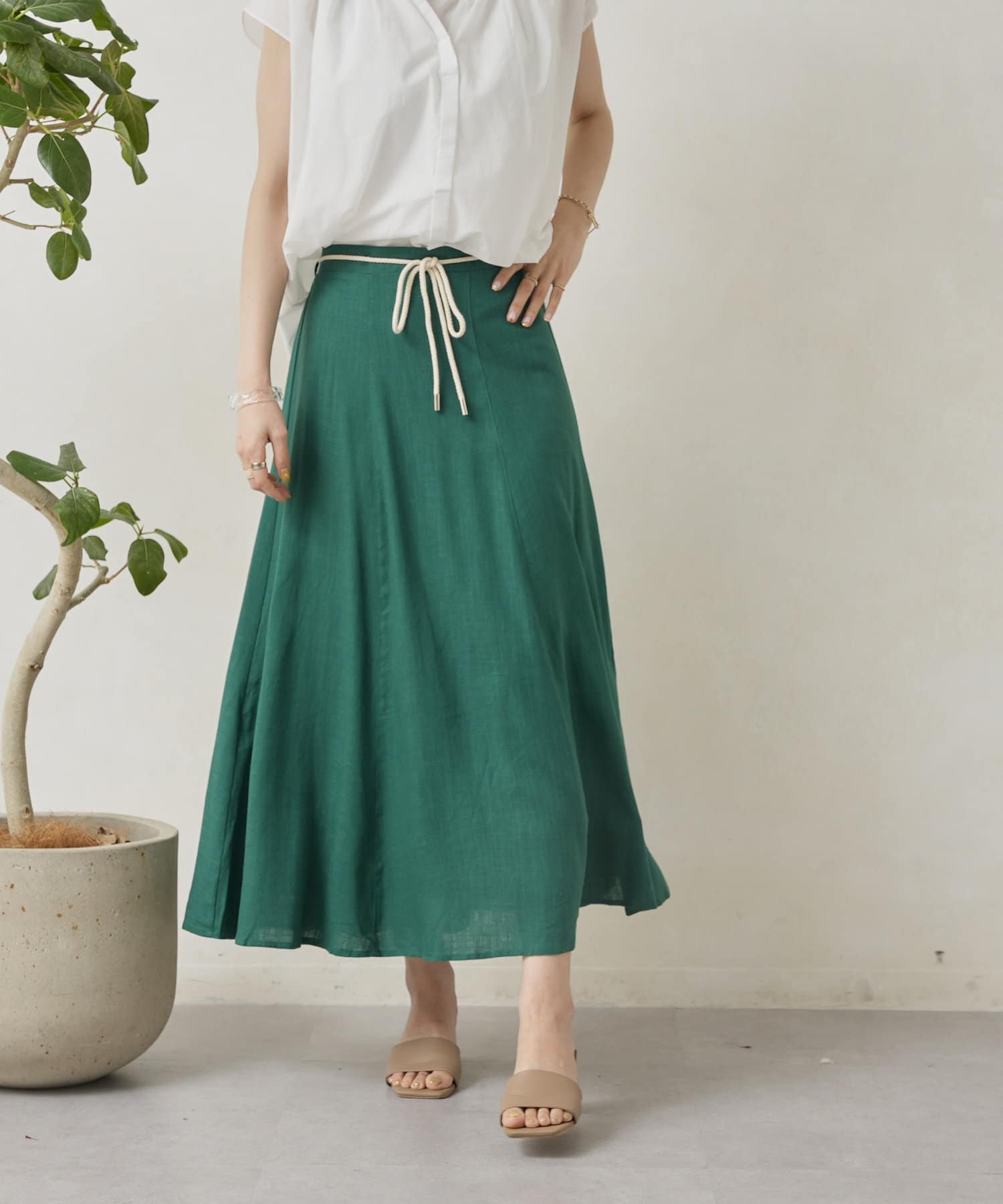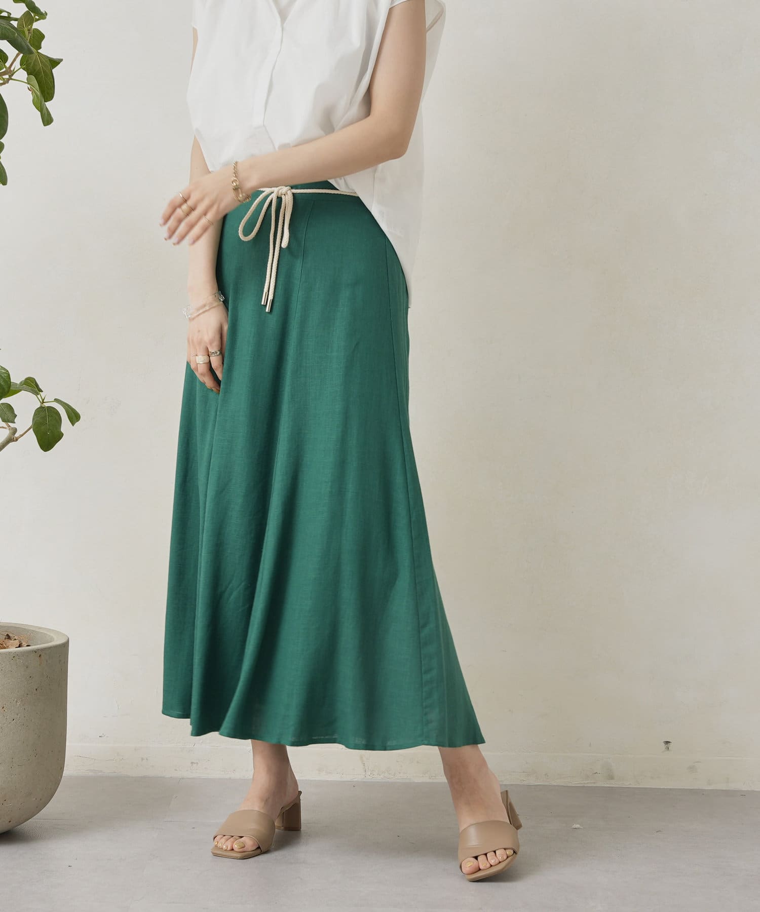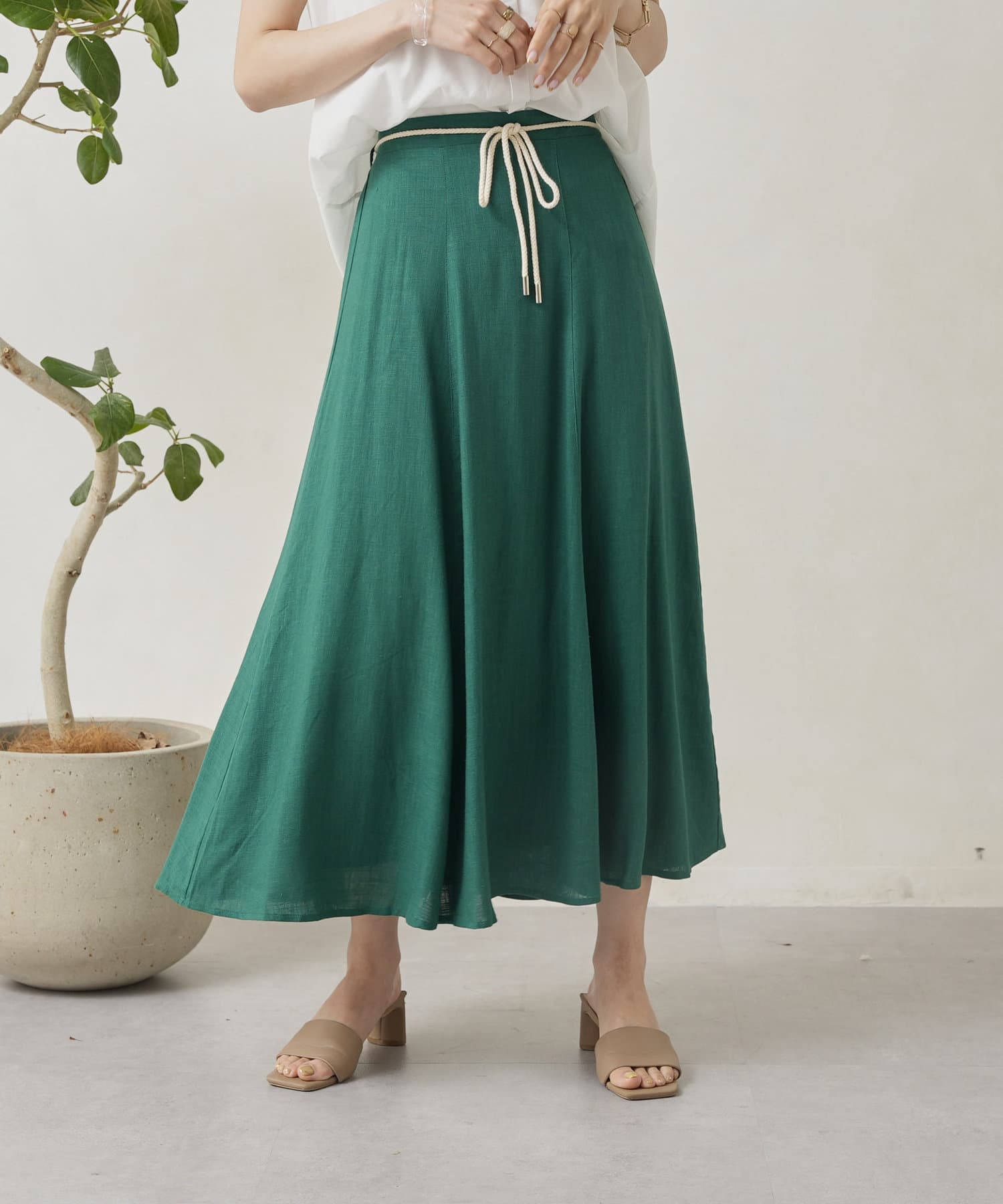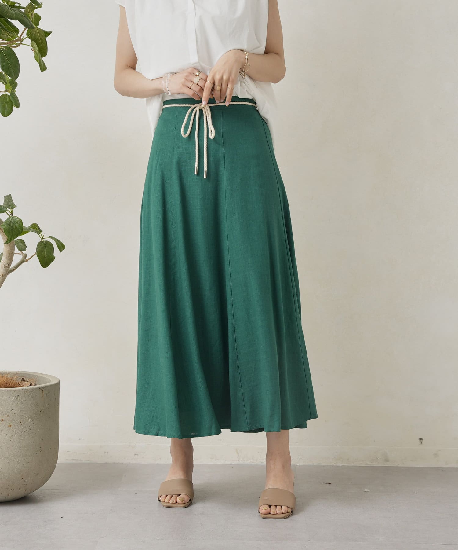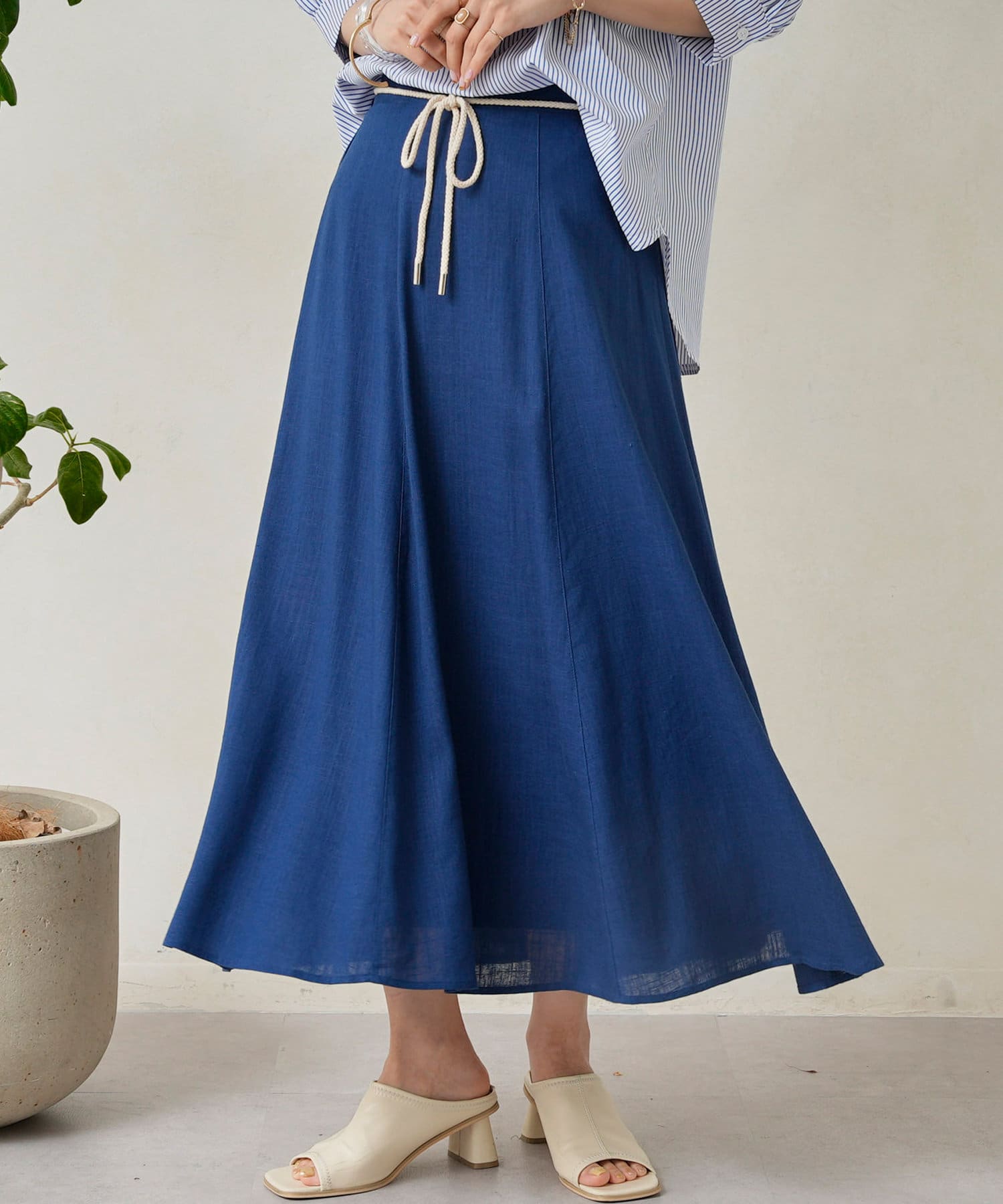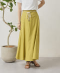 ロープベルト付カラーリネンフレアスカート