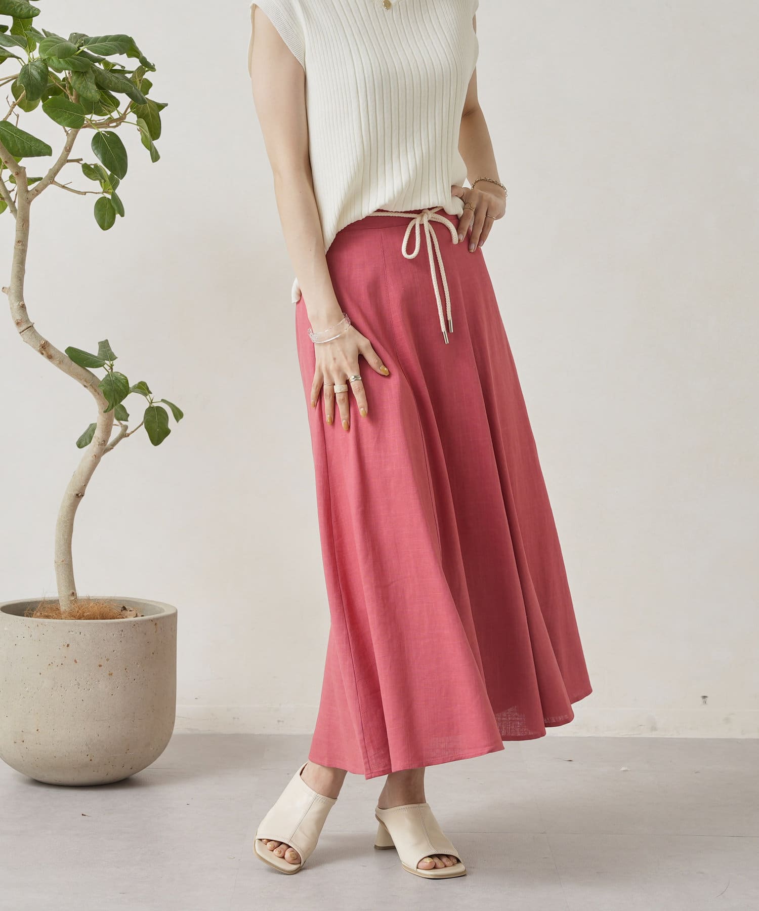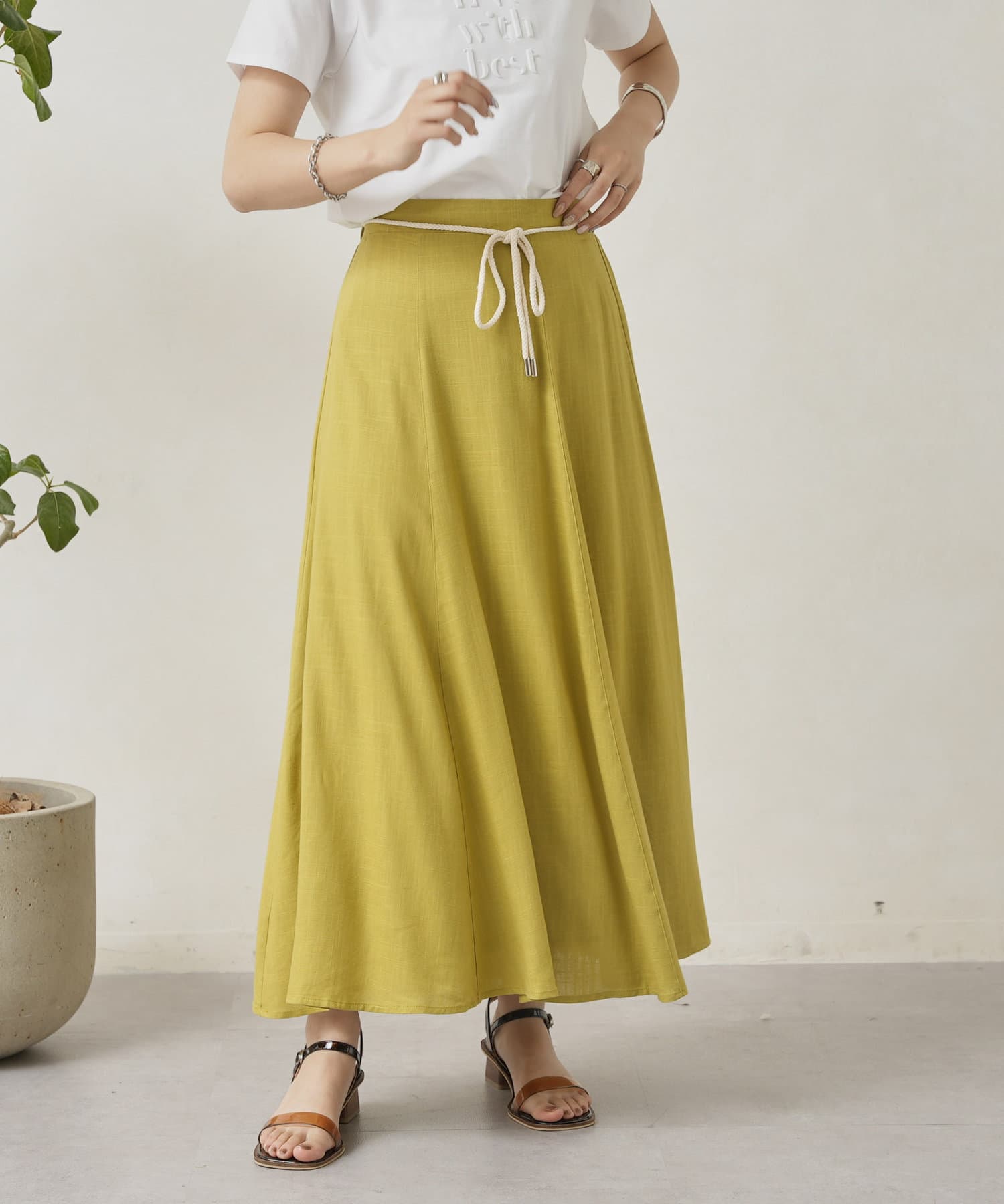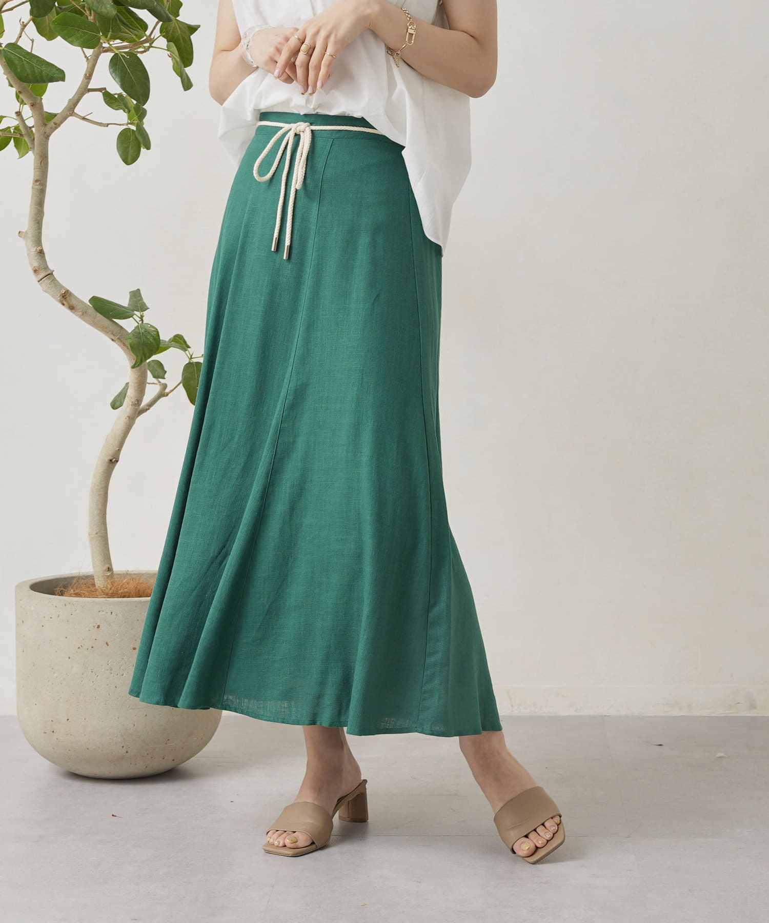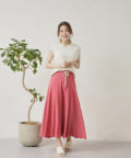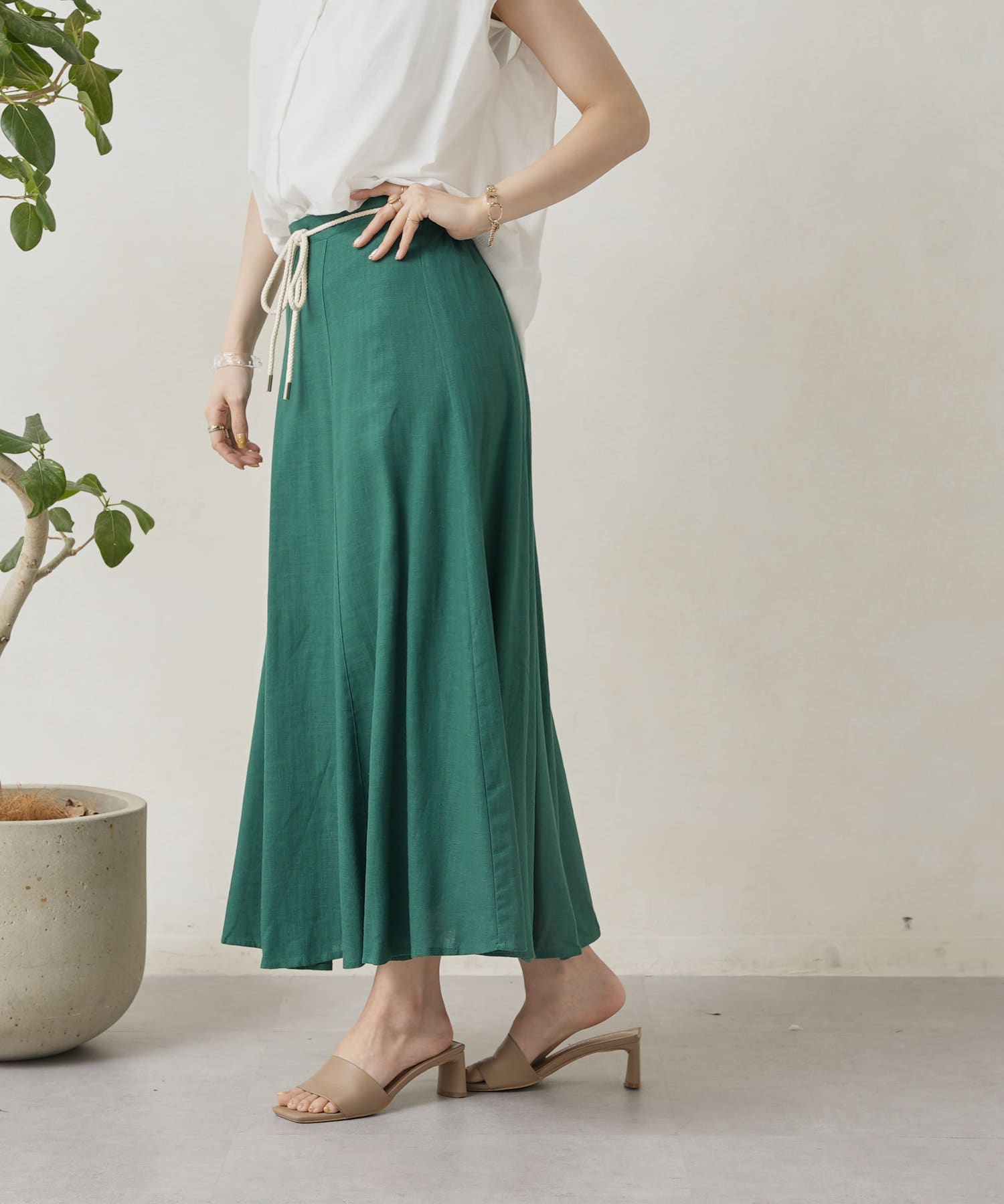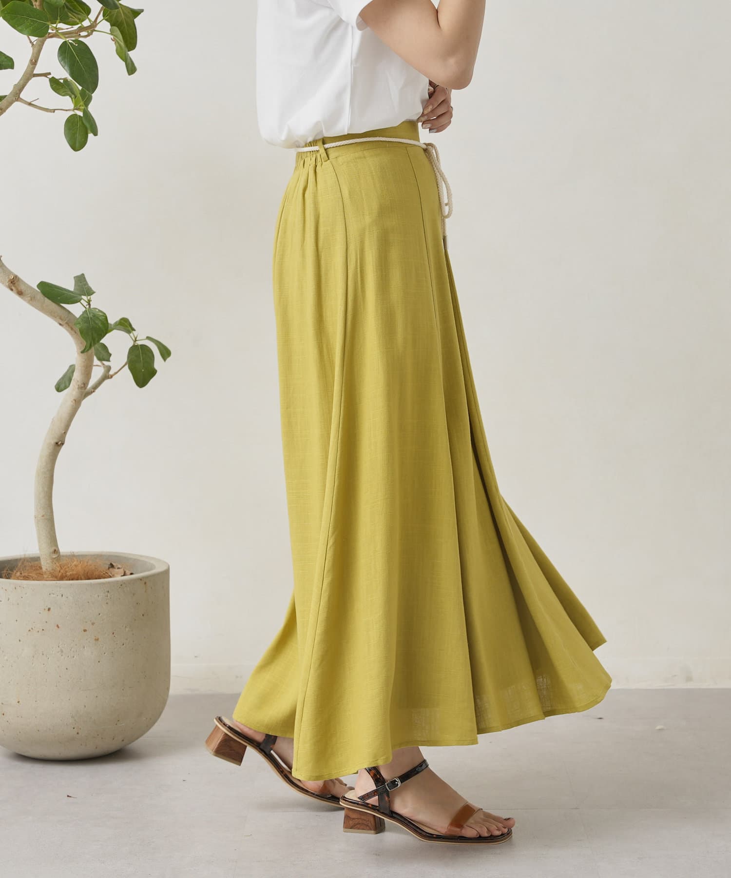 ロープベルト付カラーリネンフレアスカート