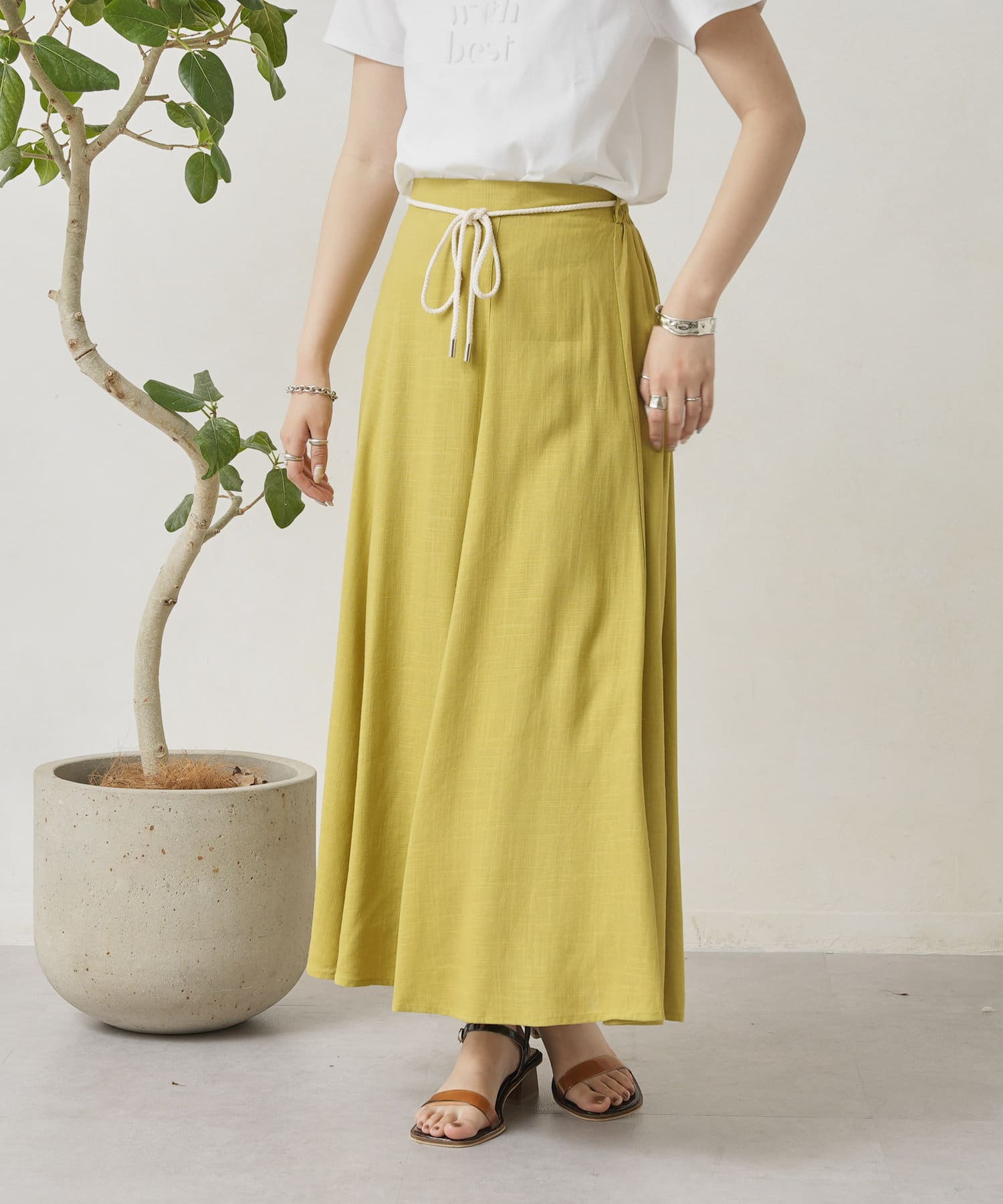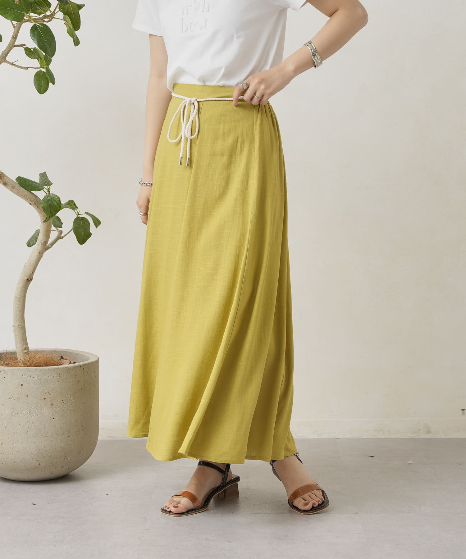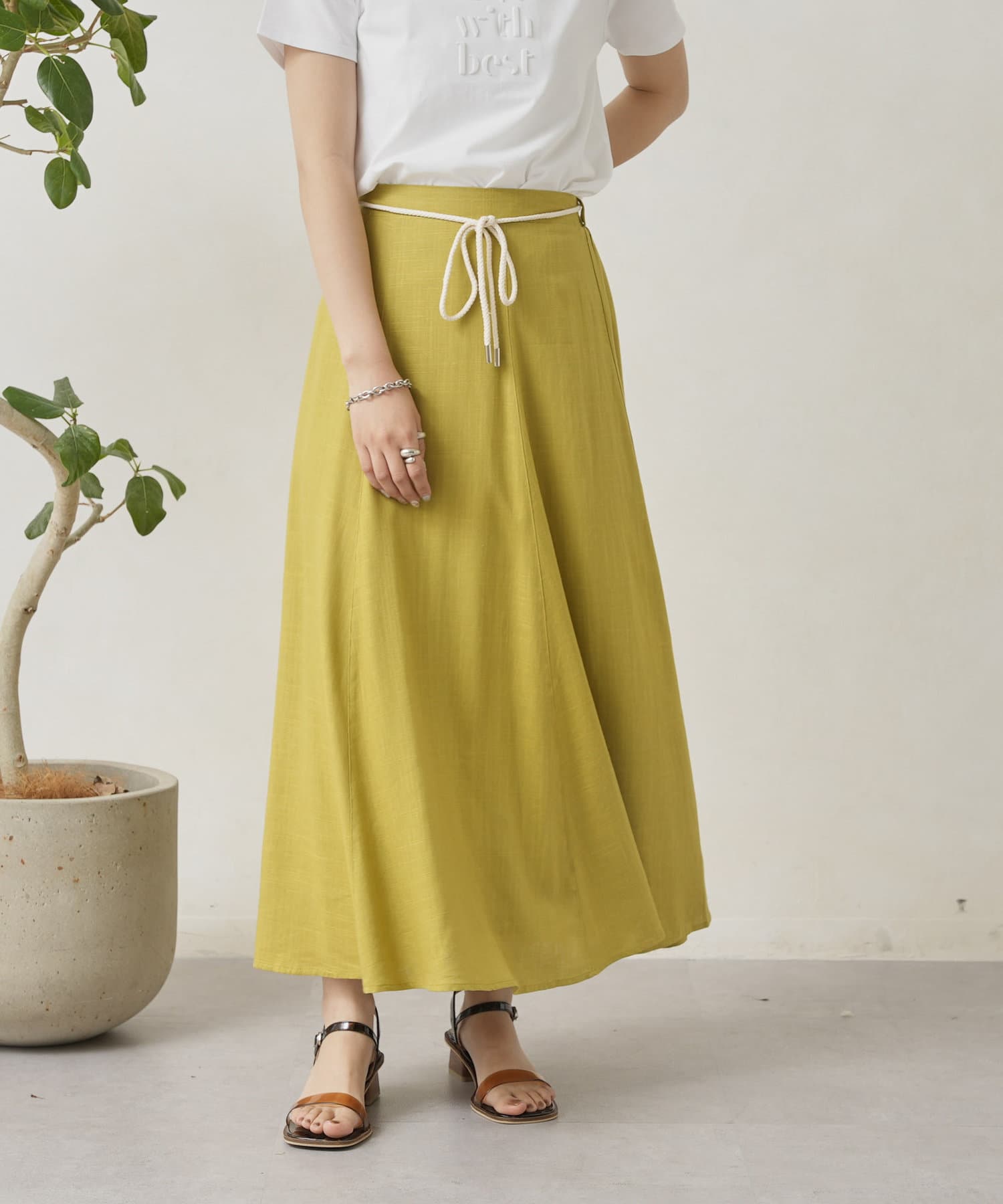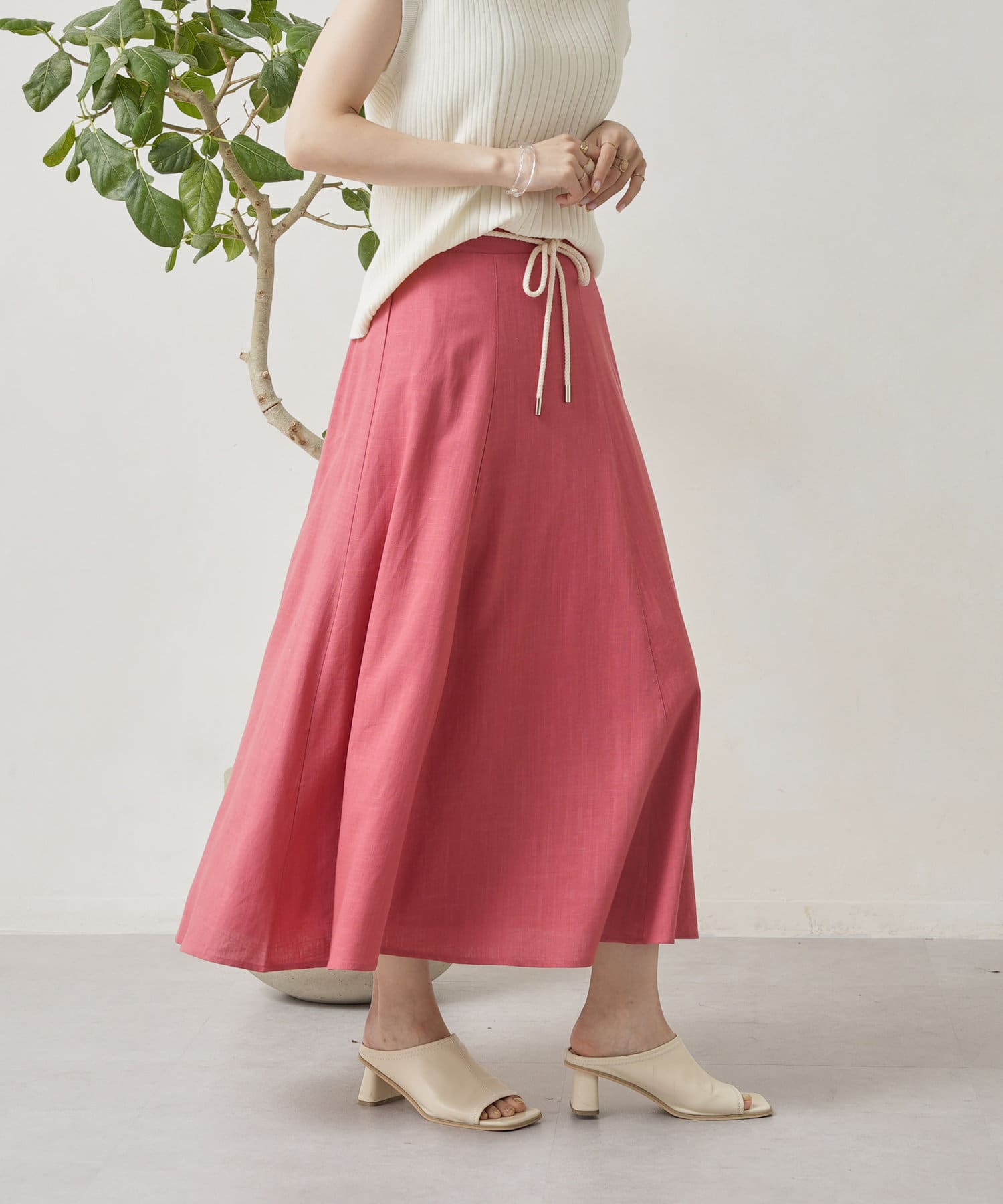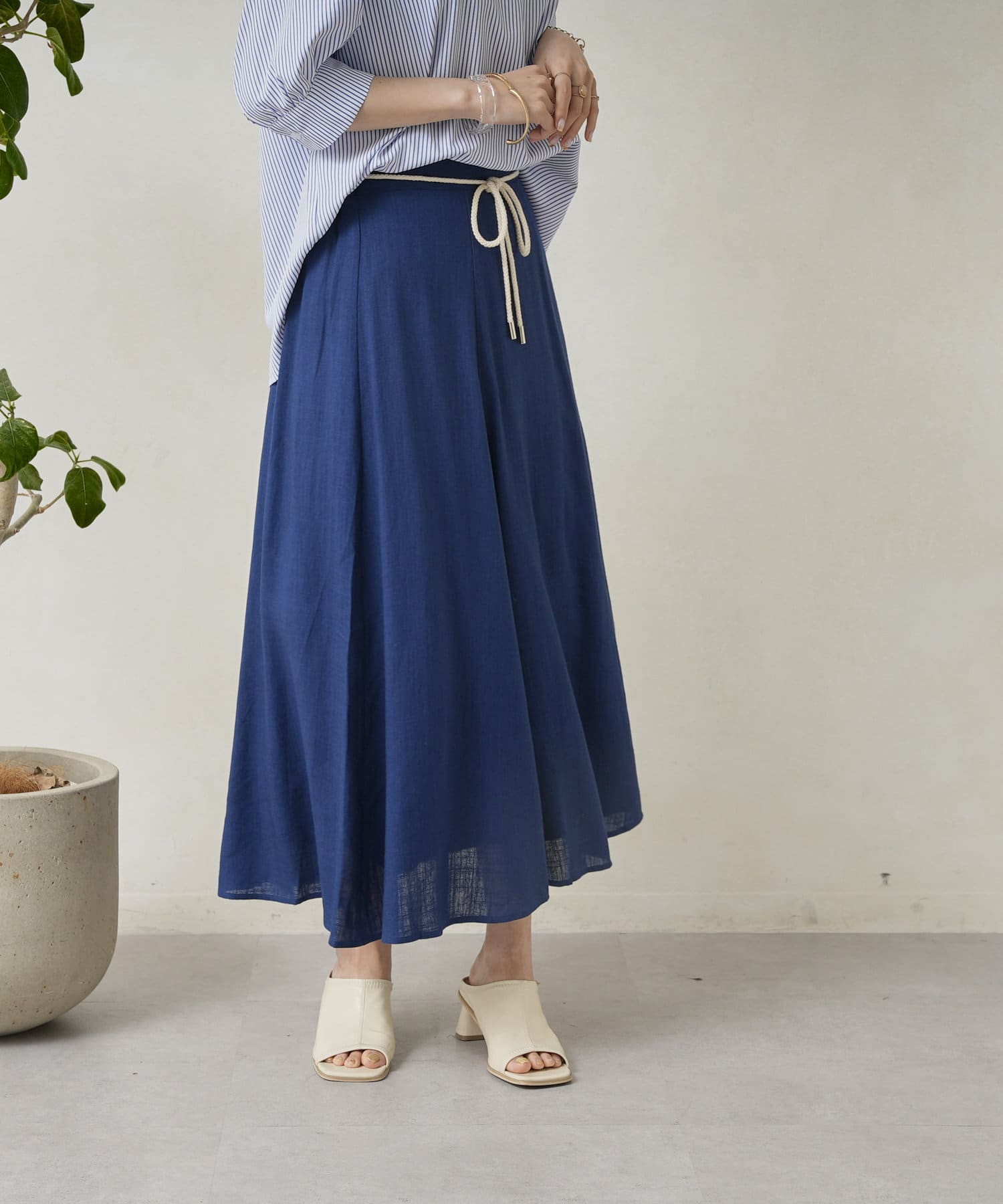 ロープベルト付カラーリネンフレアスカート