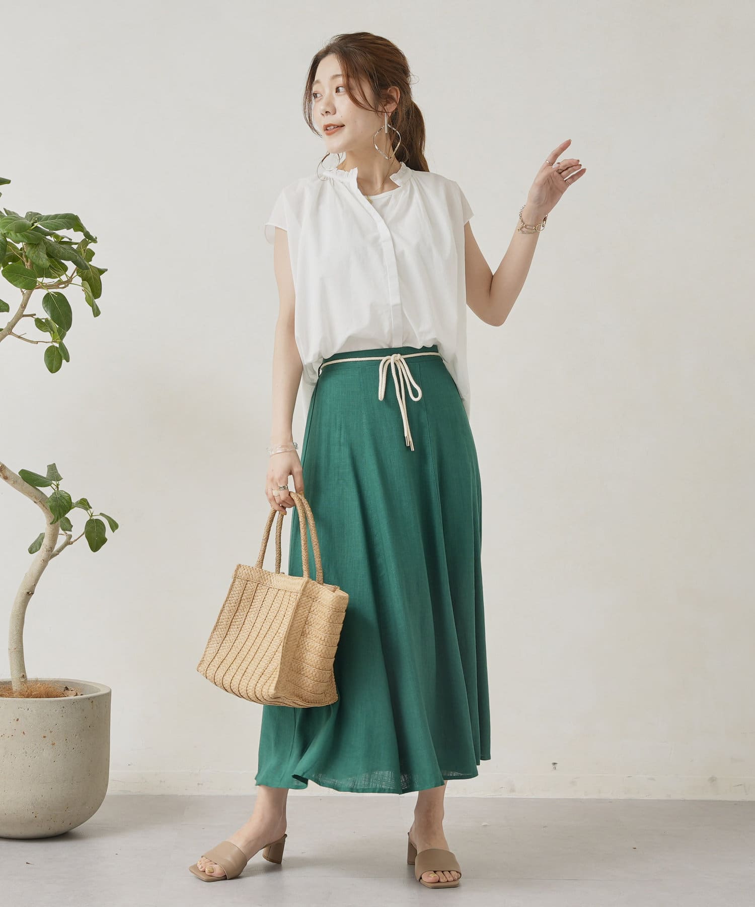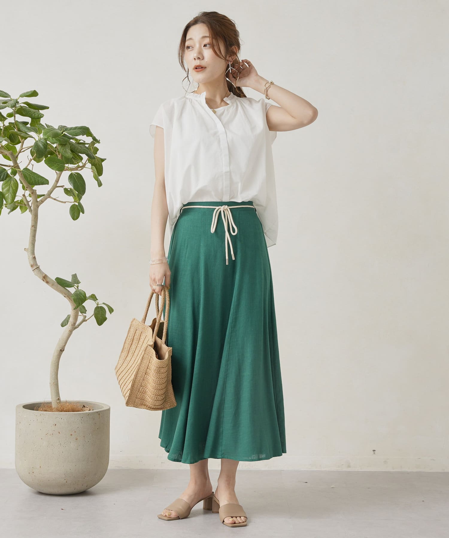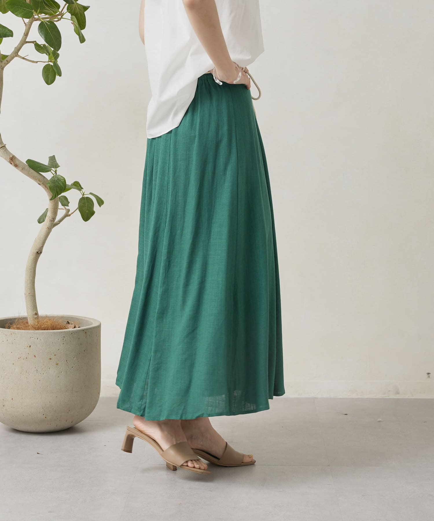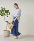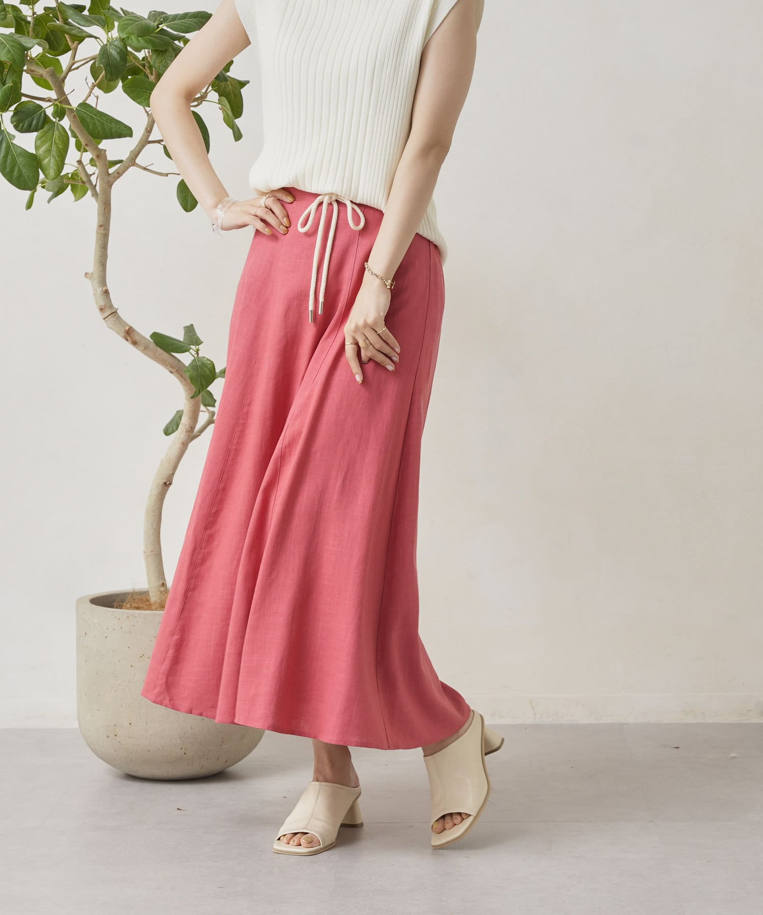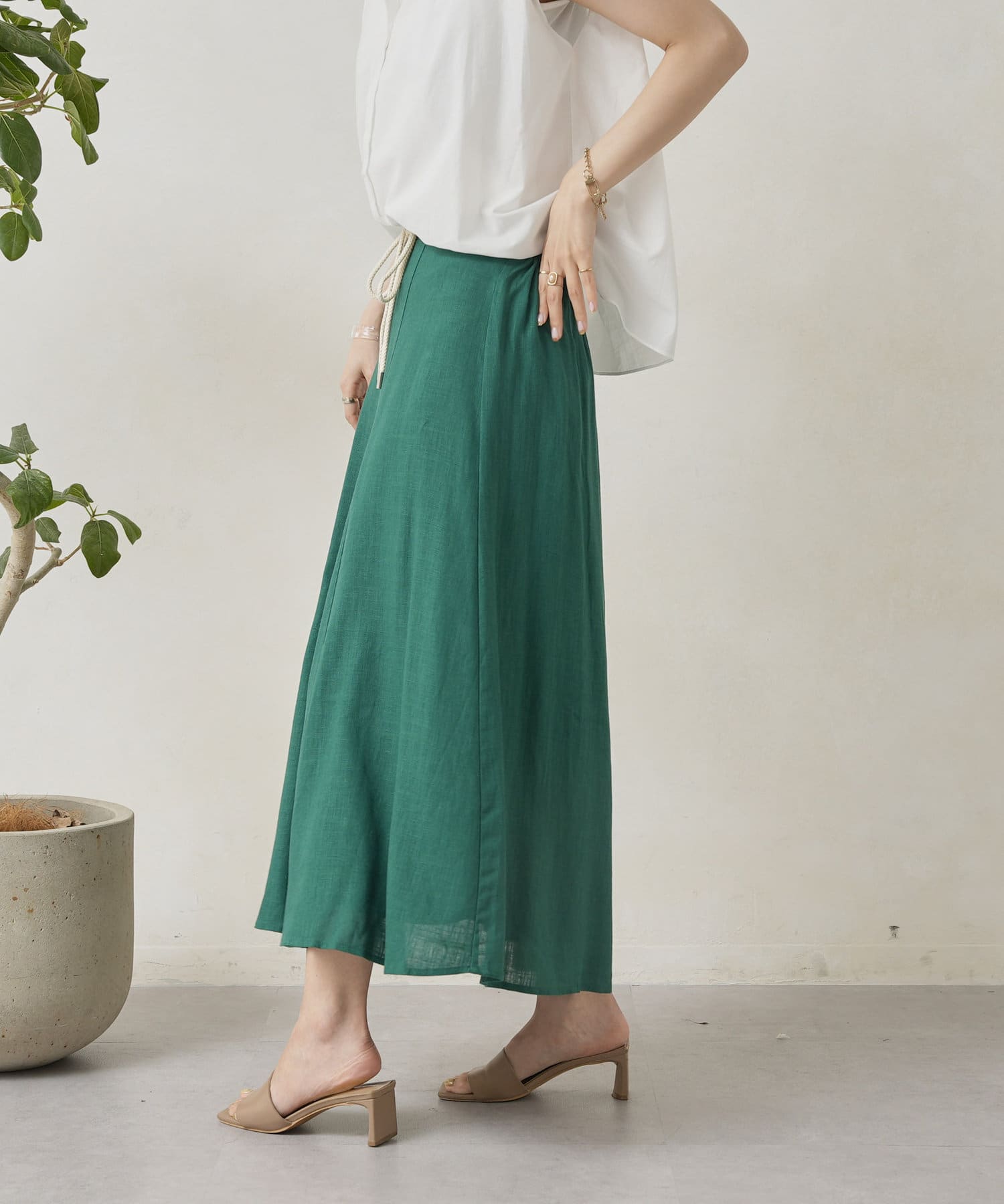 ロープベルト付カラーリネンフレアスカート