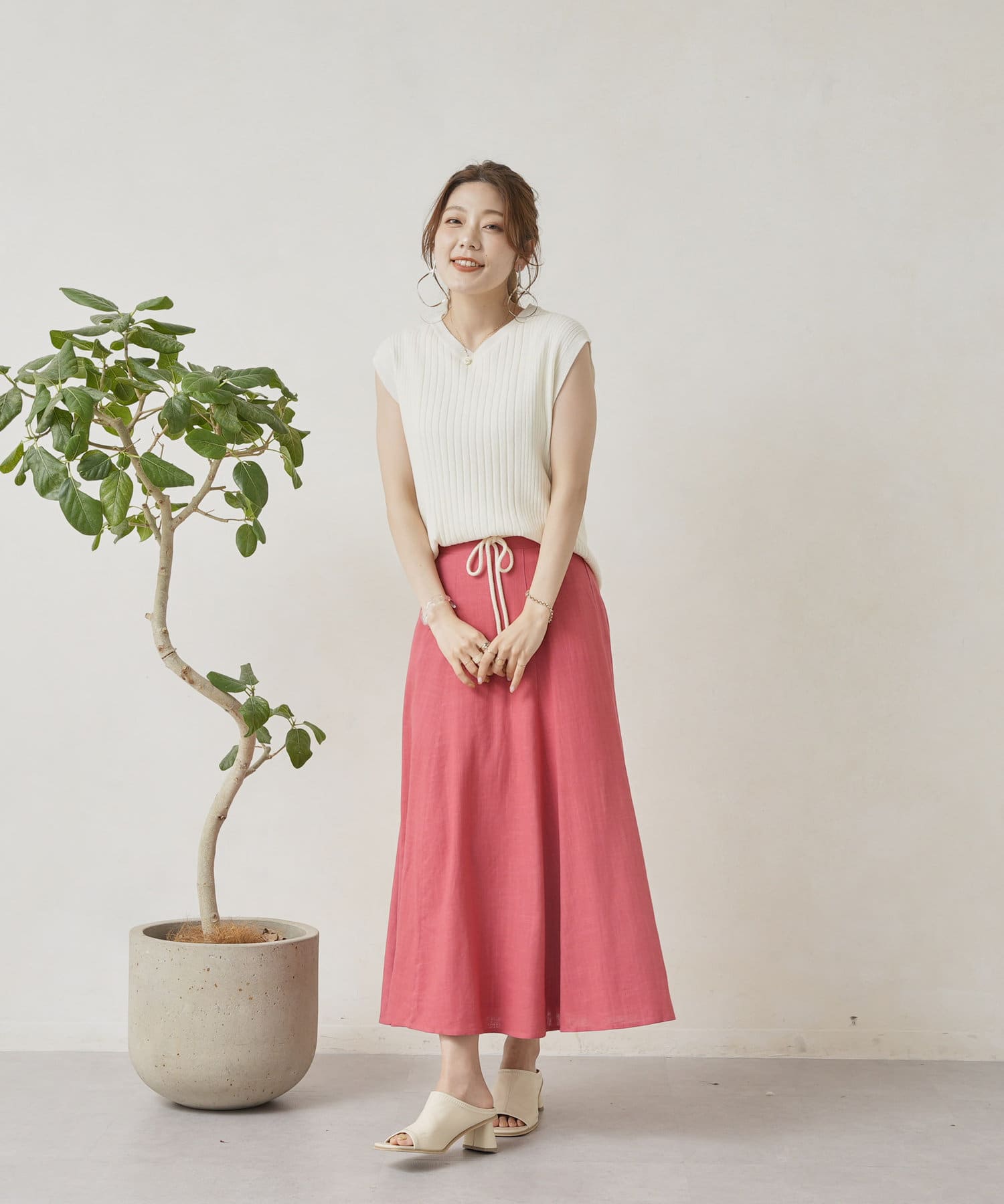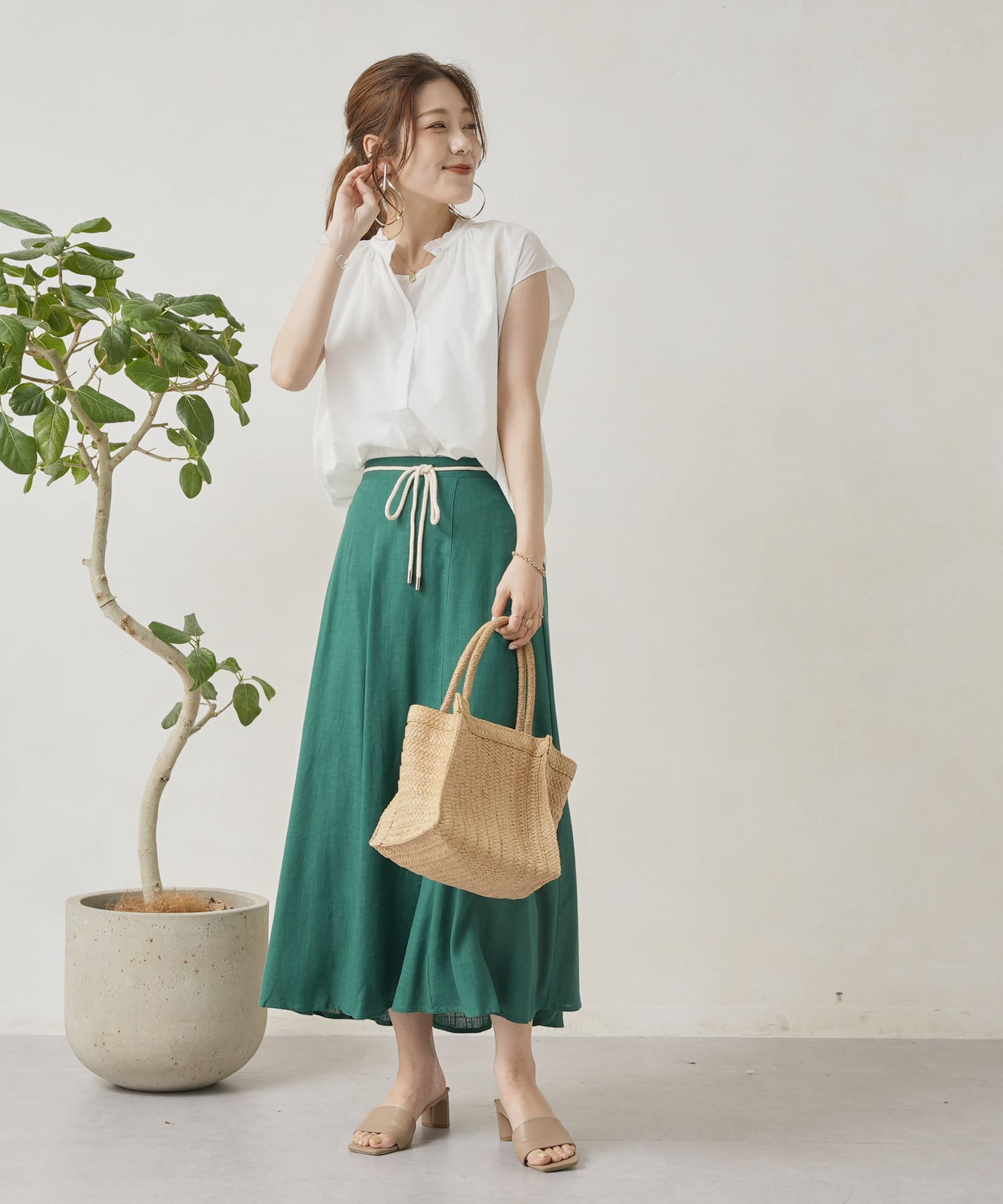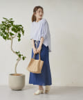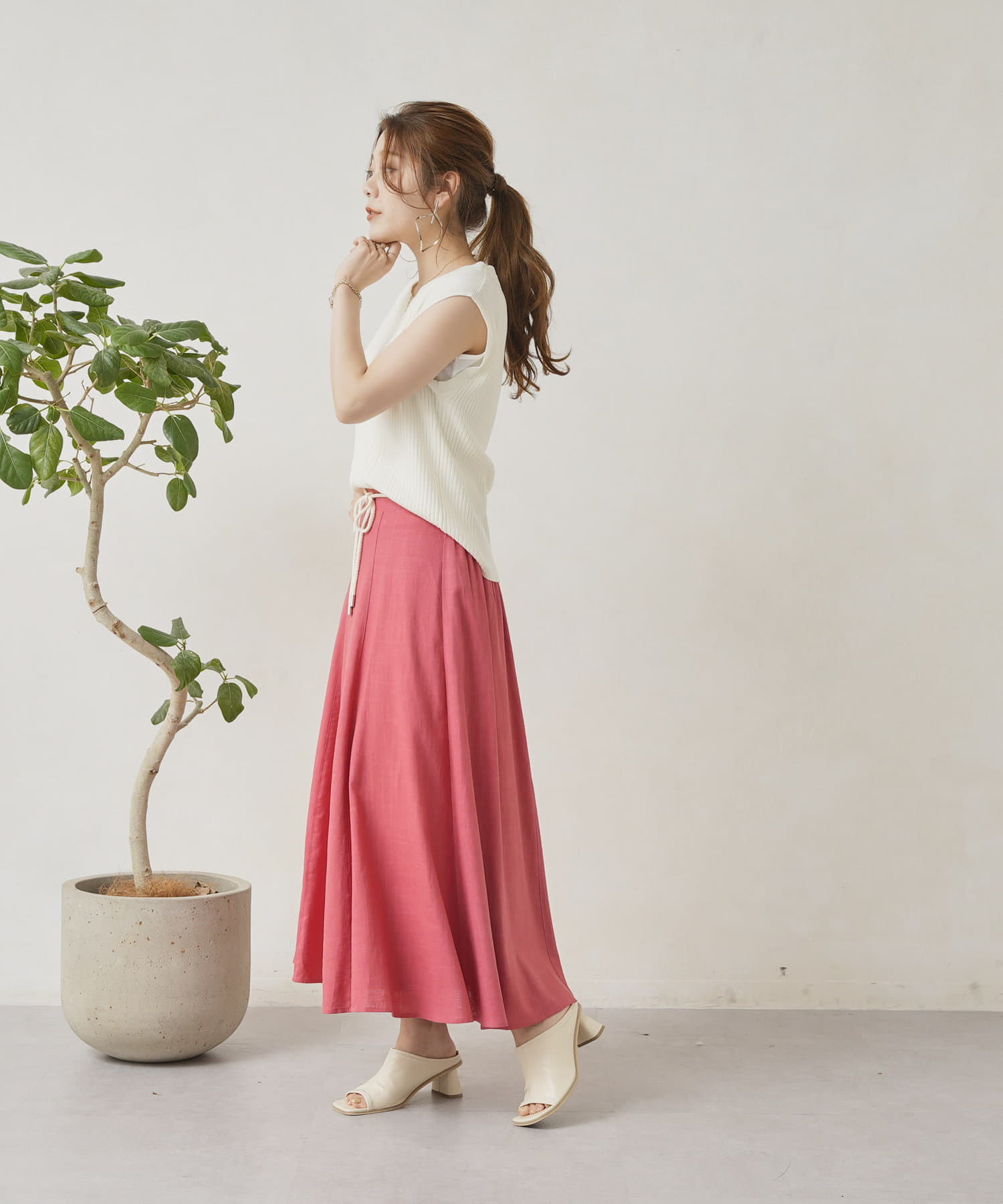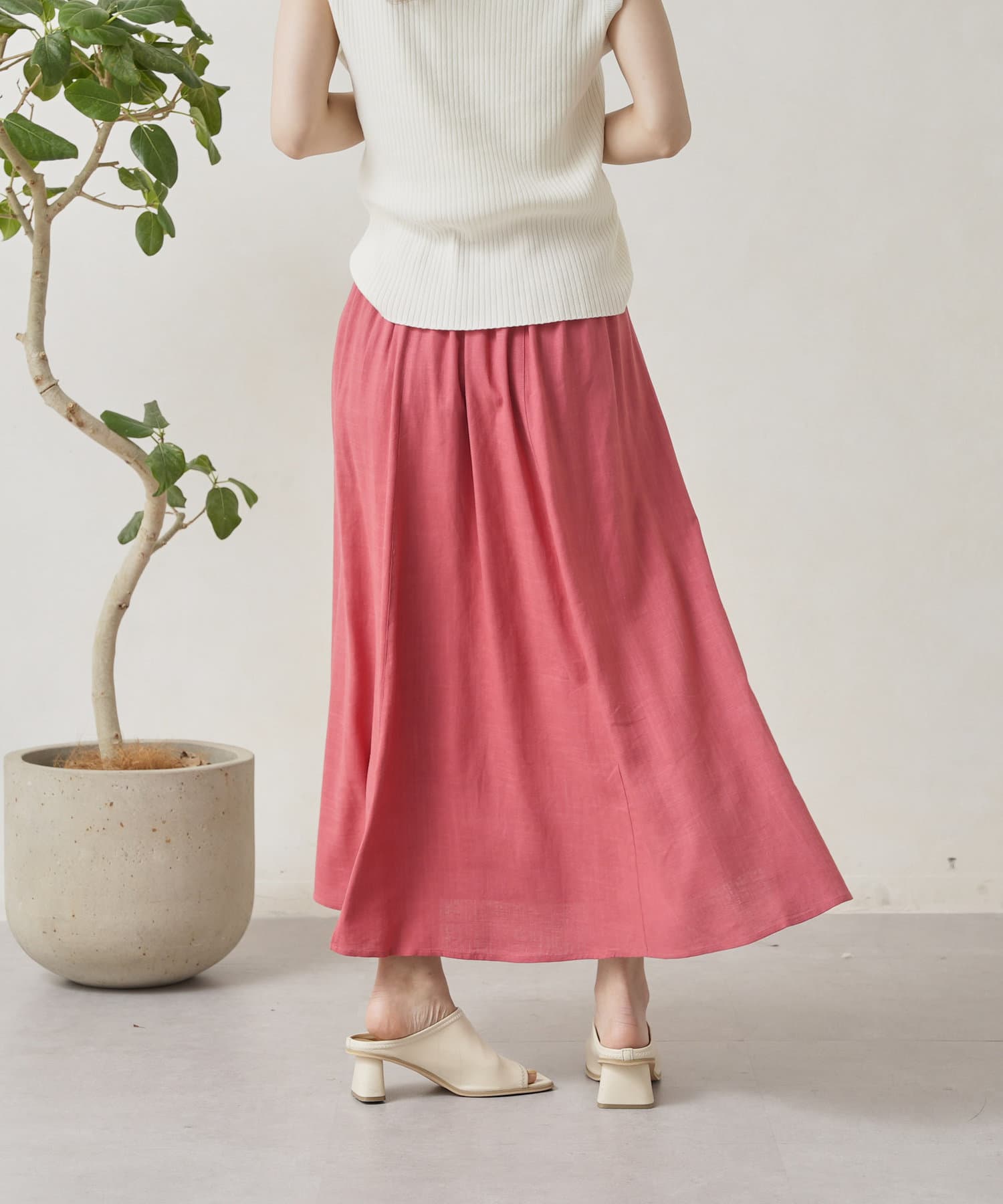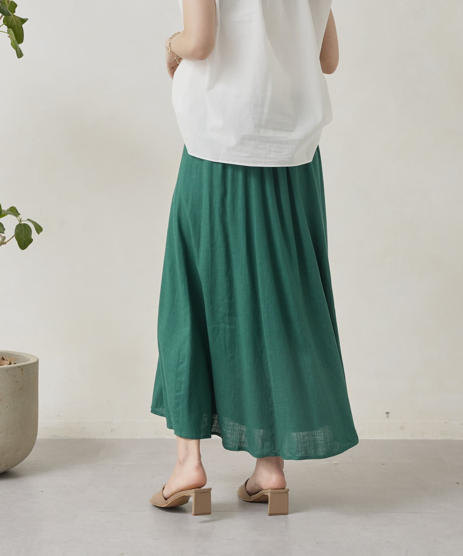 ロープベルト付カラーリネンフレアスカート