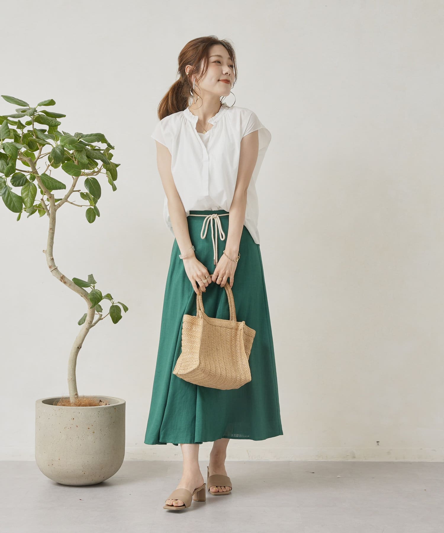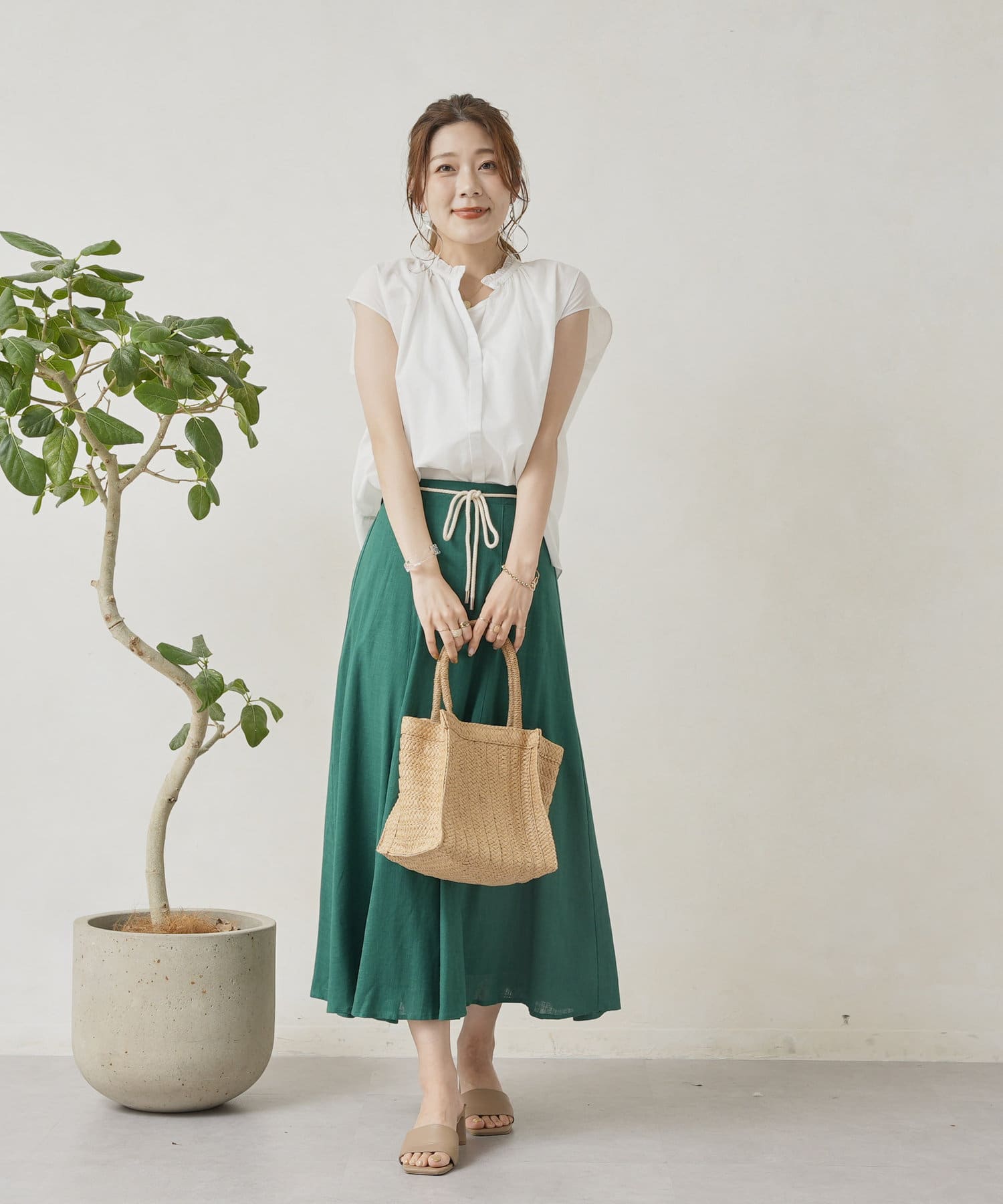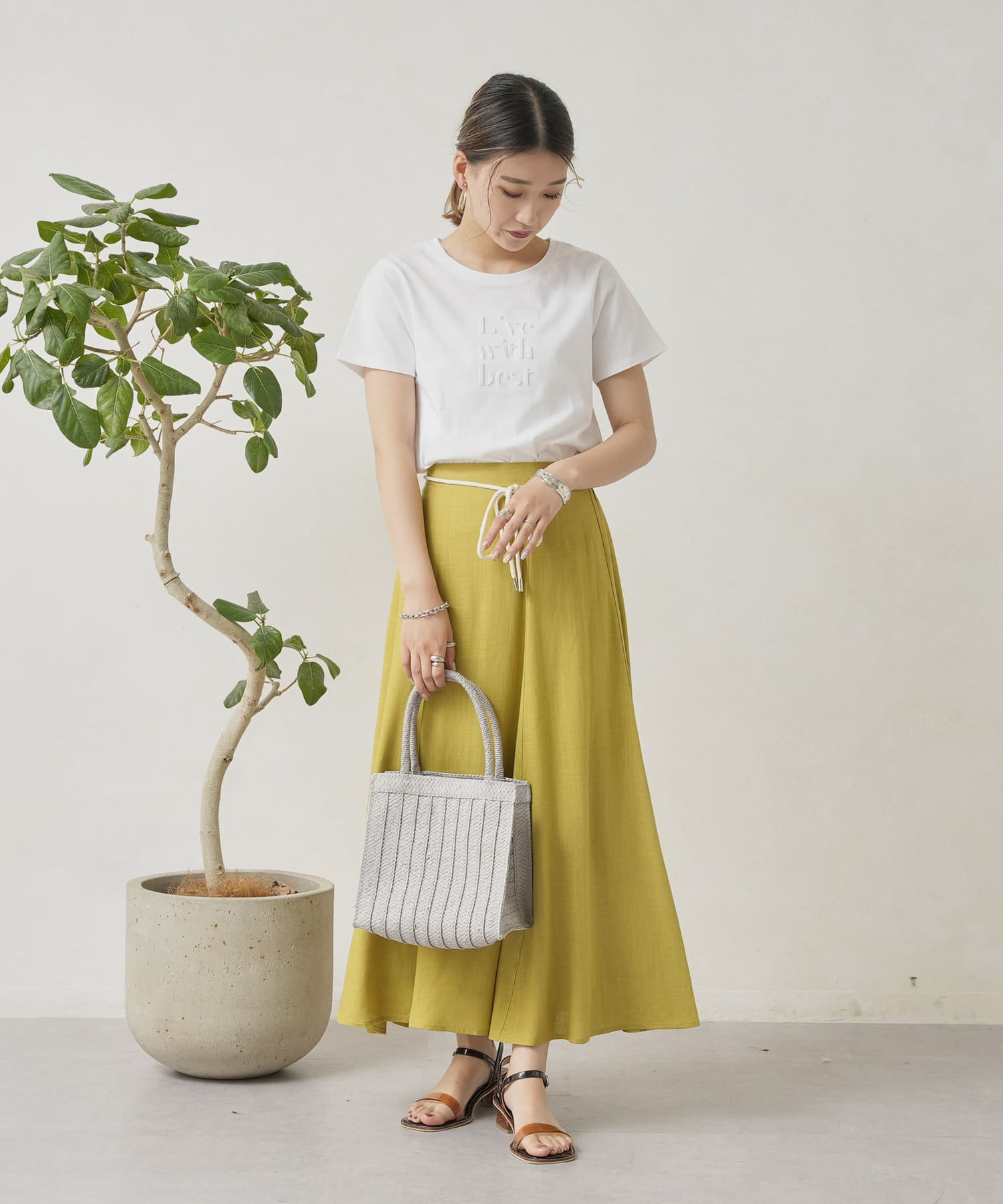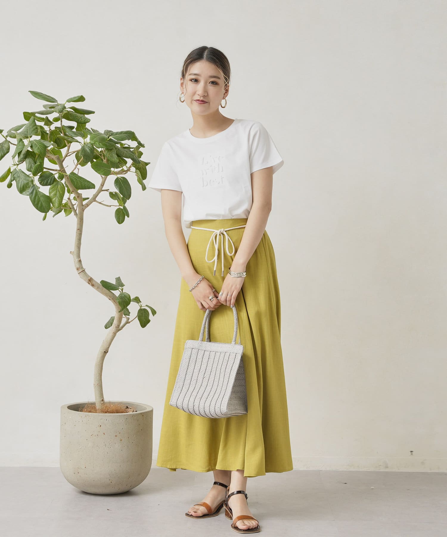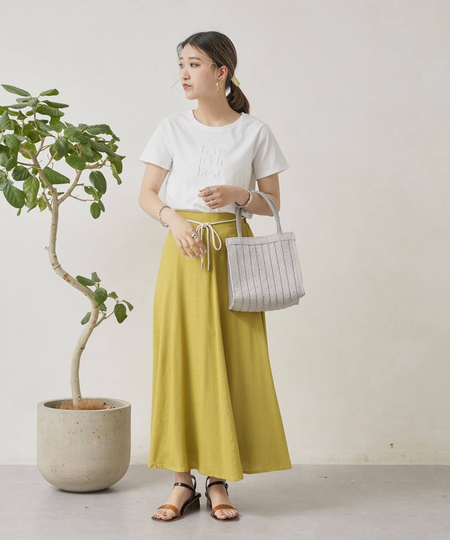 ロープベルト付カラーリネンフレアスカート