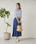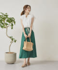 • Chez toi(シェトワ) ロープベルト付カラーリネンフレアスカート