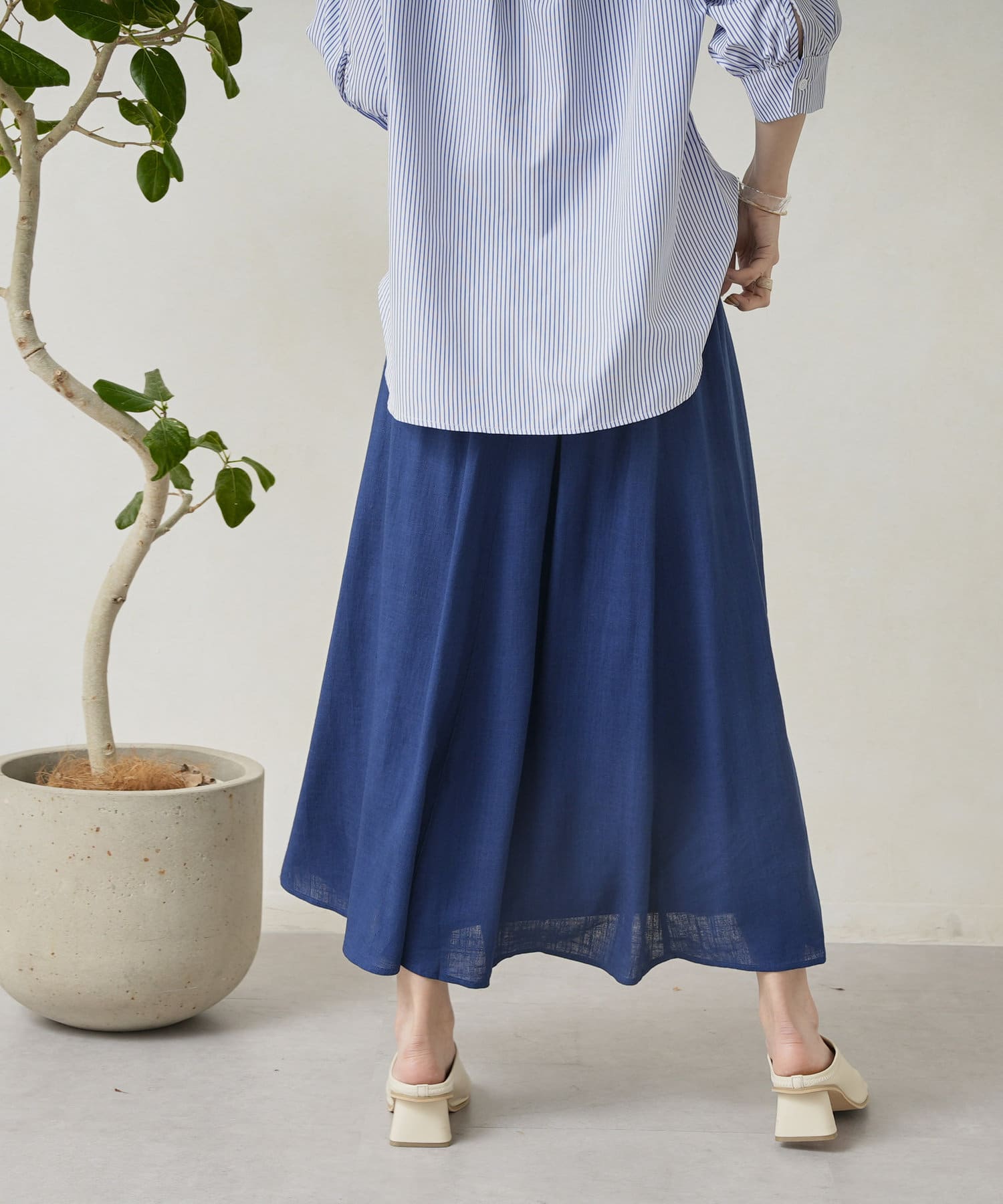 綺麗に拡がるドレープ性。麻混合で涼しく快適に着用できます。