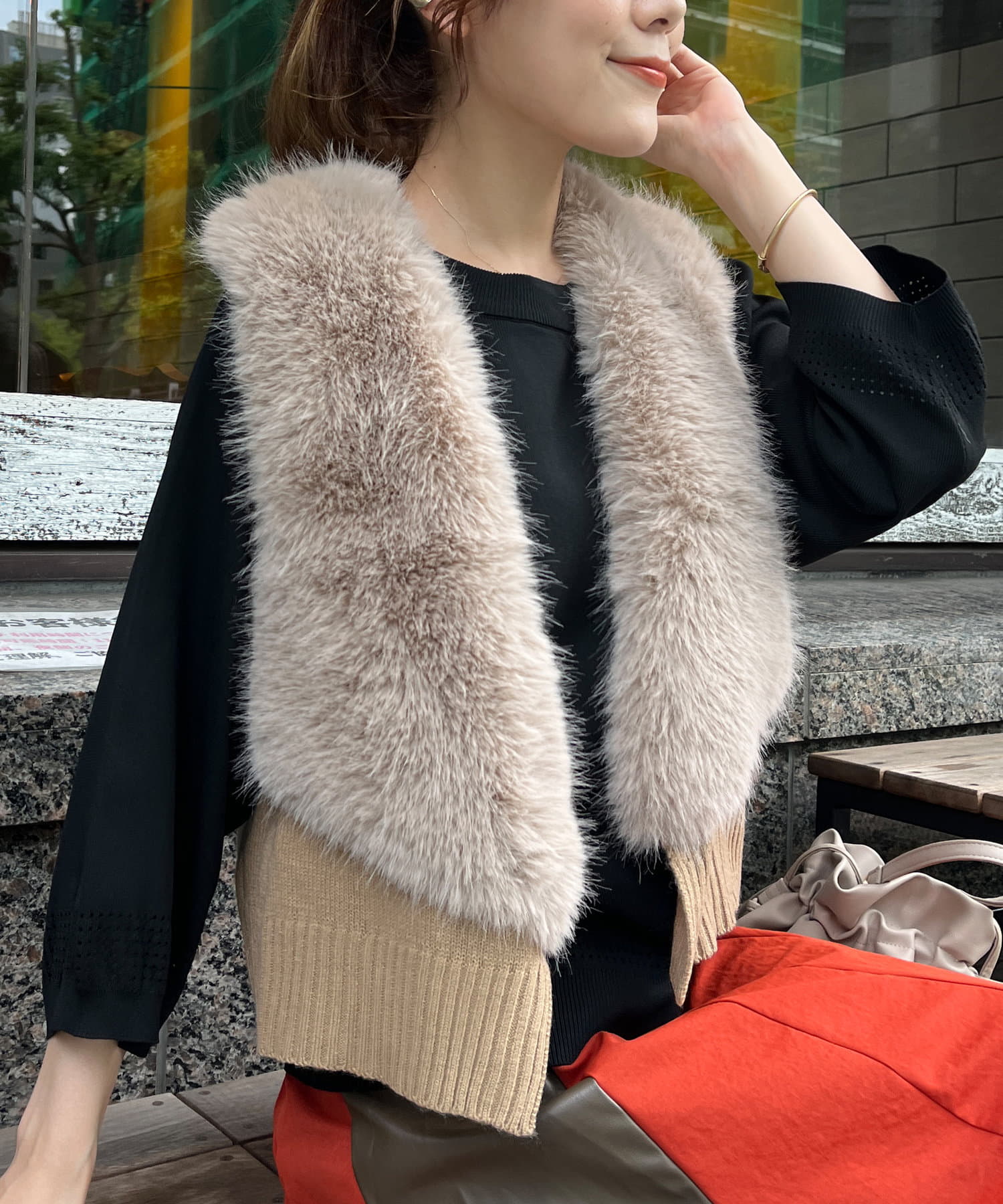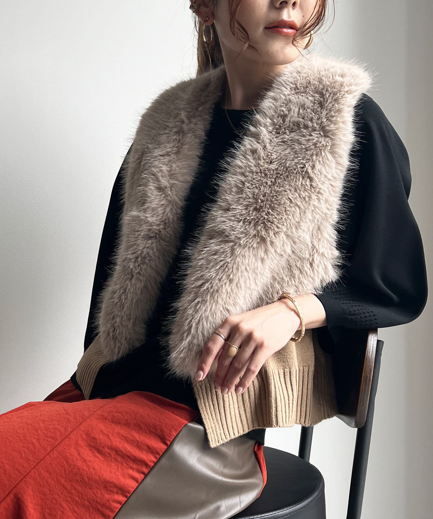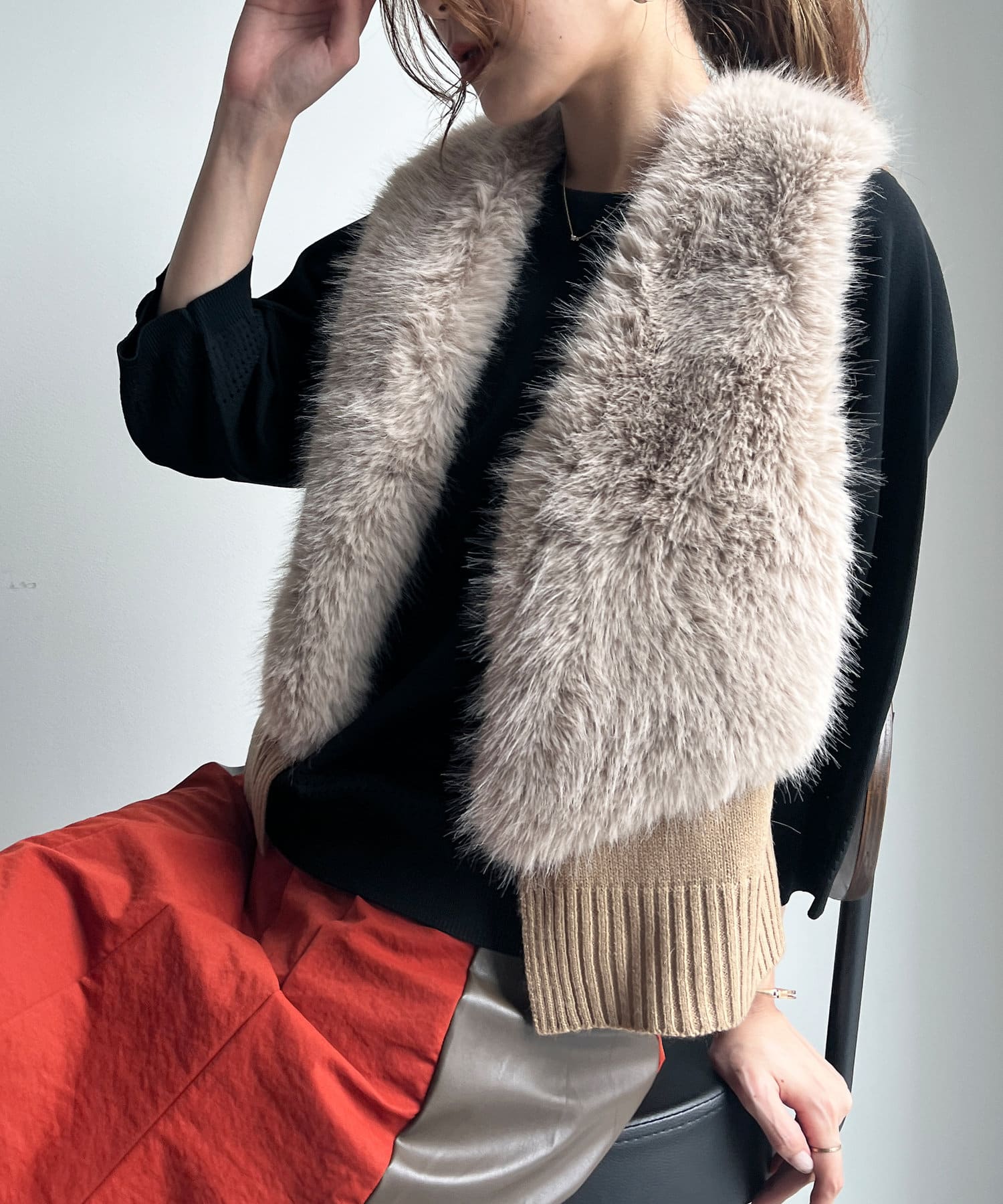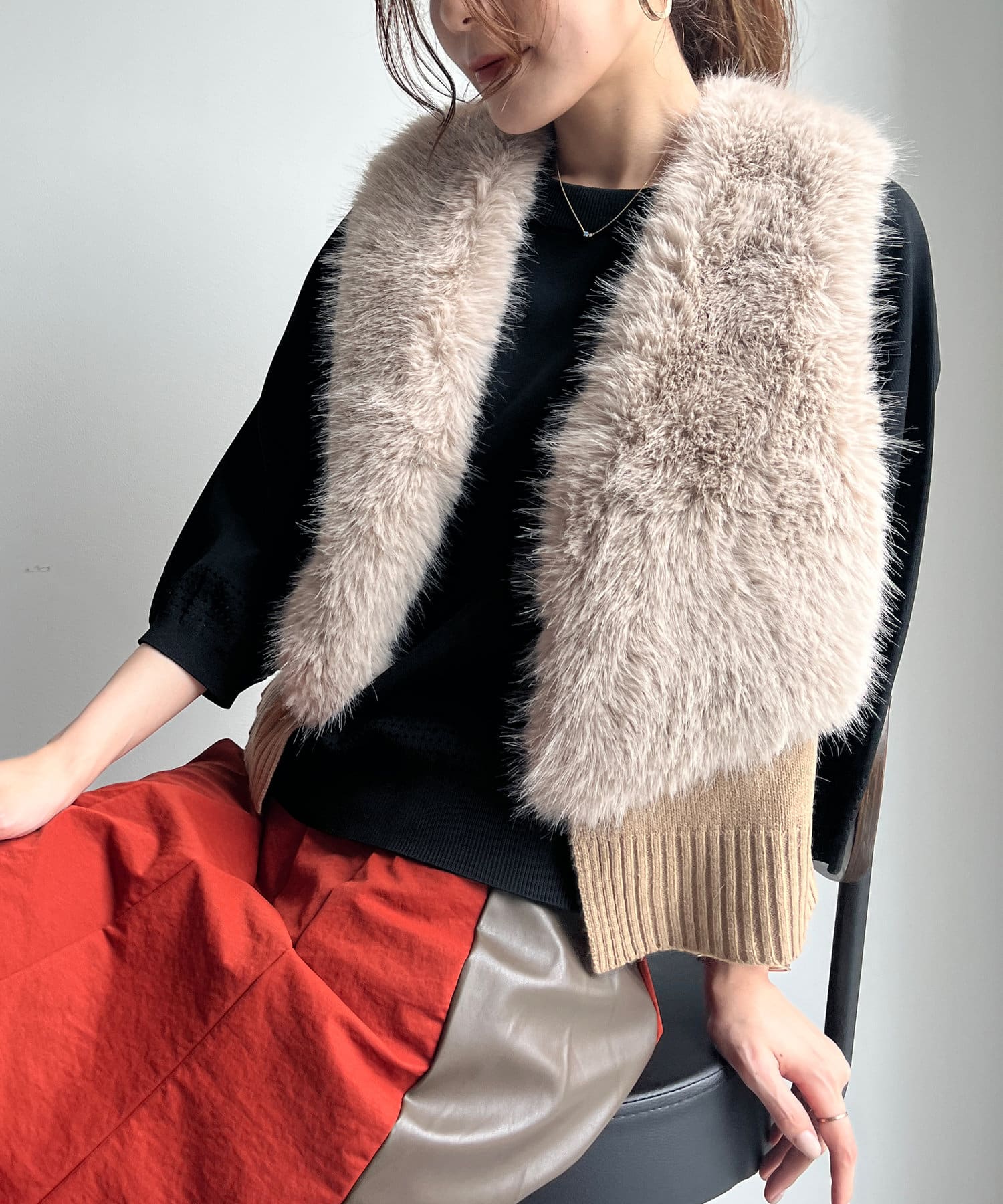 フェイクファー×ニットジレ